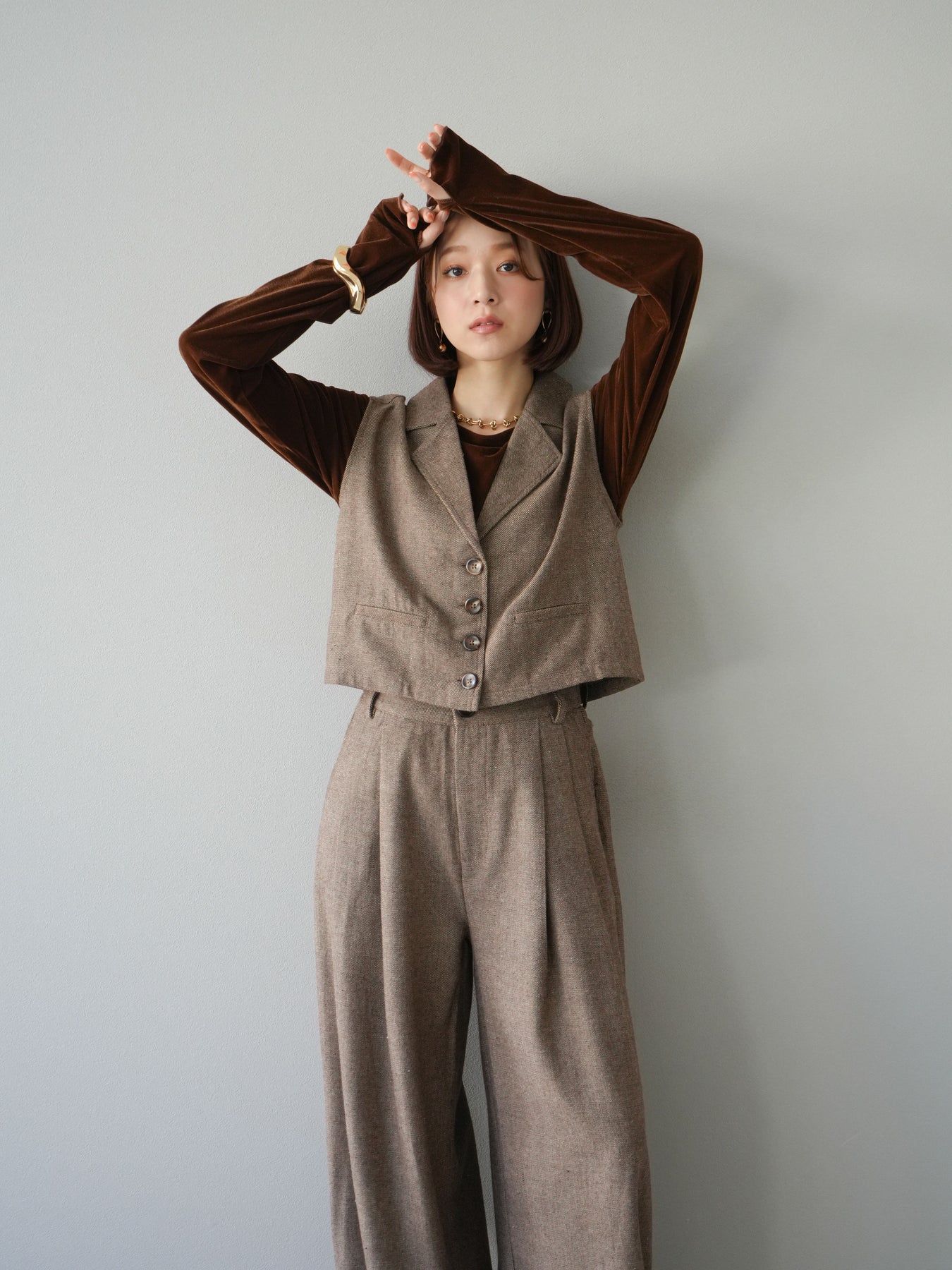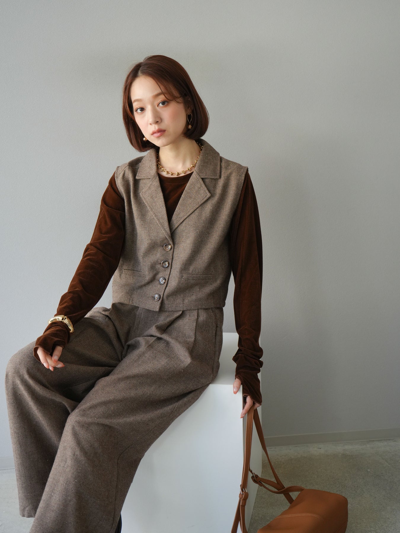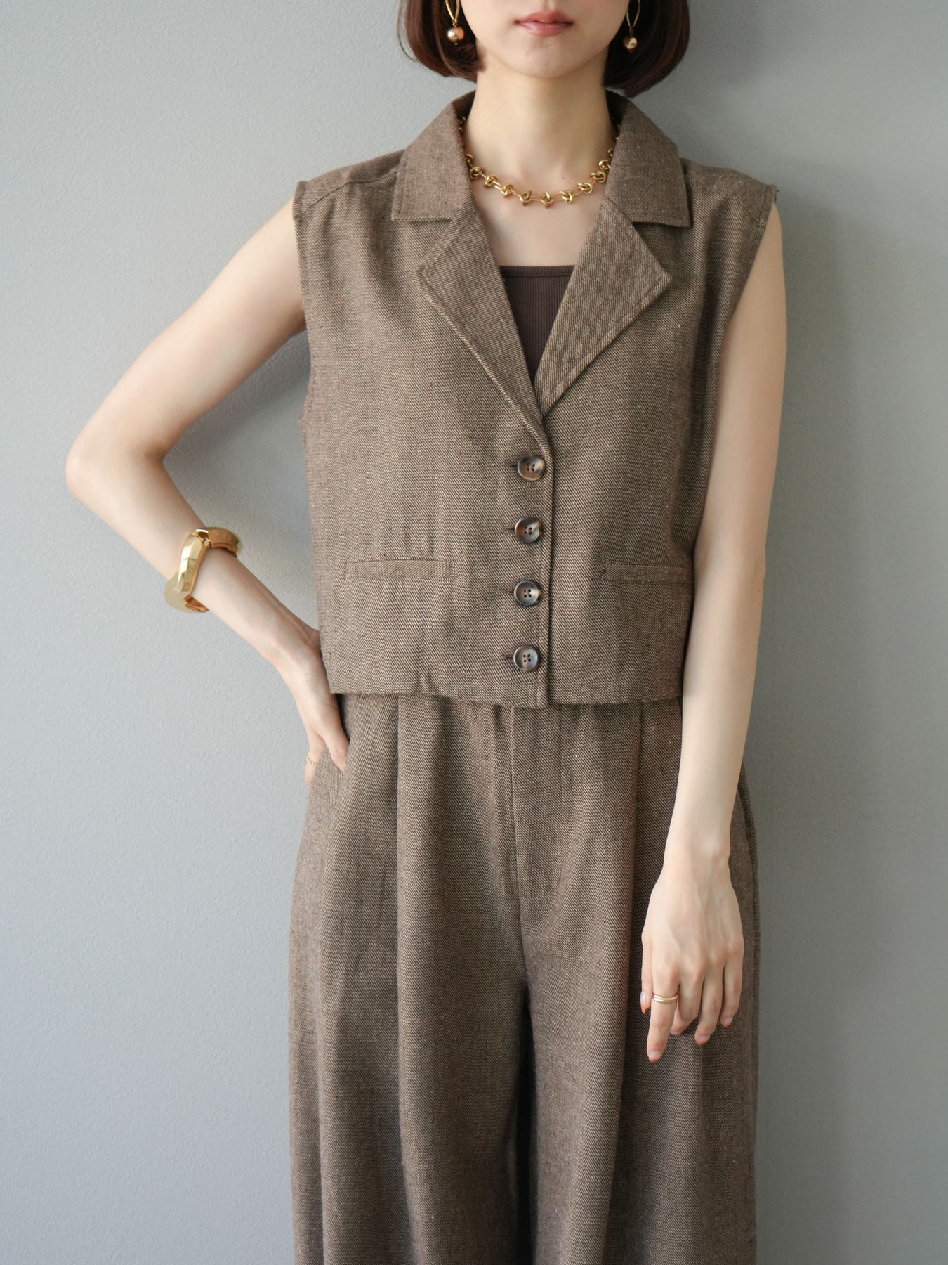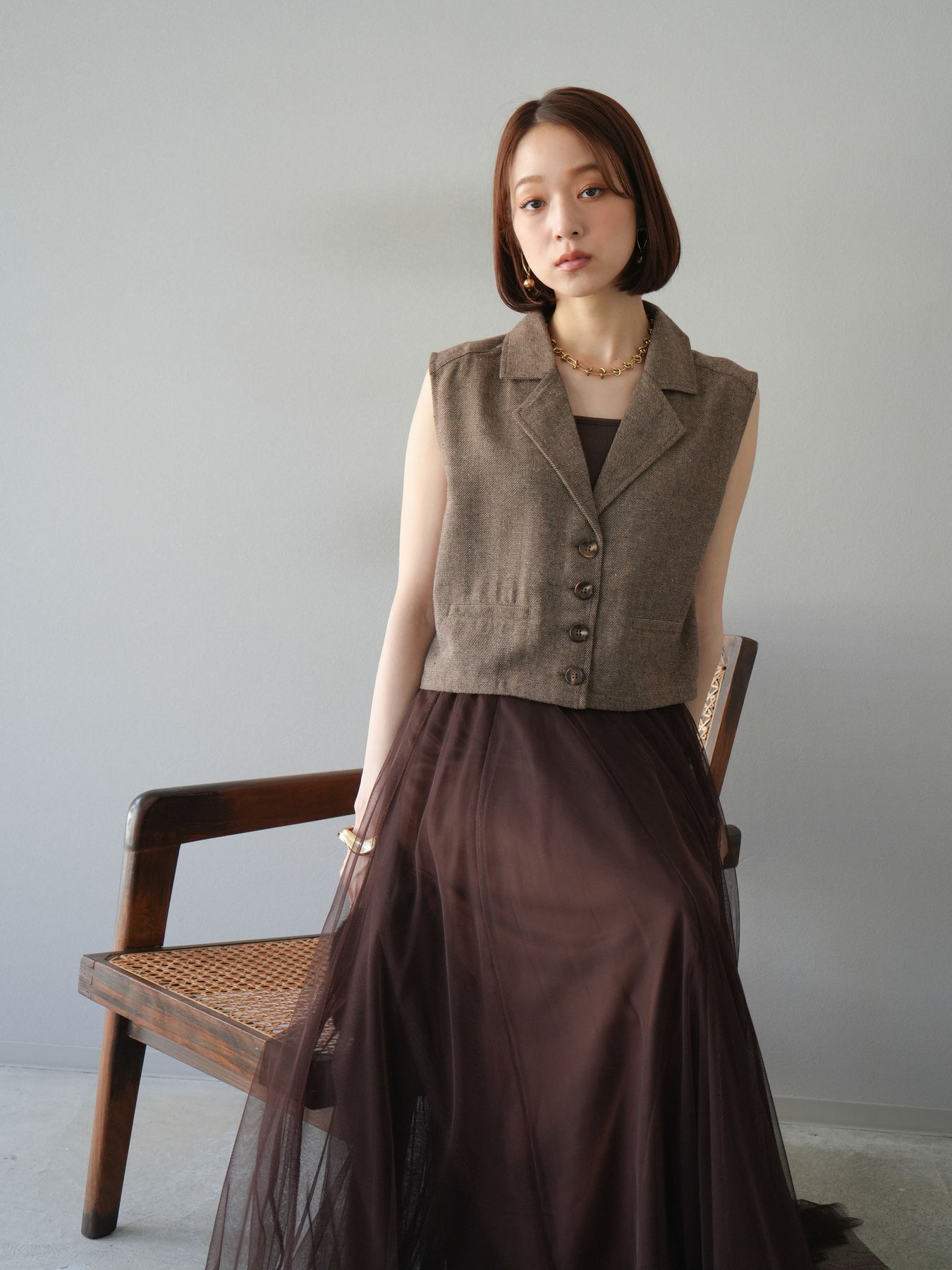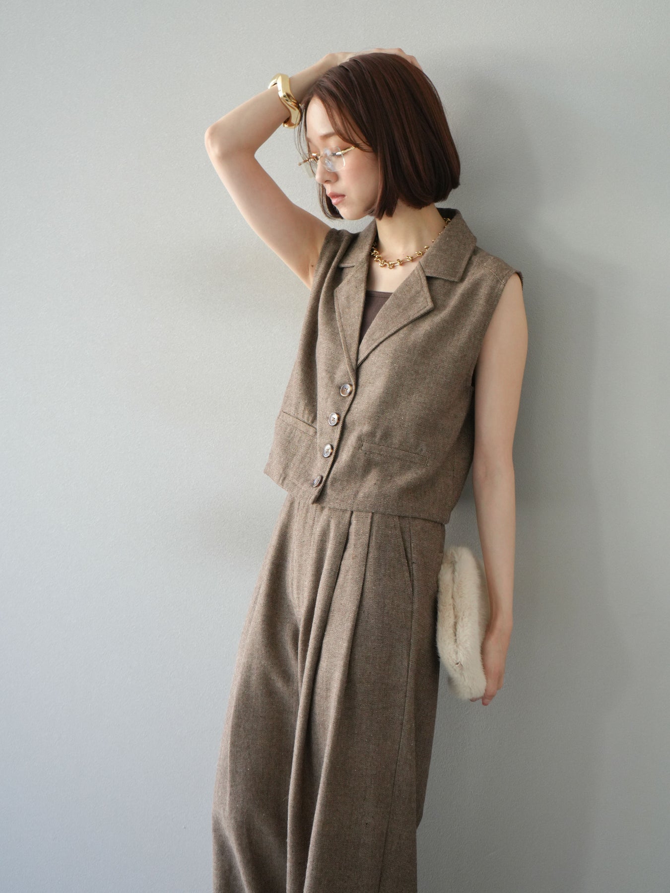 [予約]ツイードタッチテーラードジレ/ブラウン
