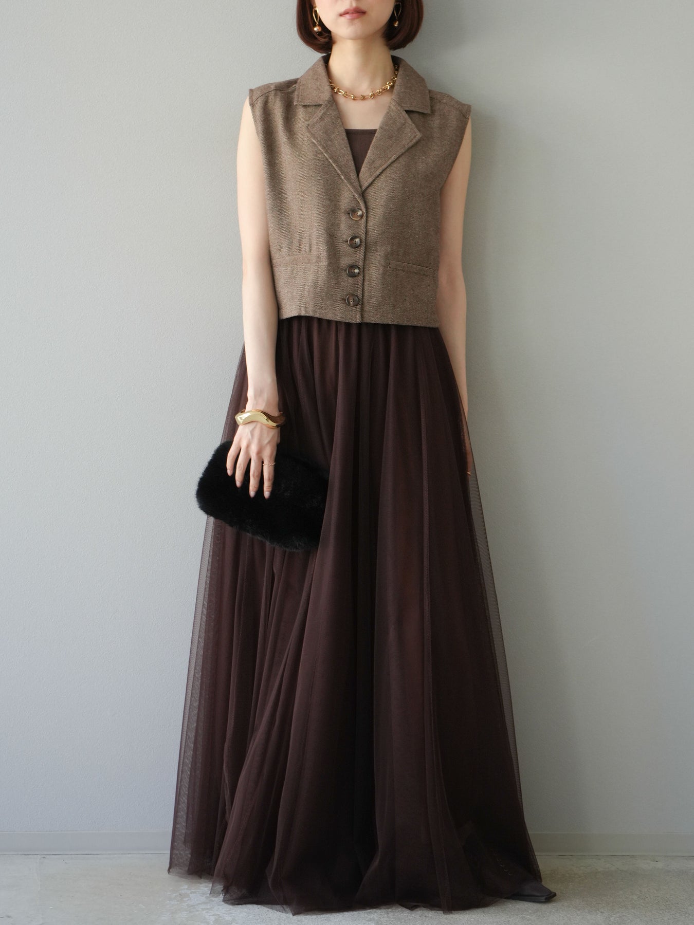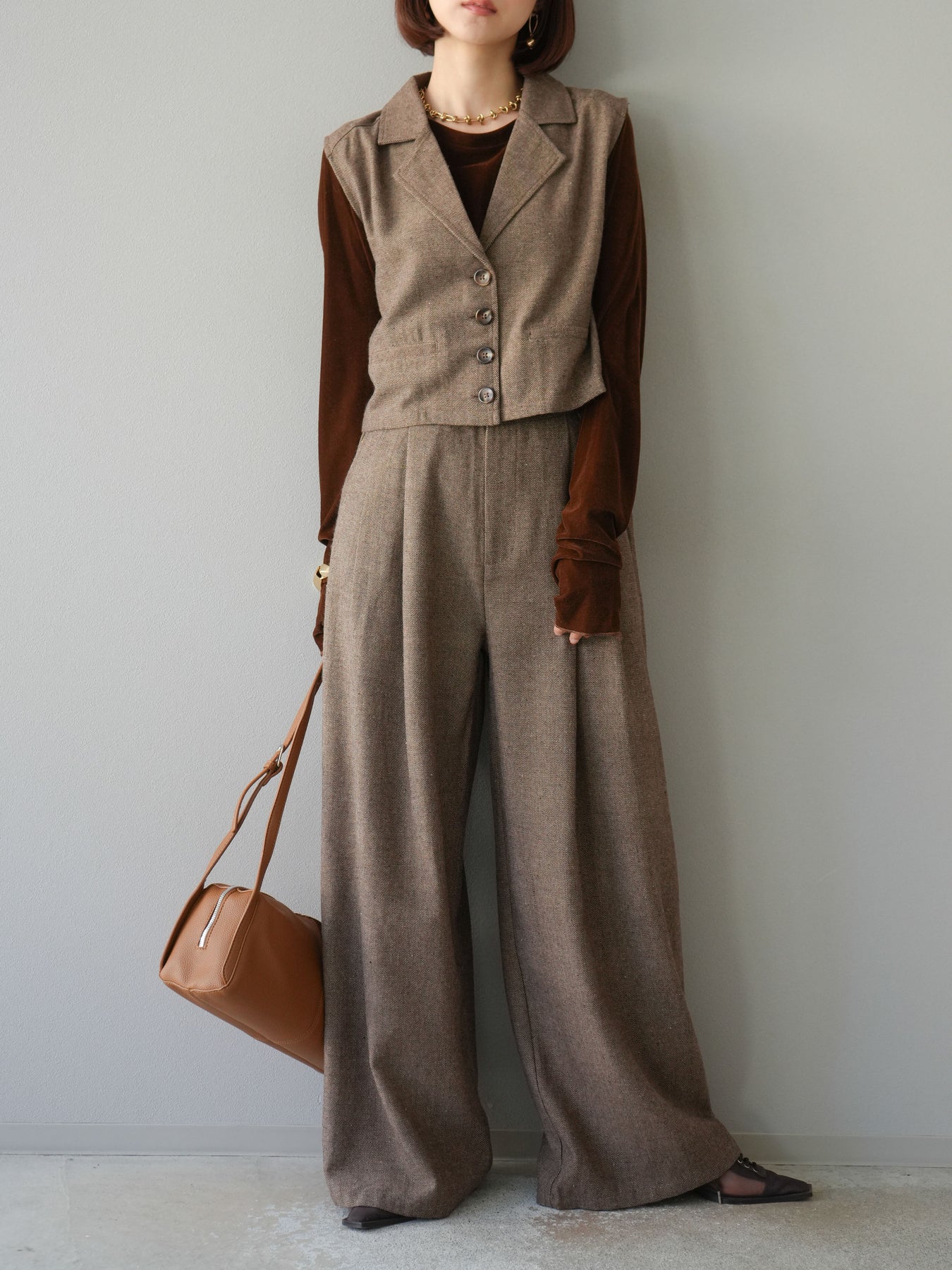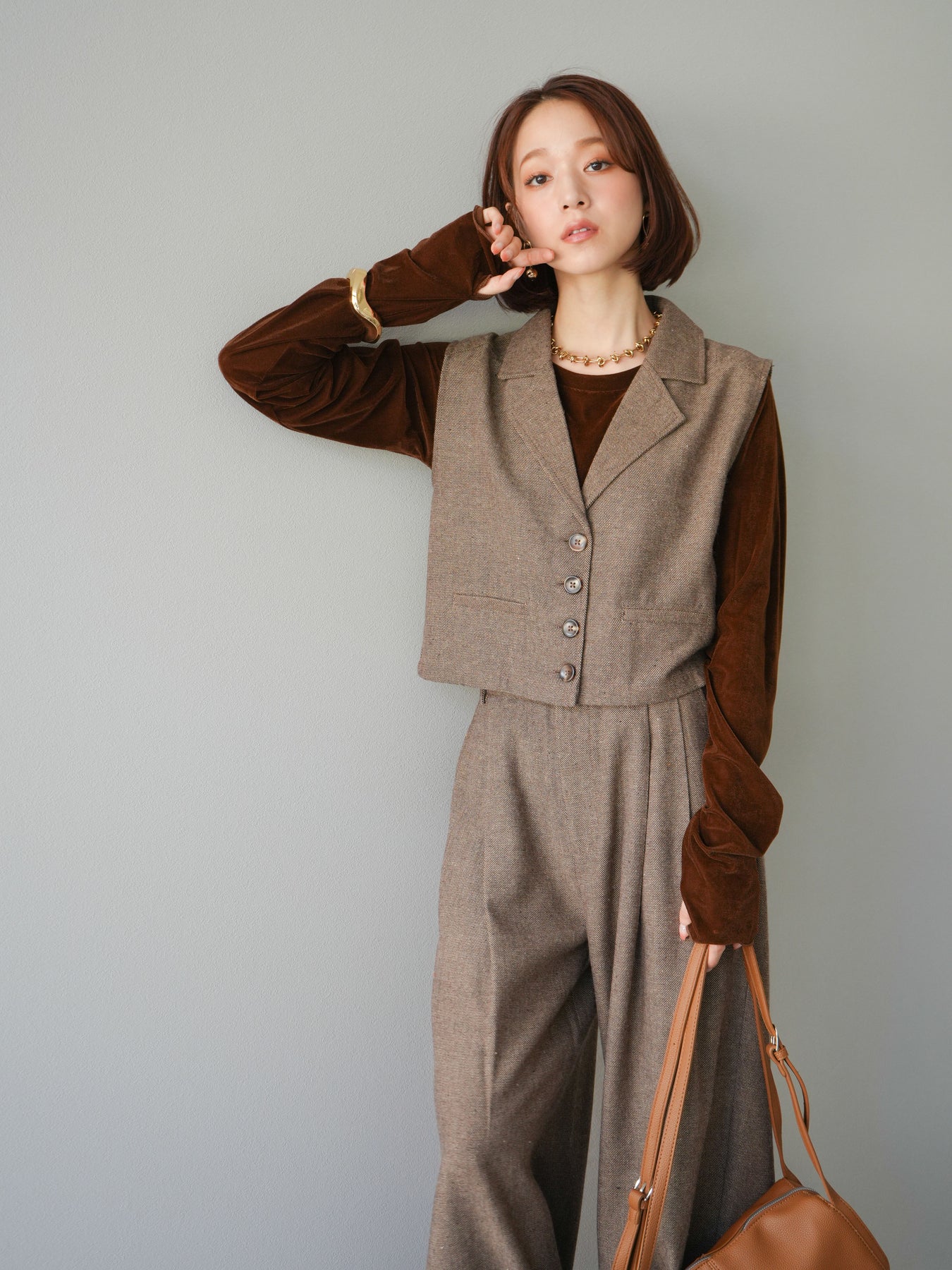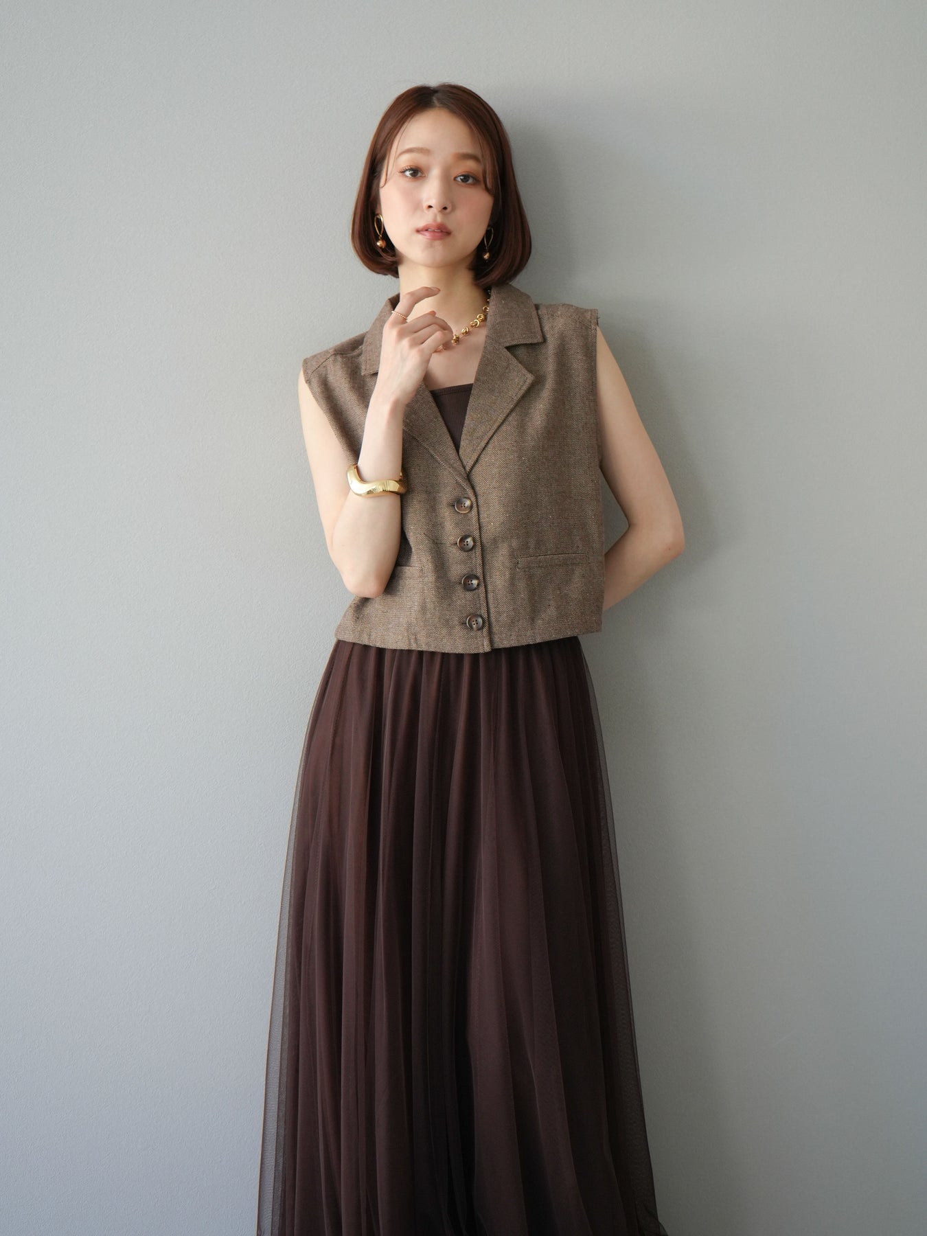 [予約]ツイードタッチテーラードジレ/ブラウン