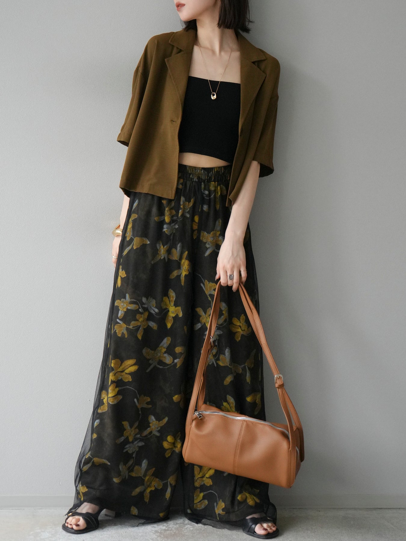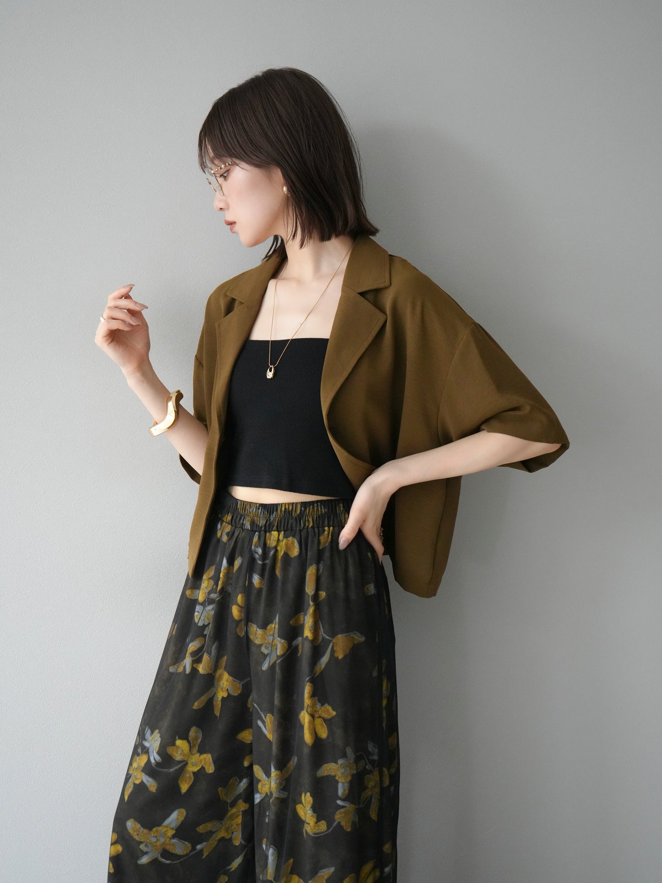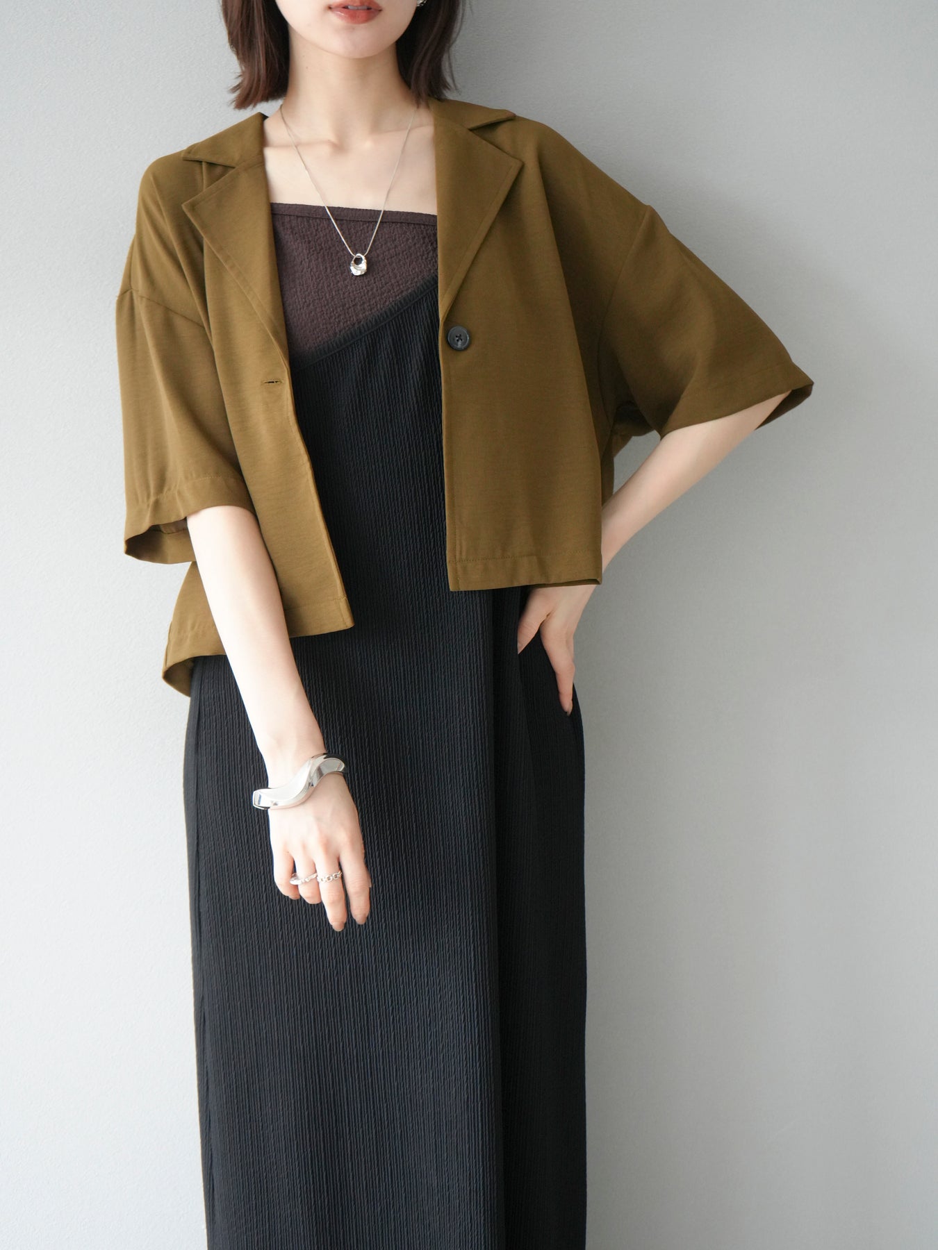 繊細なレースが涼しげで女性らしい印象を与える、ハーフスリーブのショートジャケット。 ナチュラルな透け感と立体的なレース柄が、羽織るだけでスタイリングを格上げ。ショート丈×ワイドスリーブのバランスが絶妙で、ハイウエストボトムやワンピースとも好相性です。 さらりと軽やかな着心地で、夏場の冷房対策や紫外線対策にもぴったり。きれいめにもカジュアルにも使える万能アイテムです。 1枚あるだけで着こなしの幅が広がる、季節の変わり目に大活躍のライトジャケット。