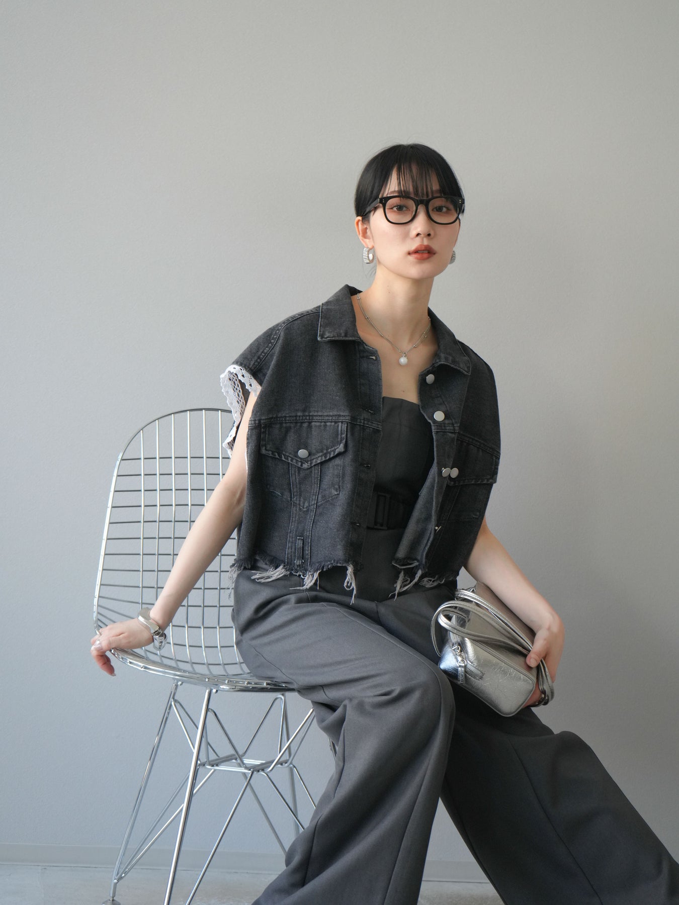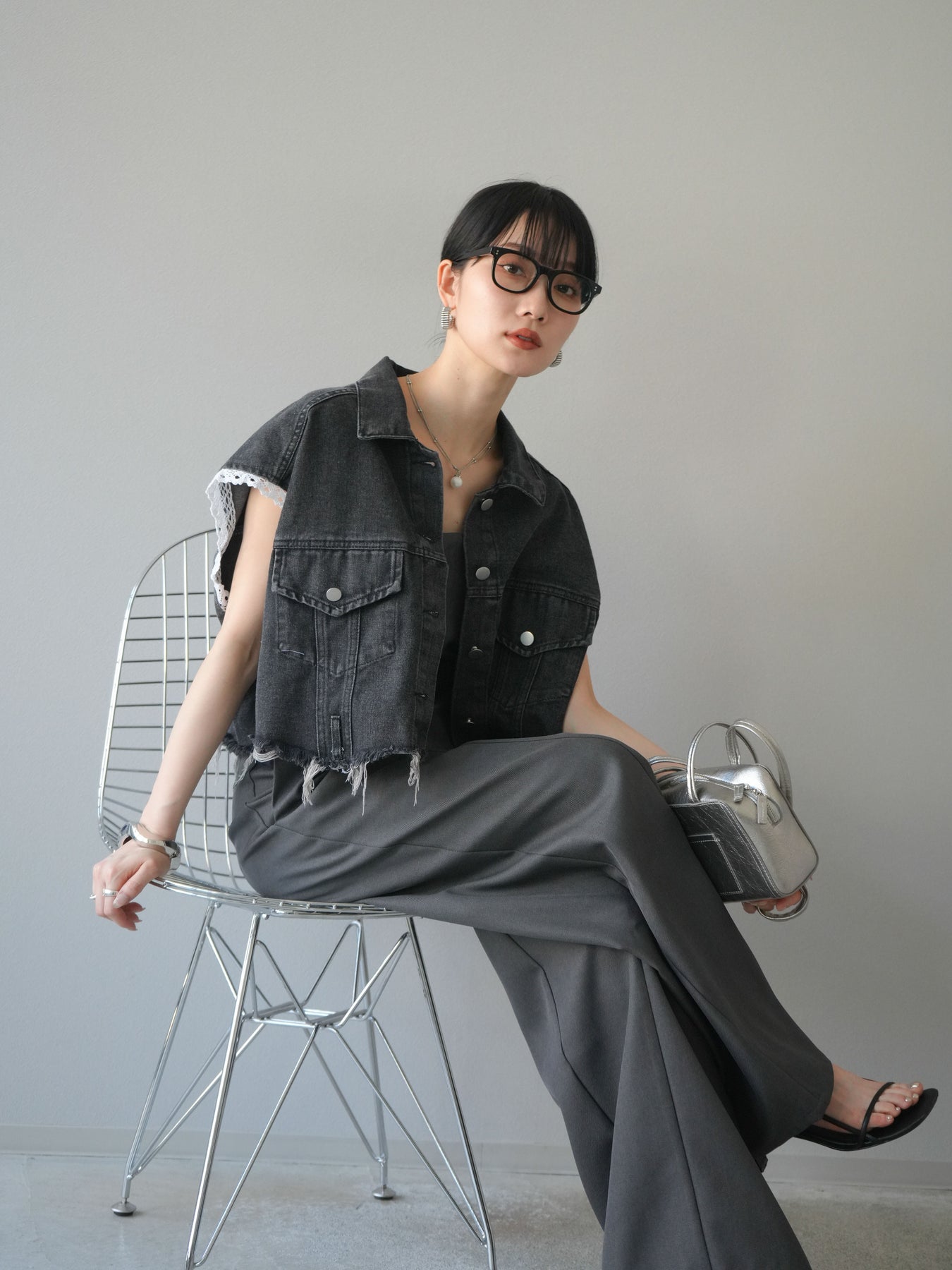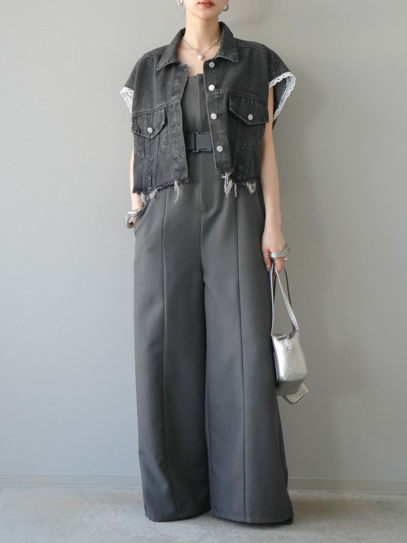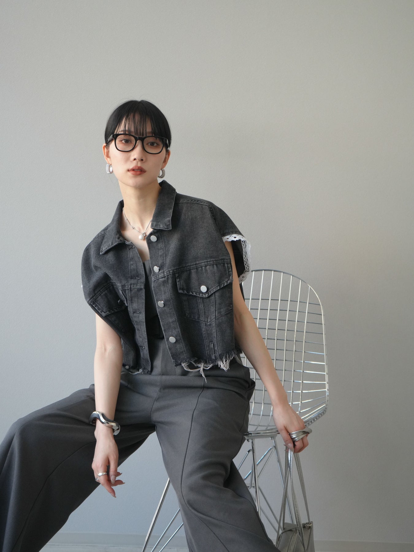 カジュアルなデニムにフェミニンなレースを組み合わせた、トレンド感たっぷりのショートジャケット。袖口からのぞくレースが抜け感を演出し、ダメージ加工がこなれた雰囲気をプラスします。ショート丈でバランスが取りやすく、ワイドパンツやワンピースとの相性も抜群。羽織るだけでこなれたスタイルが完成します。 ※ボトムス、キャミソール(インナー)以外の商品は一律でインナーは付属していません