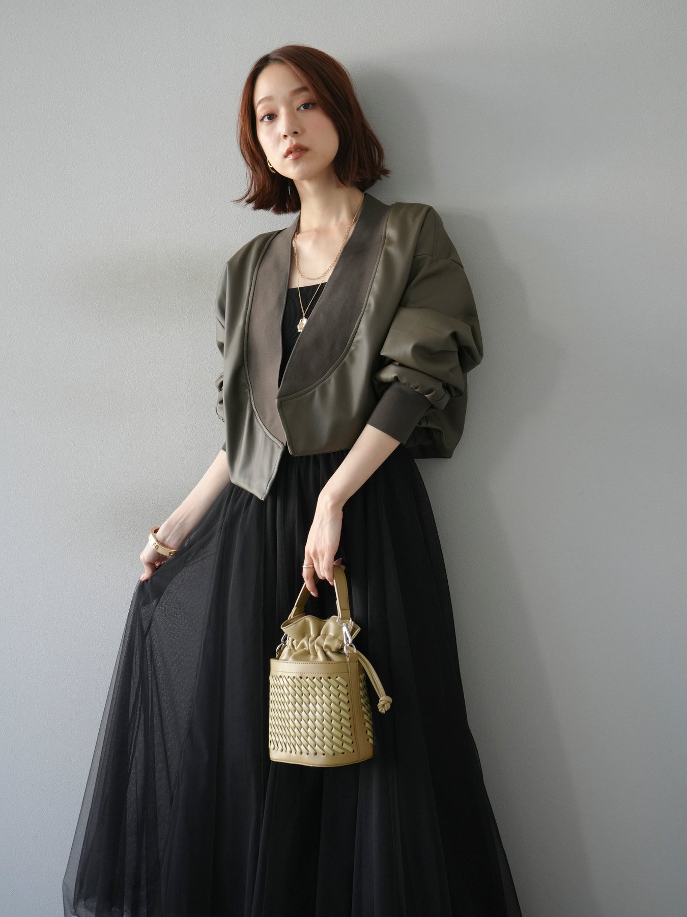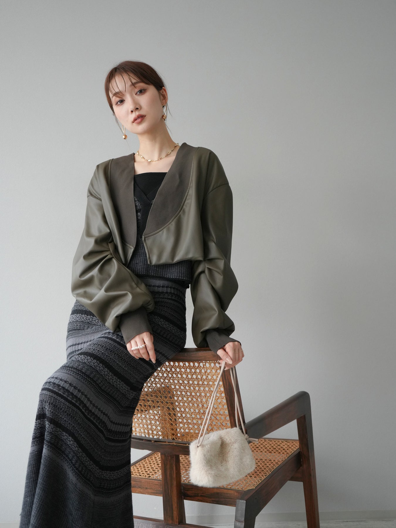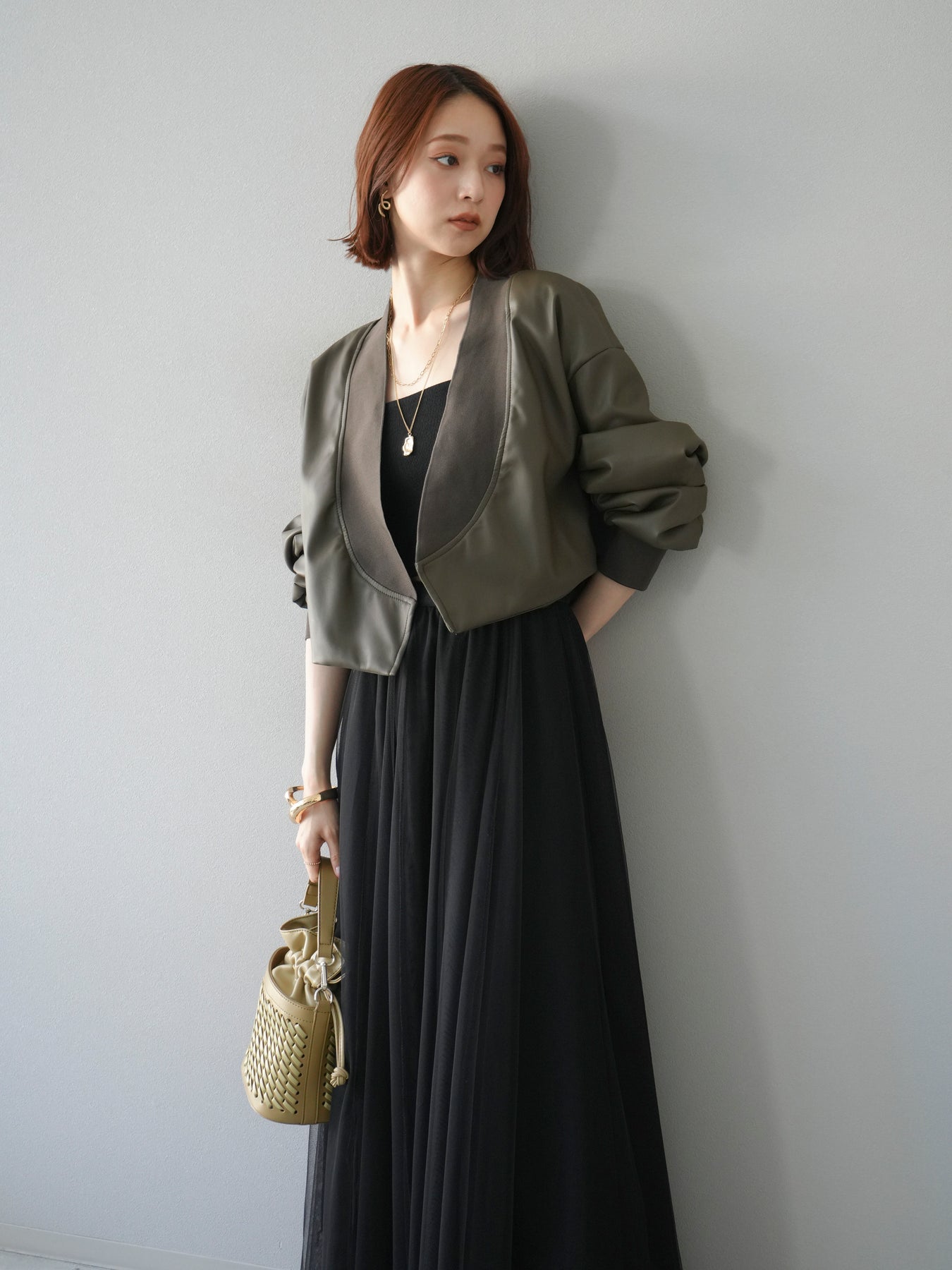 [予約]レザーバルーンボレロ/カーキ