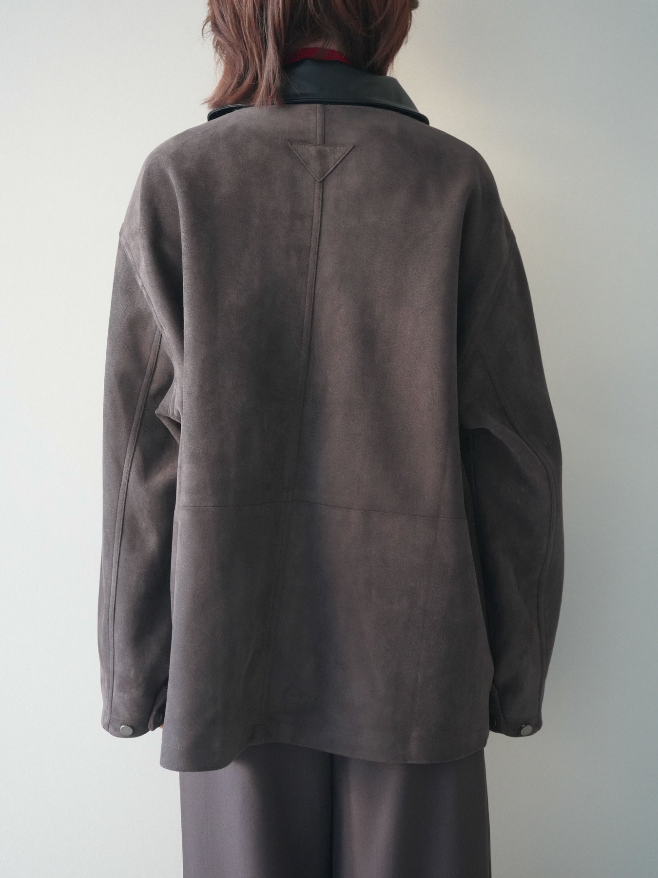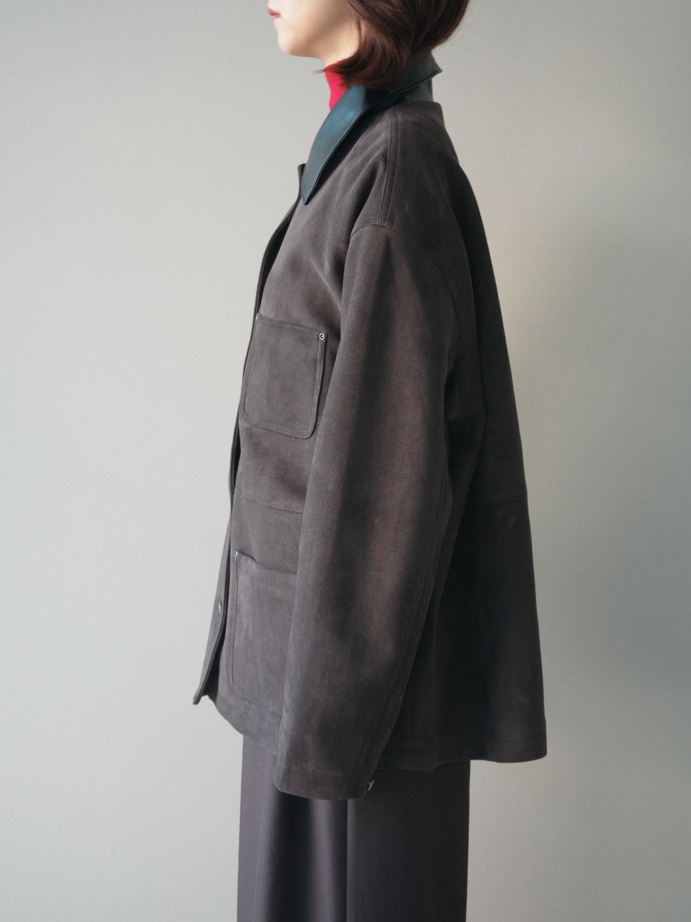 [予約]襟レザーステンカラースエードジャケット/brown