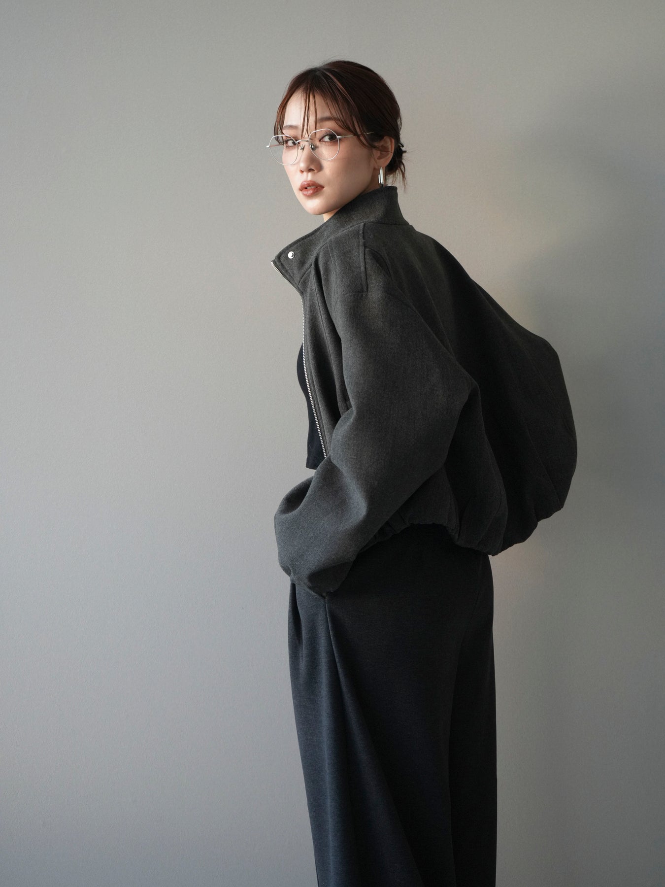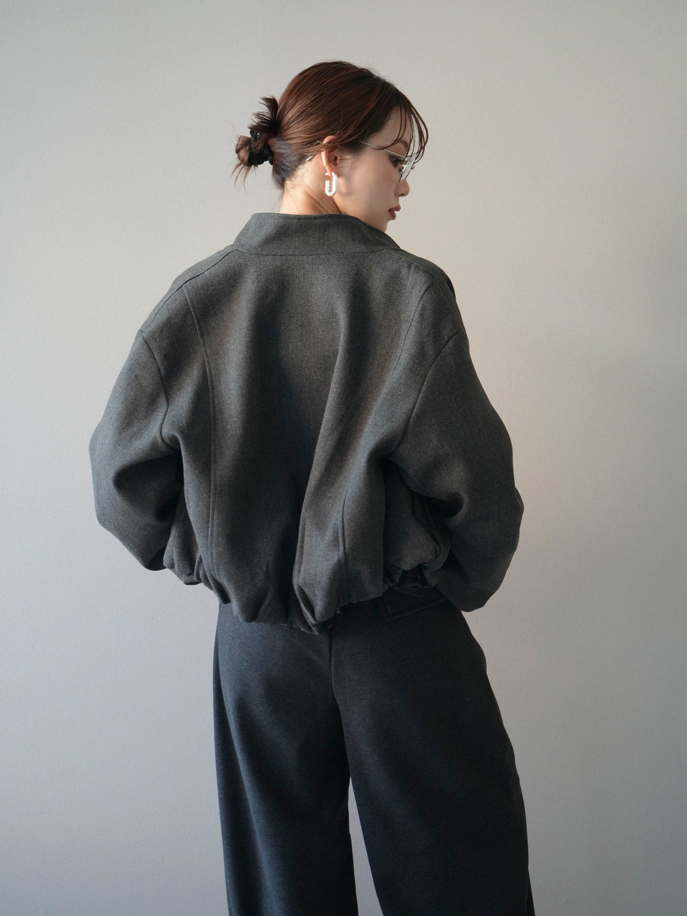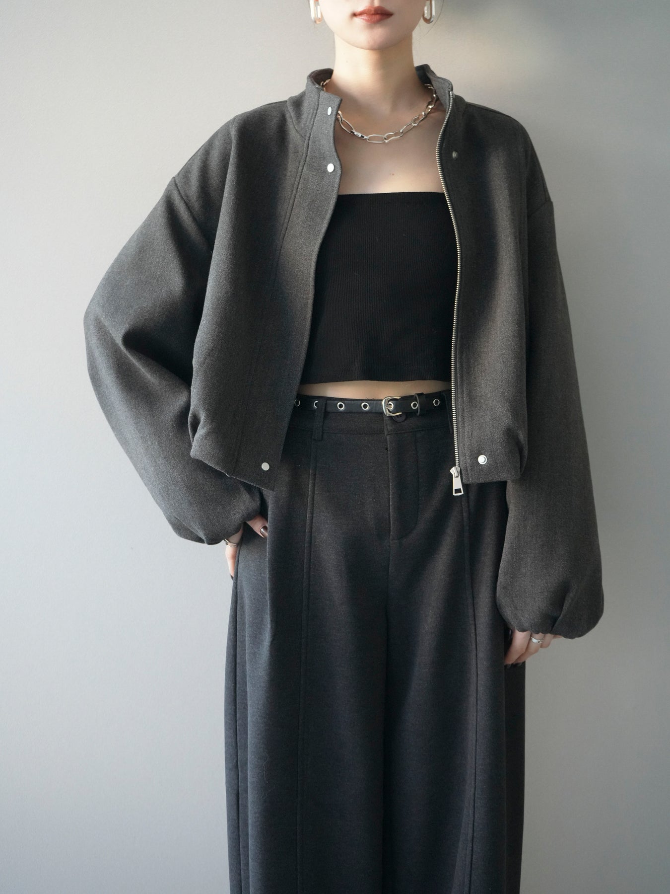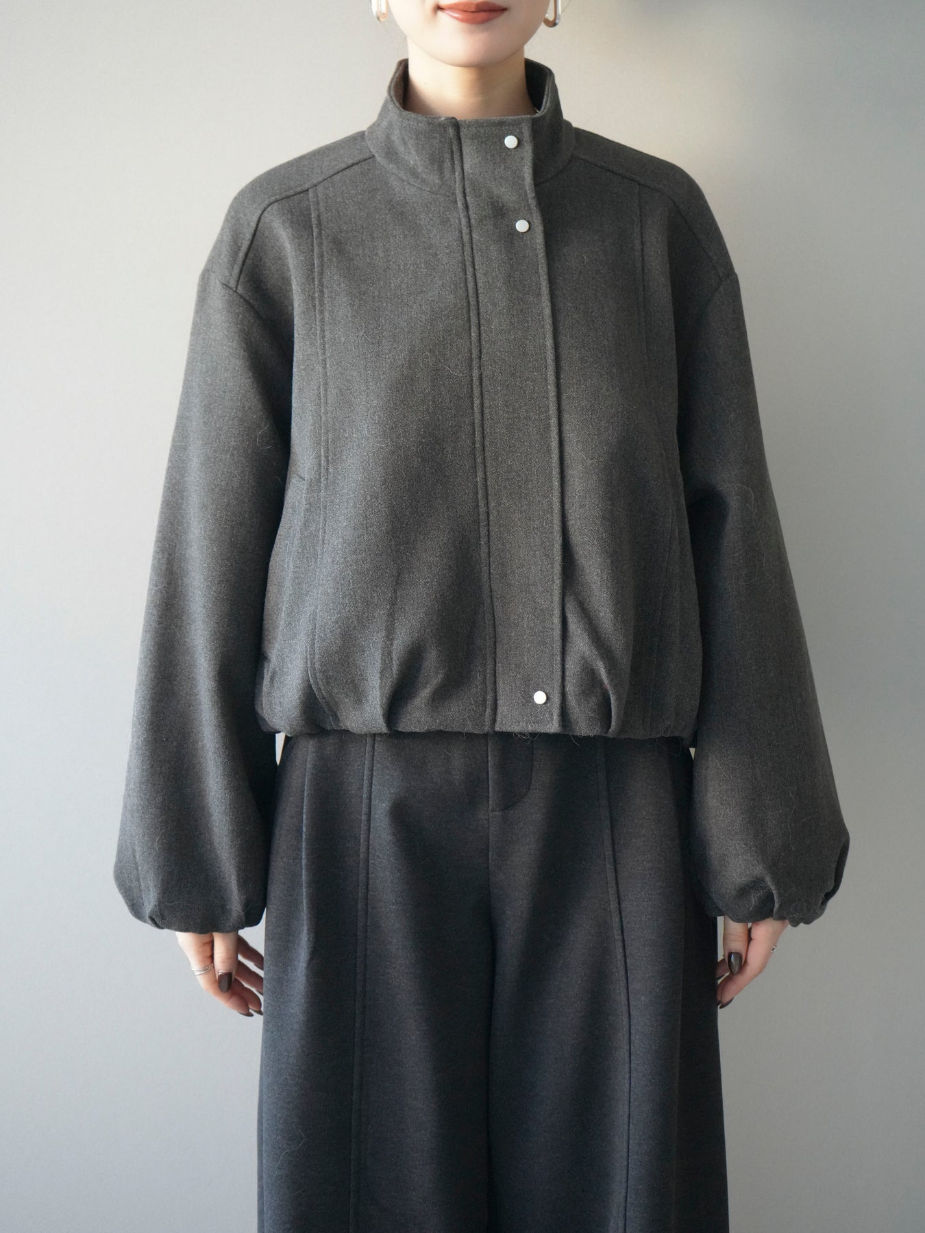 [予約]タックデザインジップブルゾン/charcoal