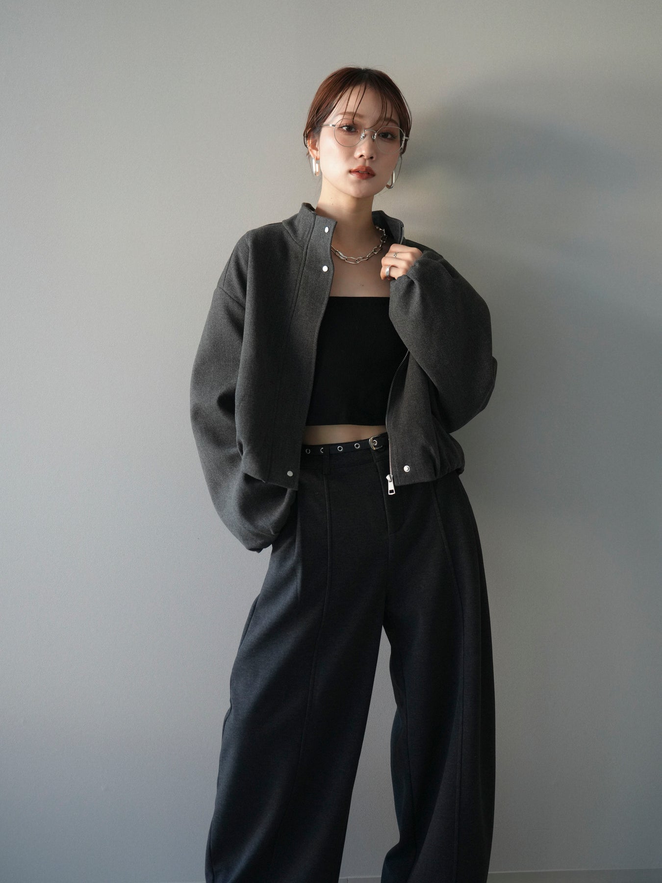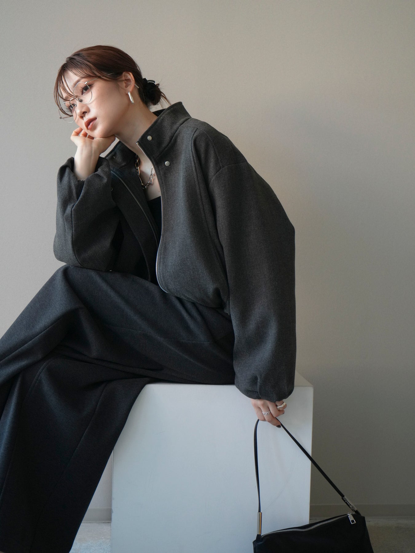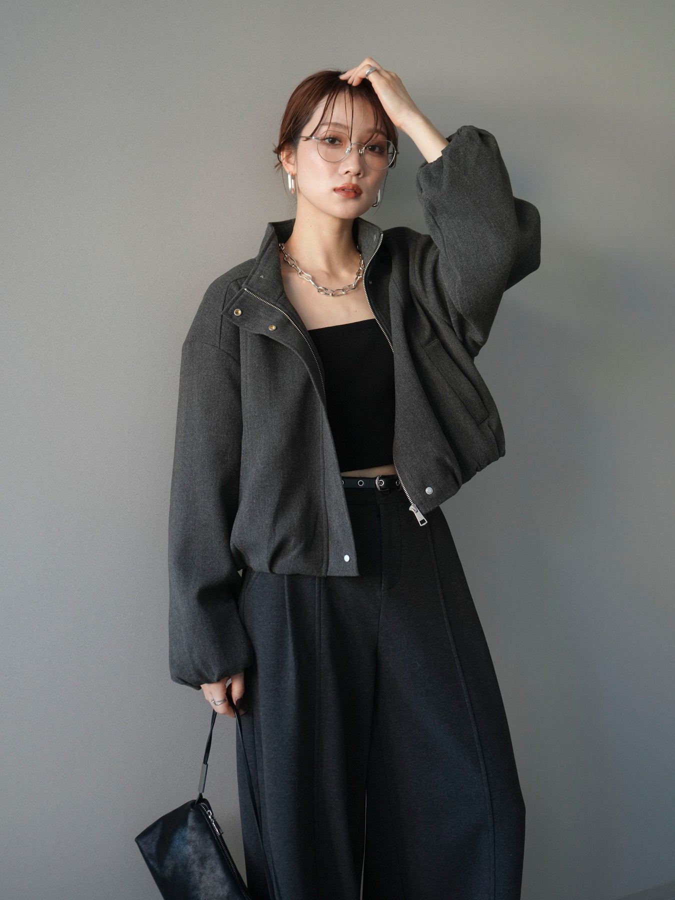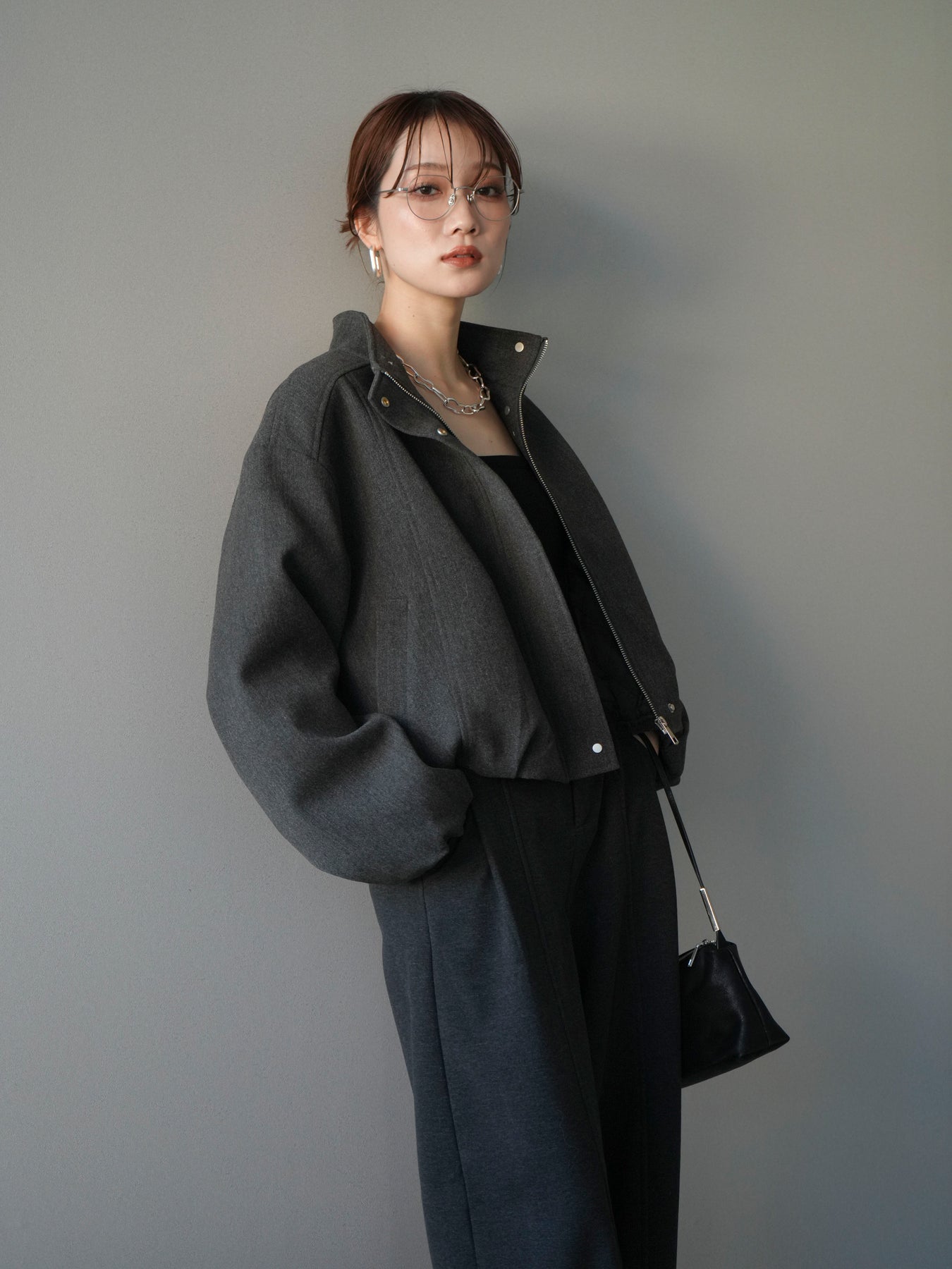 [予約]タックデザインジップブルゾン/charcoal