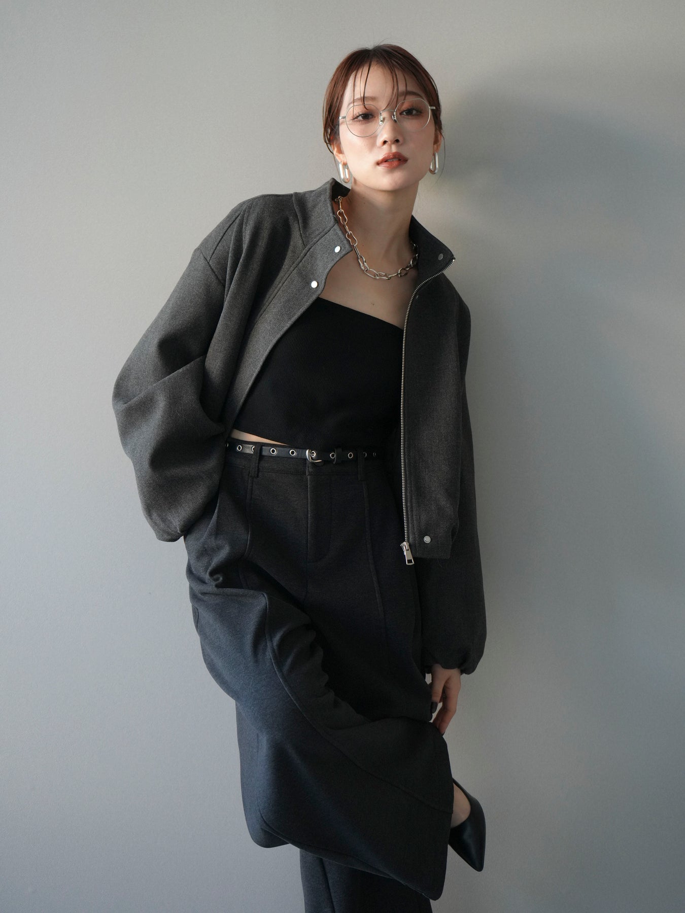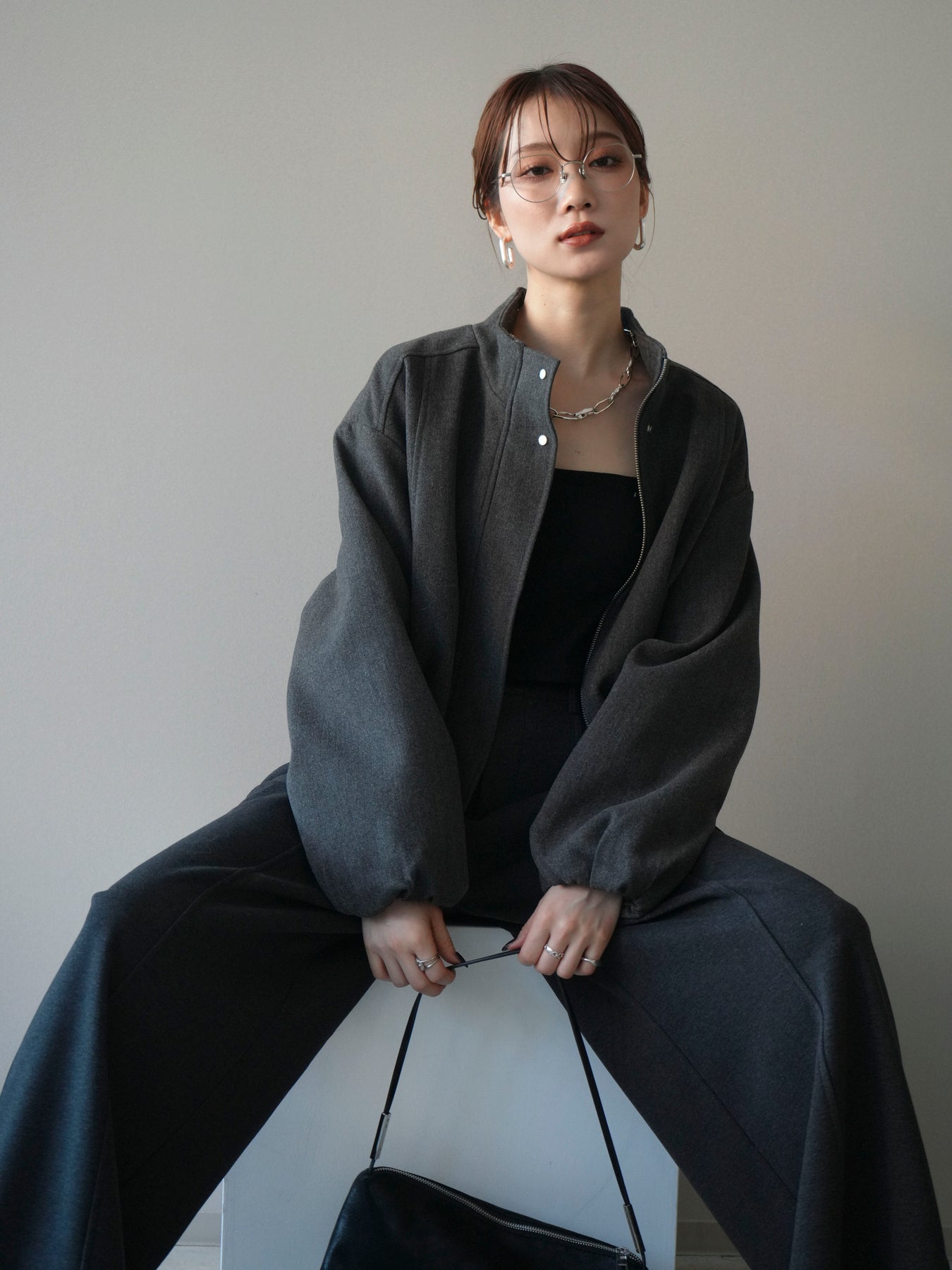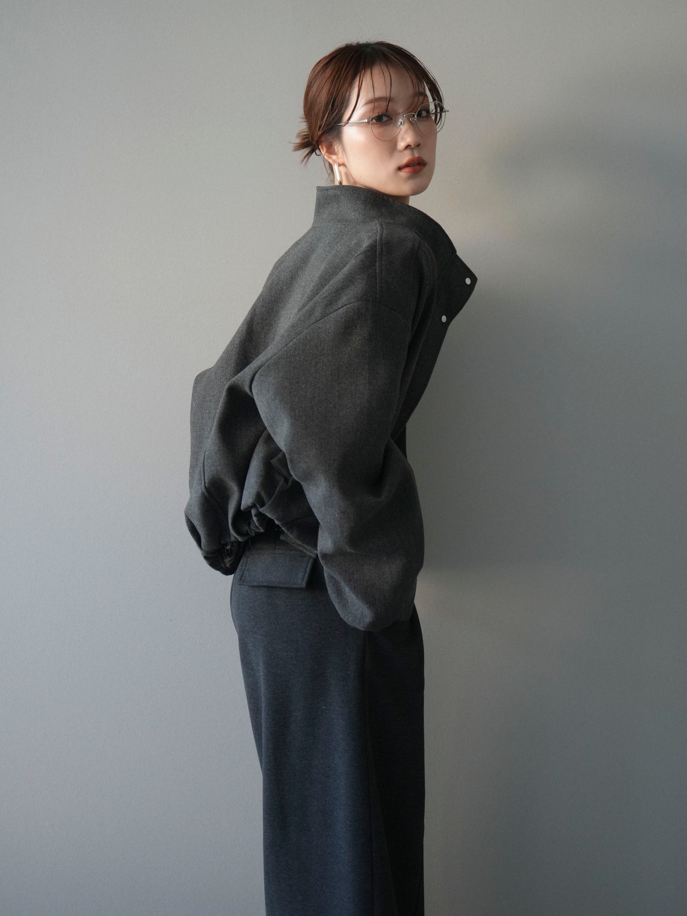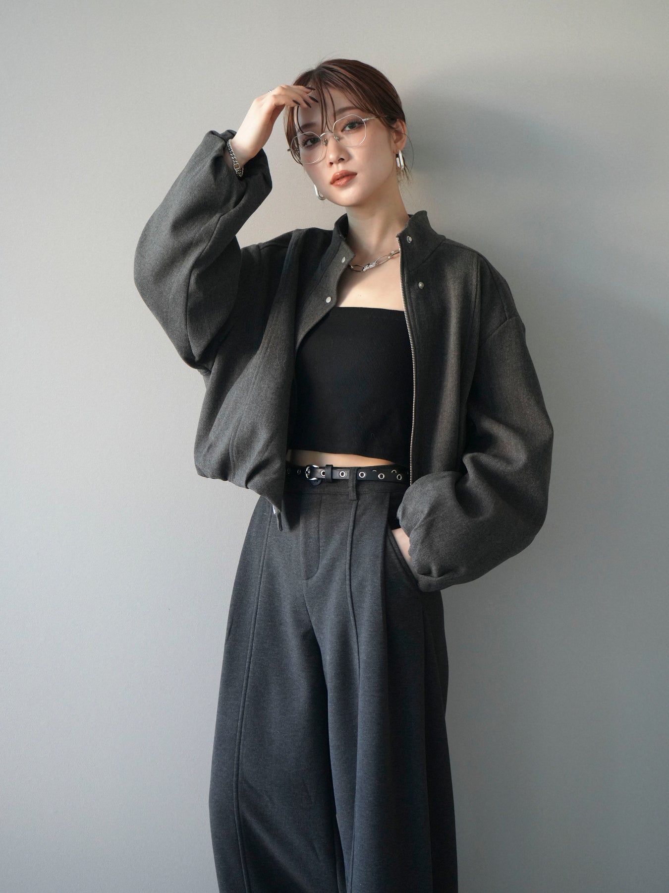 [予約]タックデザインジップブルゾン/charcoal