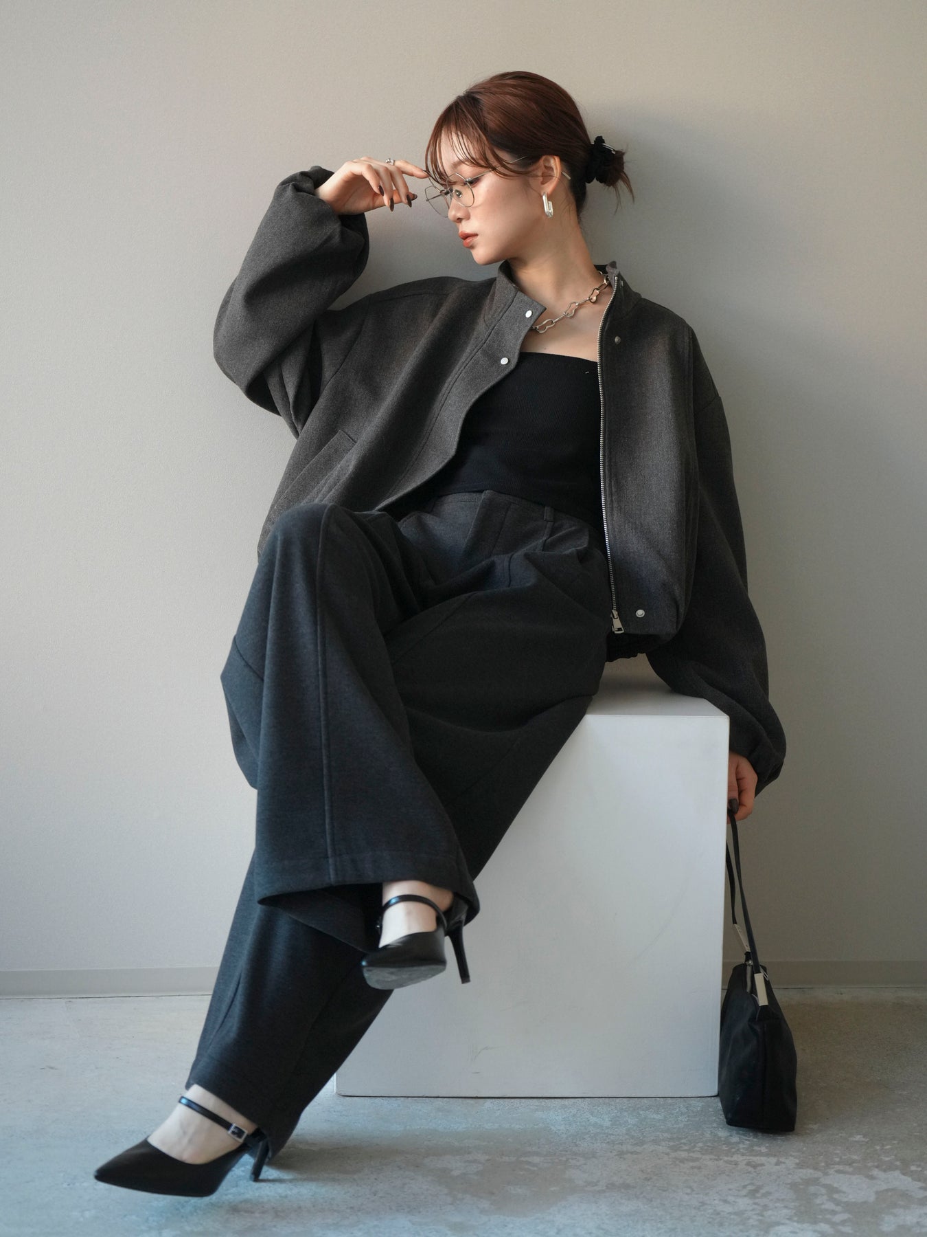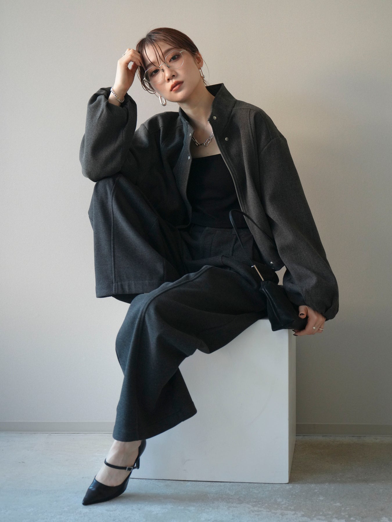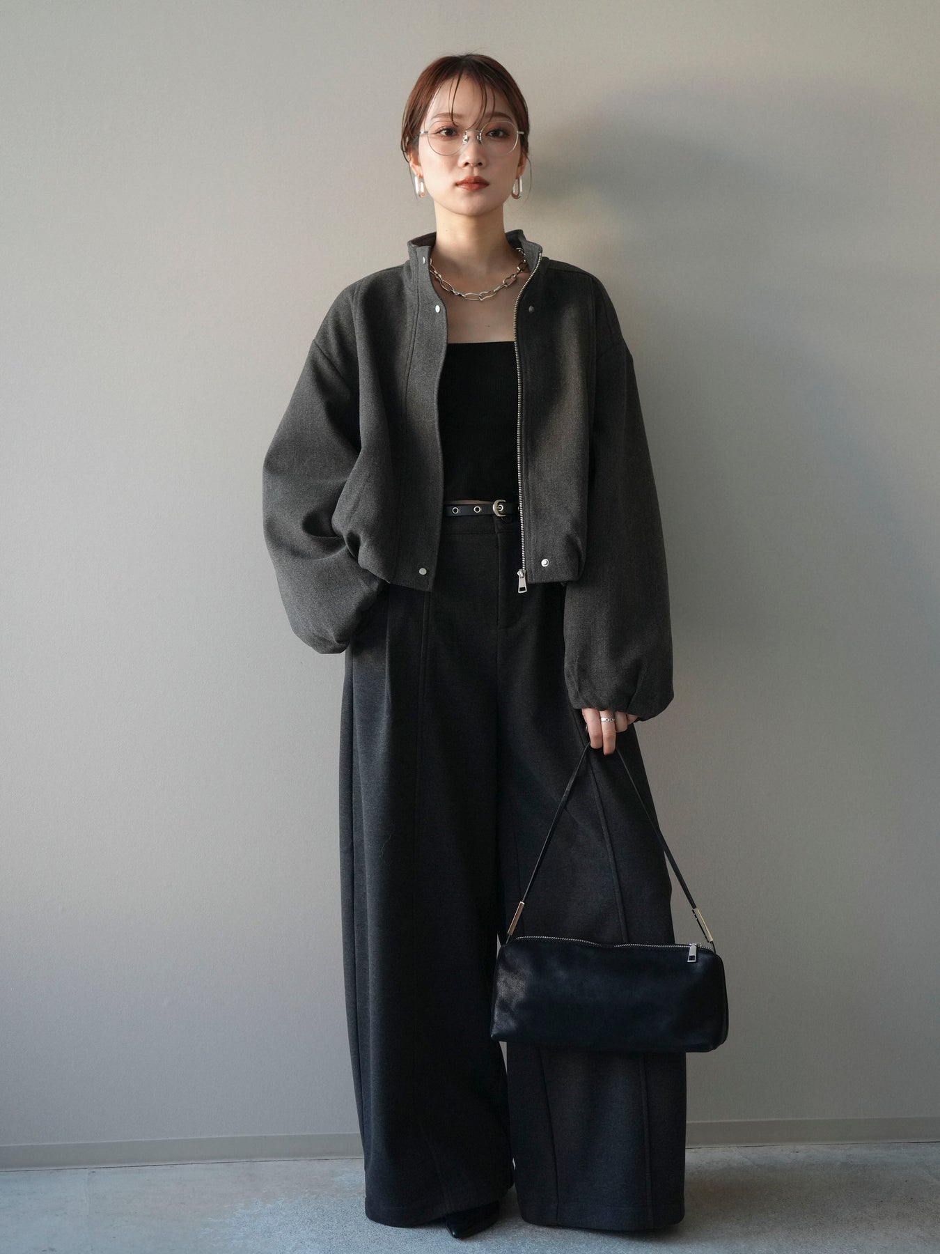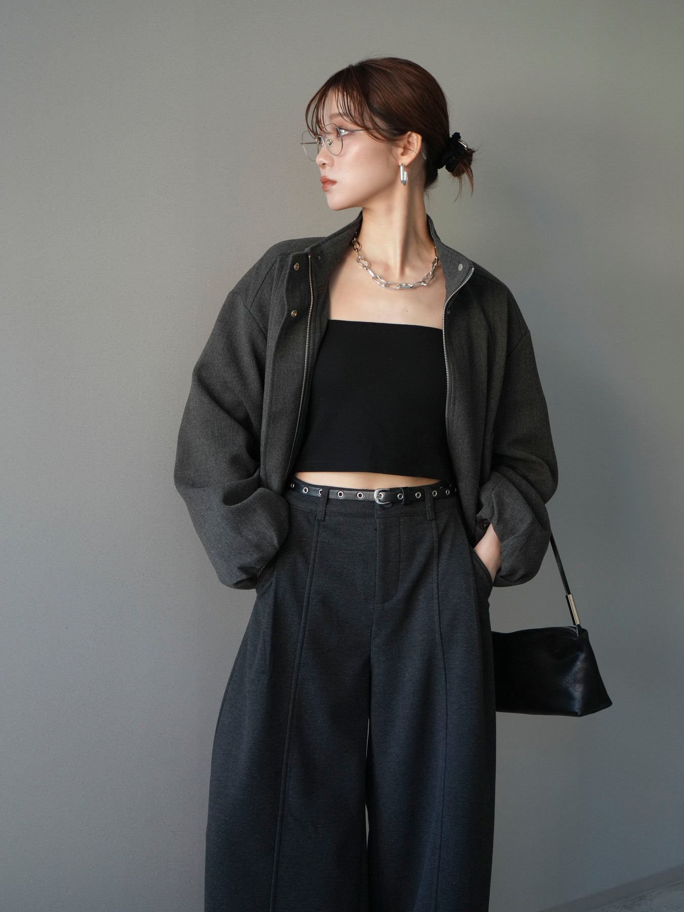 [予約]タックデザインジップブルゾン/charcoal