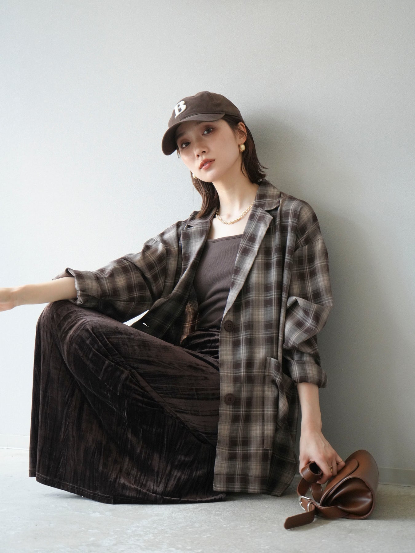 [予約]チェックシャツジャケット/ブラウン