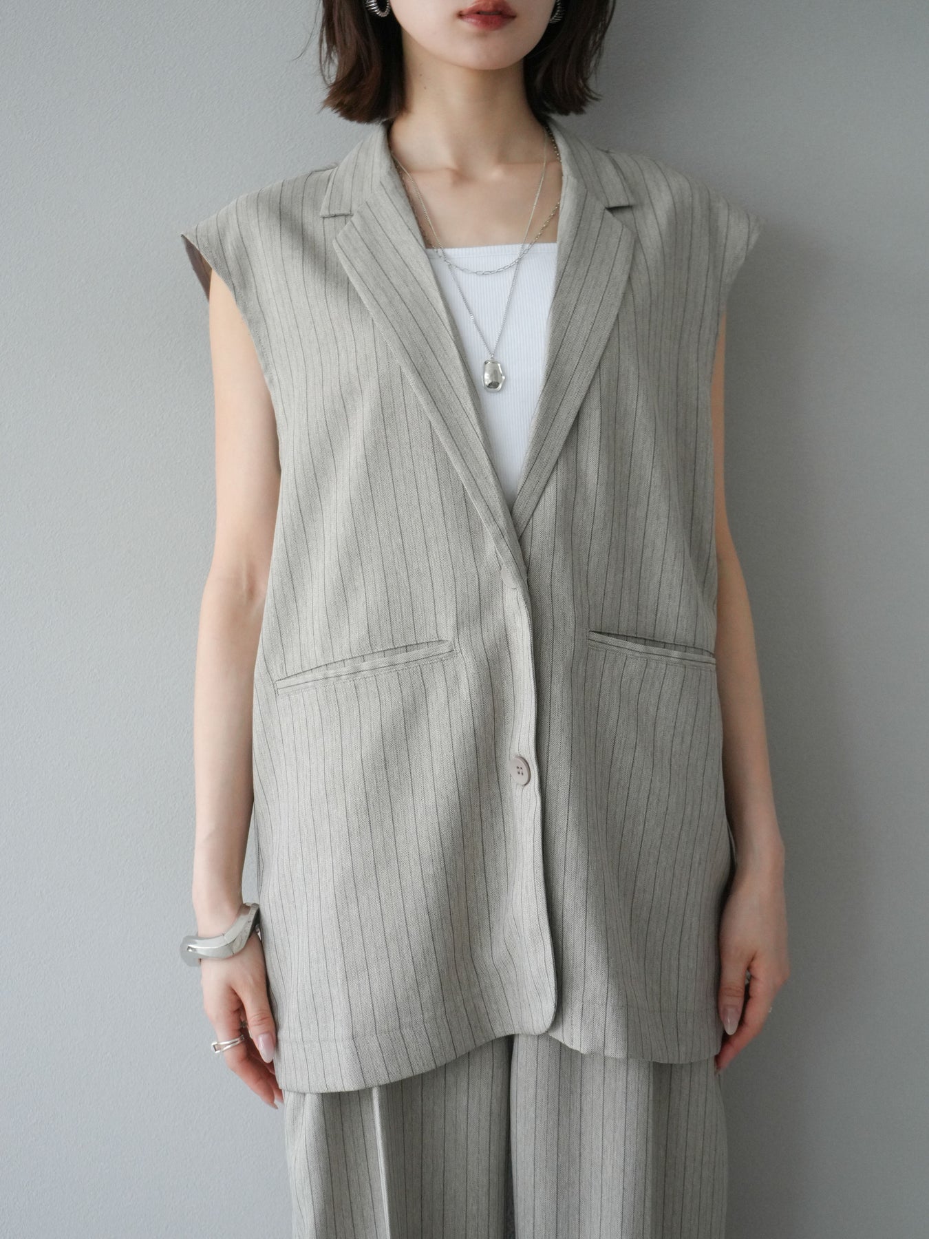 [予約]ヘリンボーンストライプジレ/グレージュ