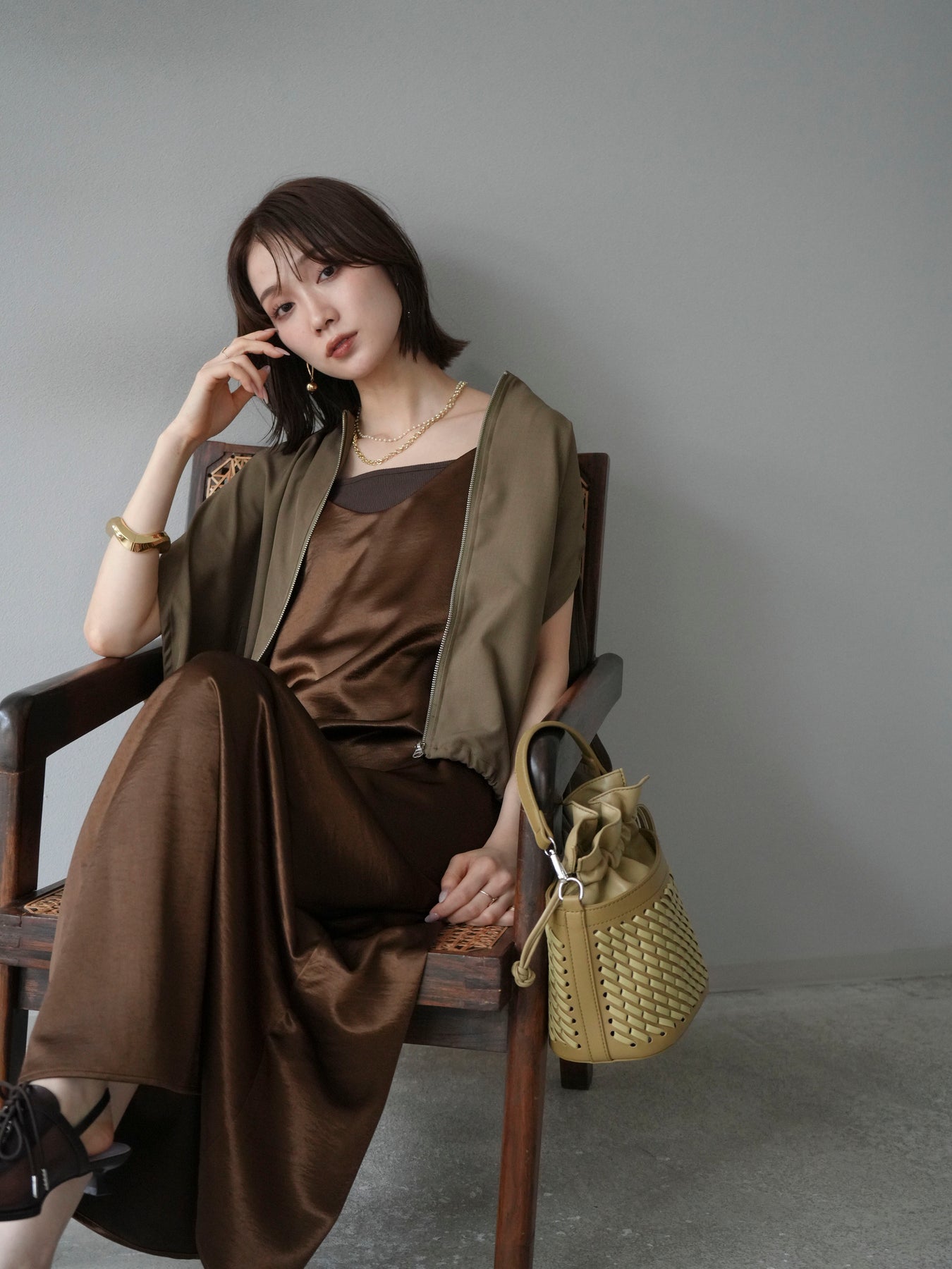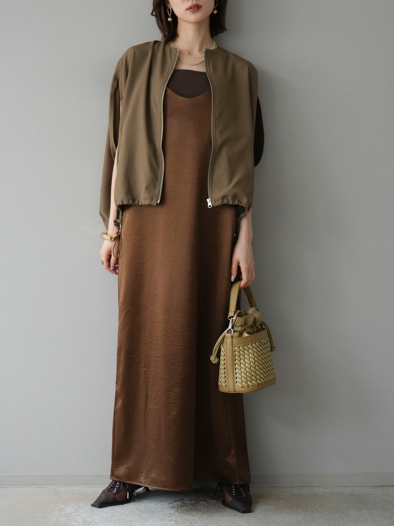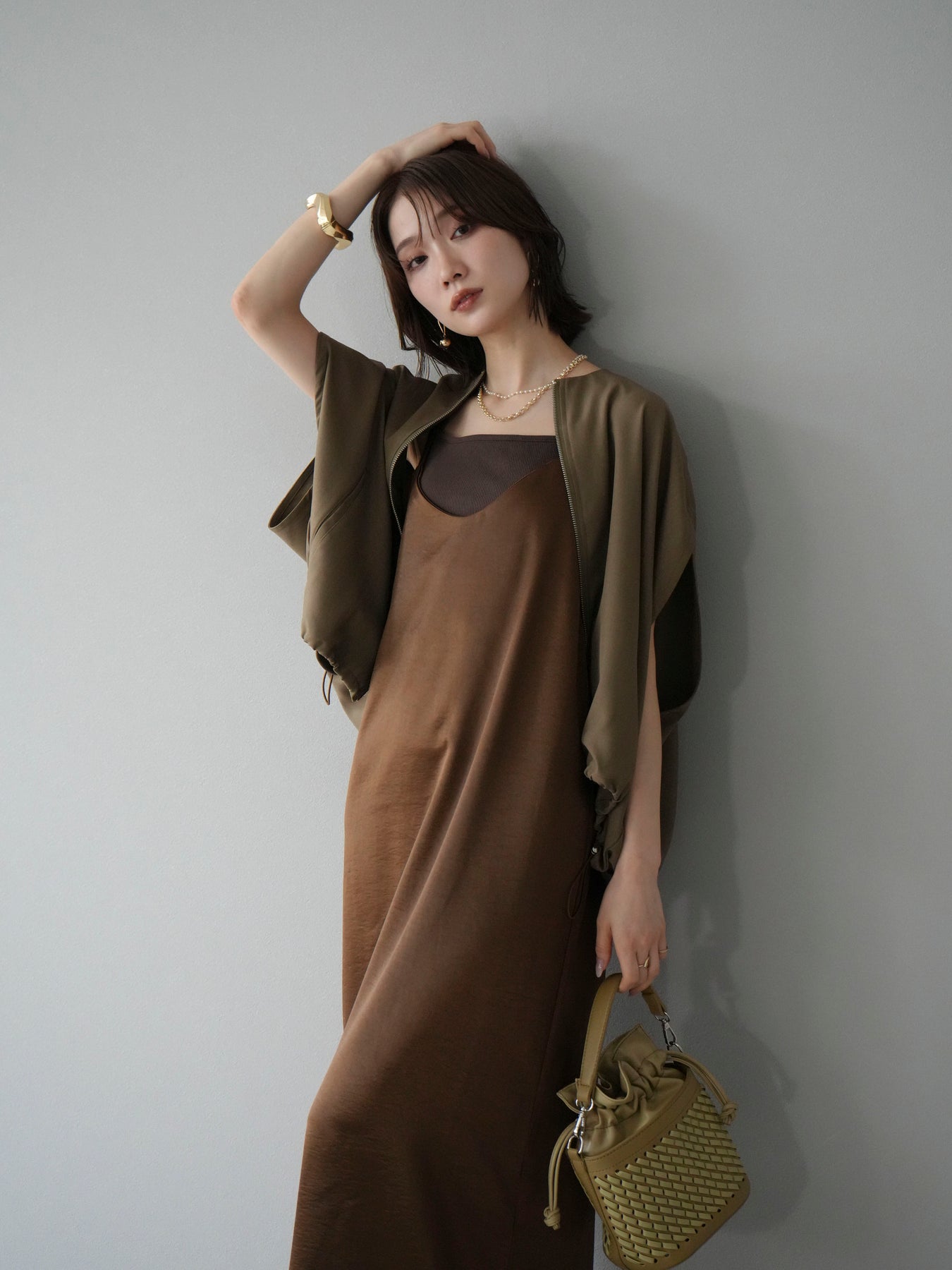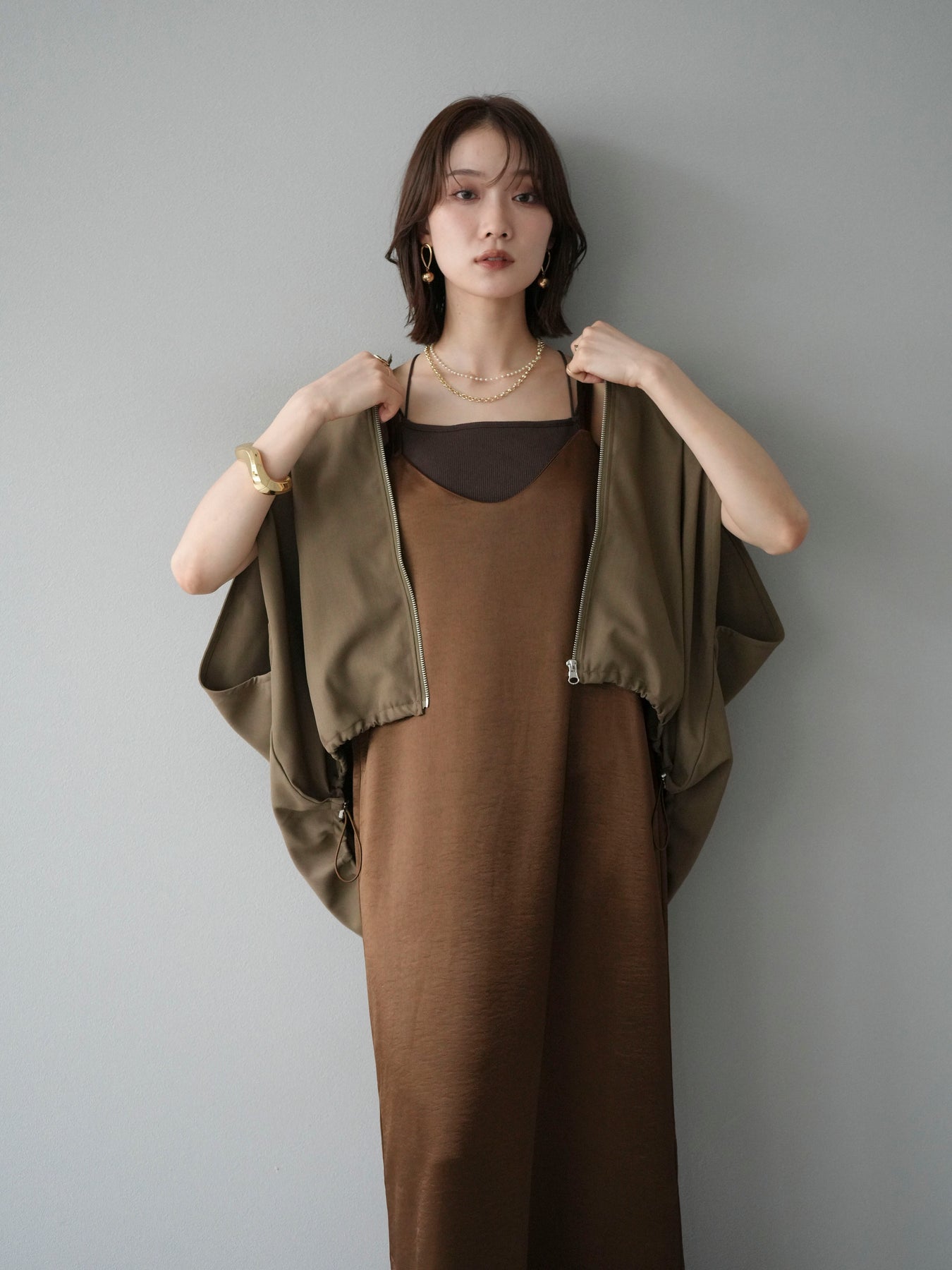 [予約]スリーブレスドロストZIPブルゾン/ブラウン