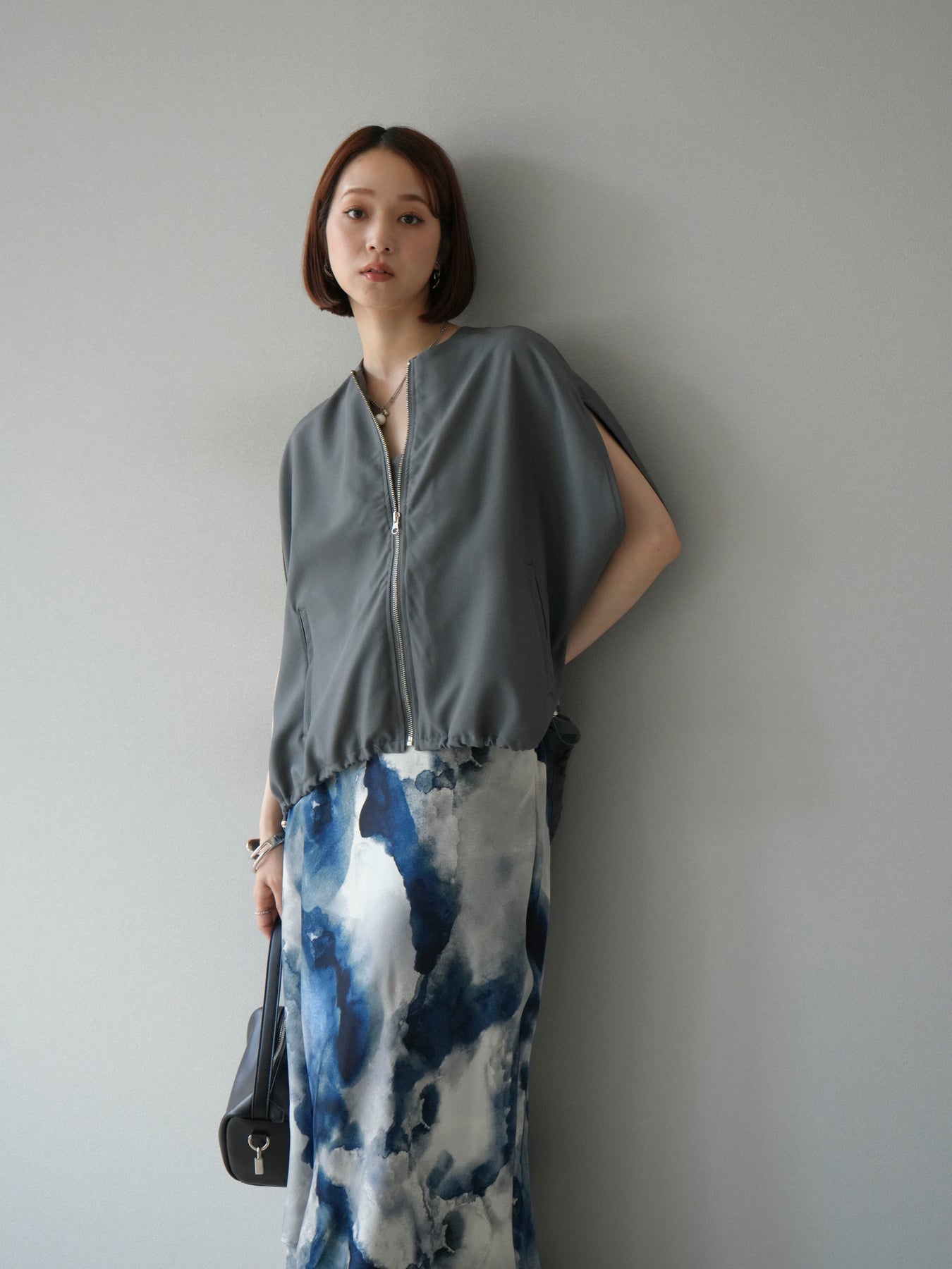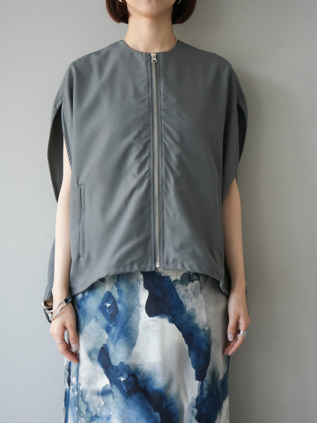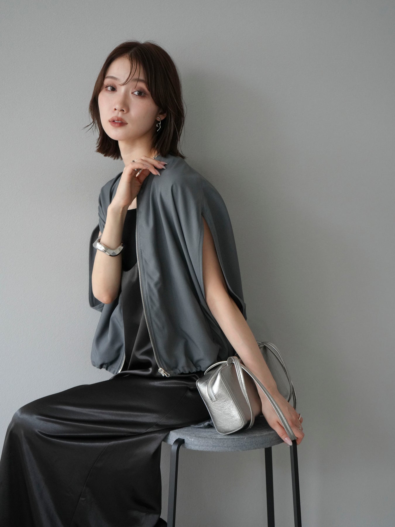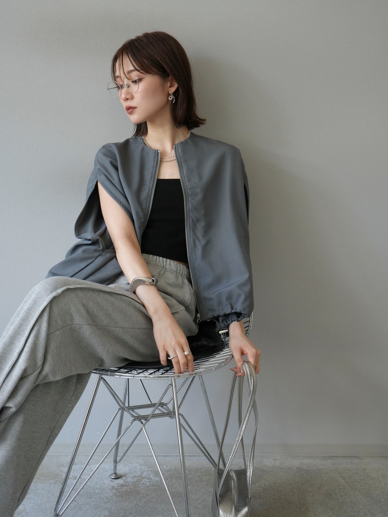 [予約]スリーブレスドロストZIPブルゾン/グレー