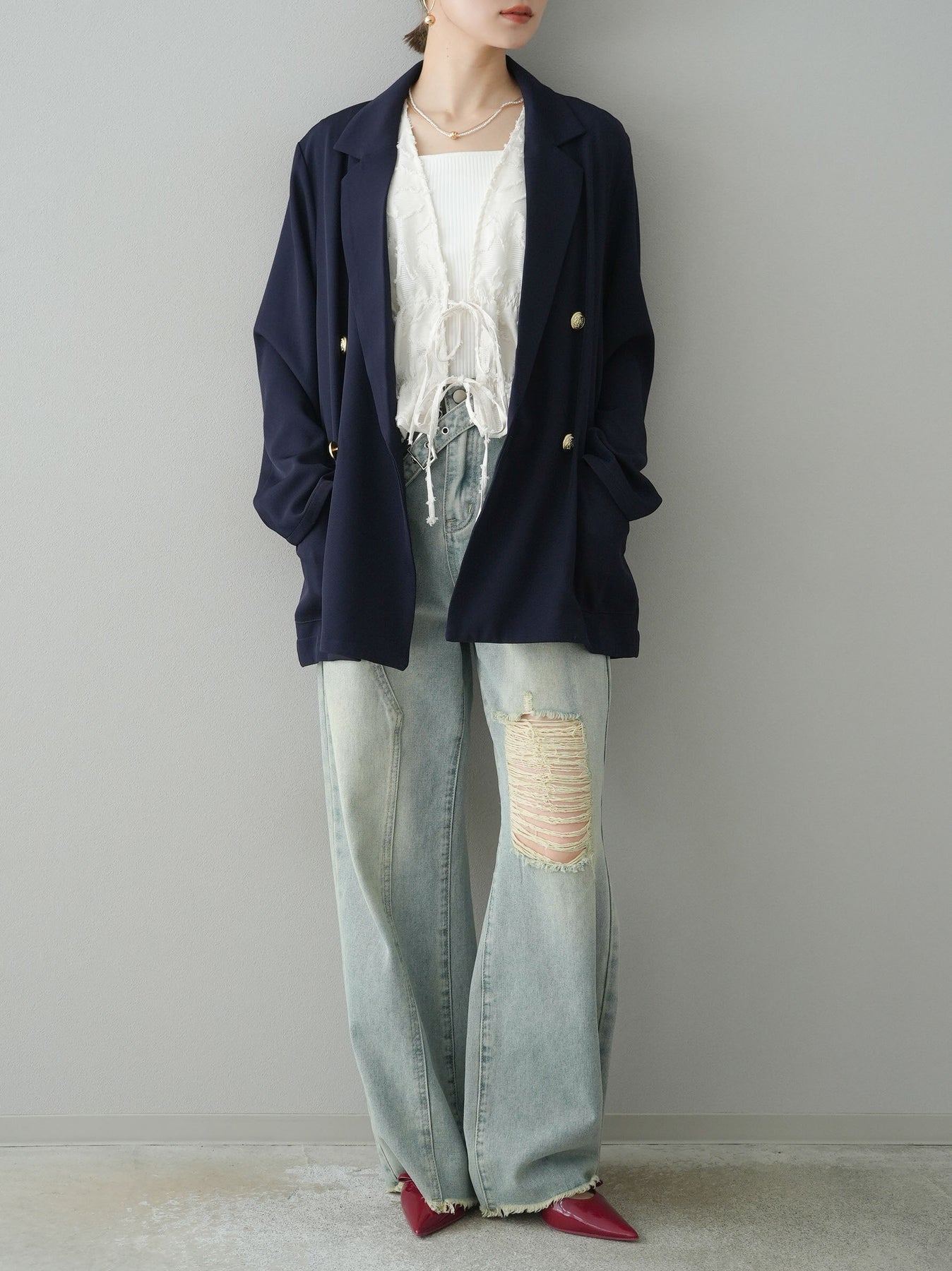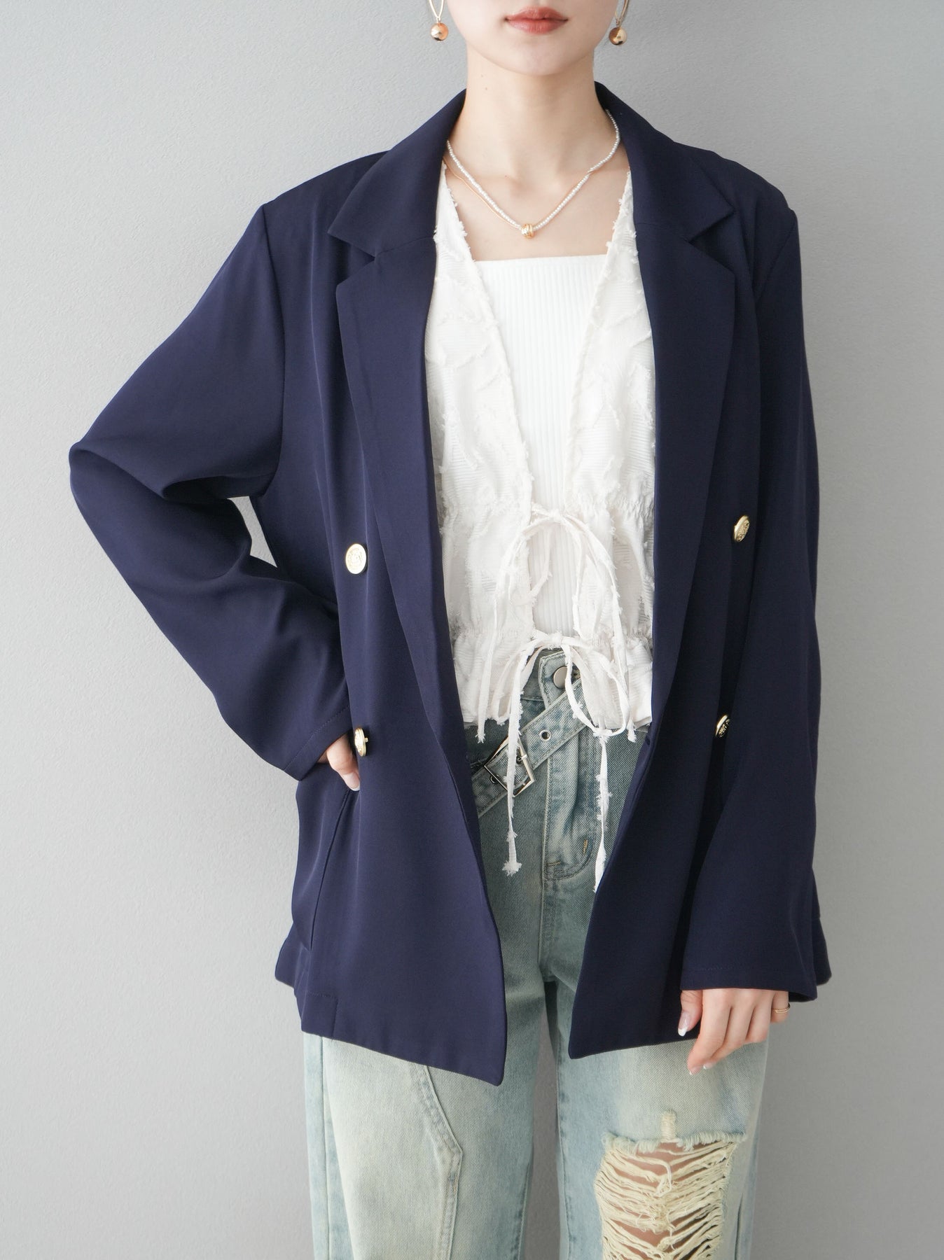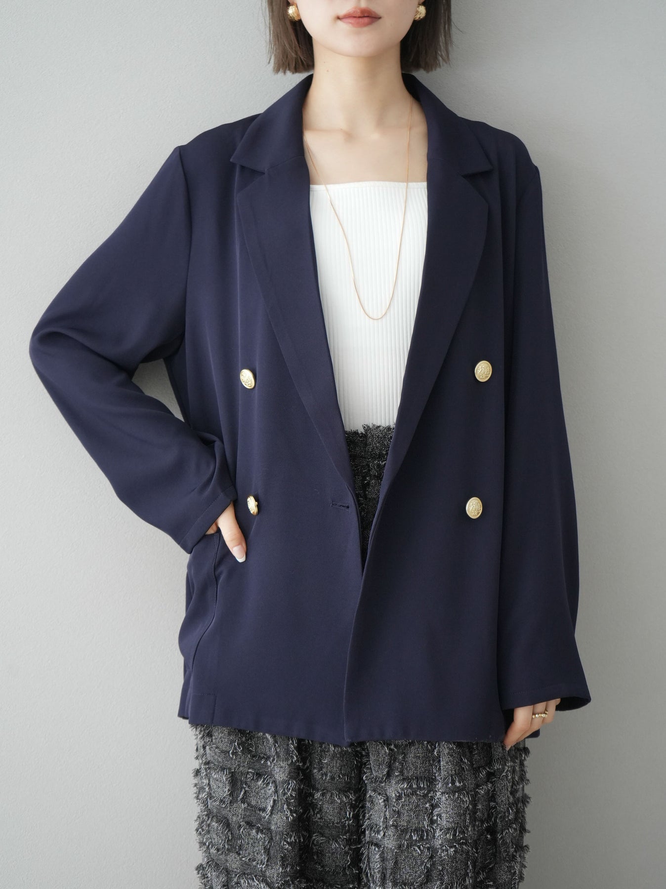[予約]ゴールドボタンダブルテーラードジャケットに関連する商品を探す↓