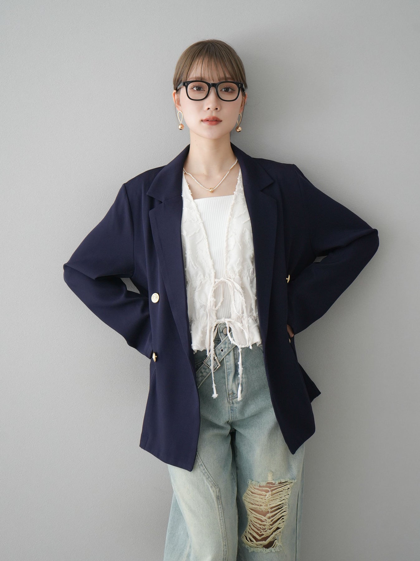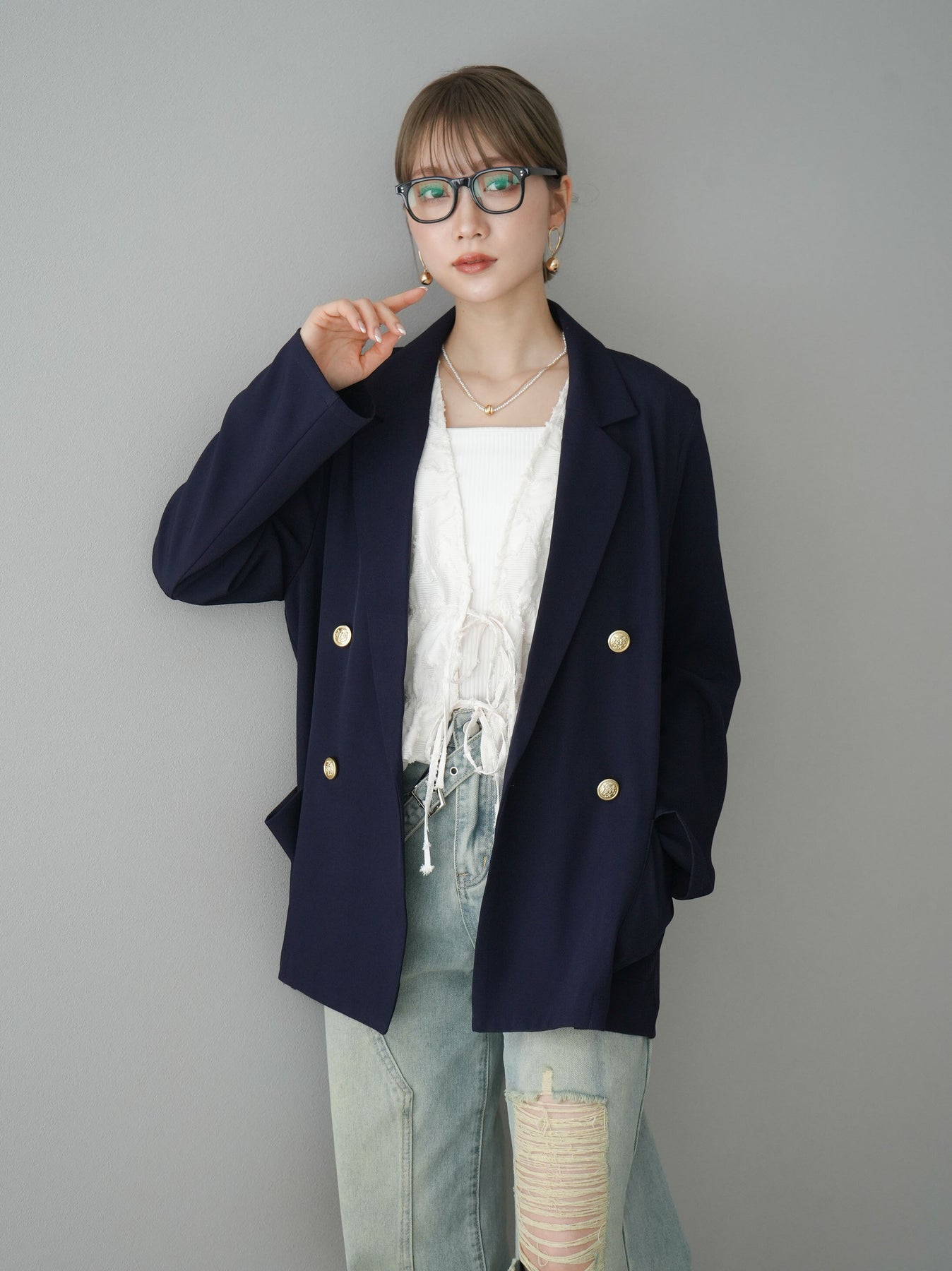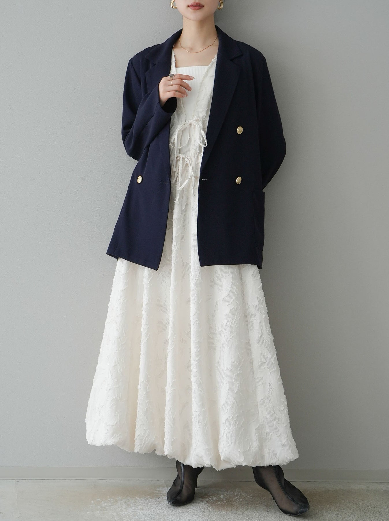 [予約]ゴールドボタンダブルテーラードジャケットに関連する商品を探す↓