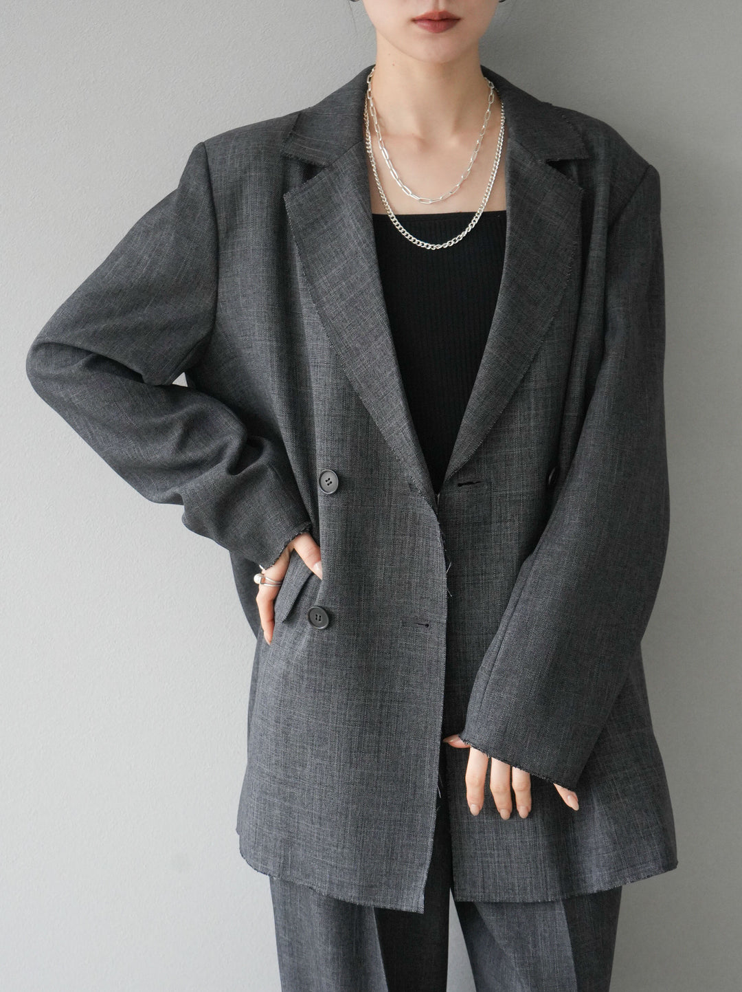 [予約]カットオフダブルブレストジャケット/ブラック