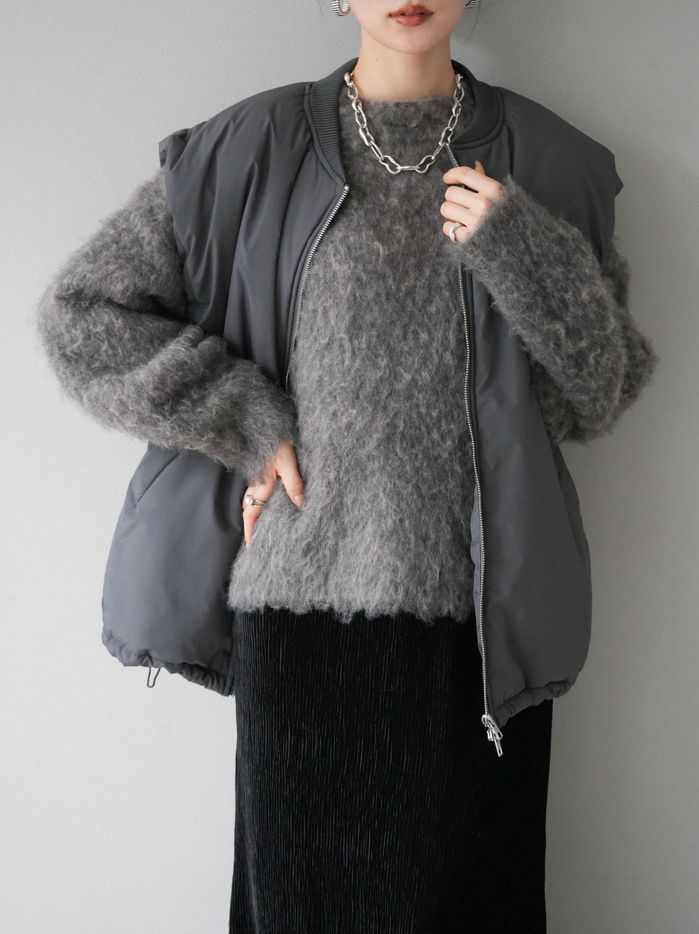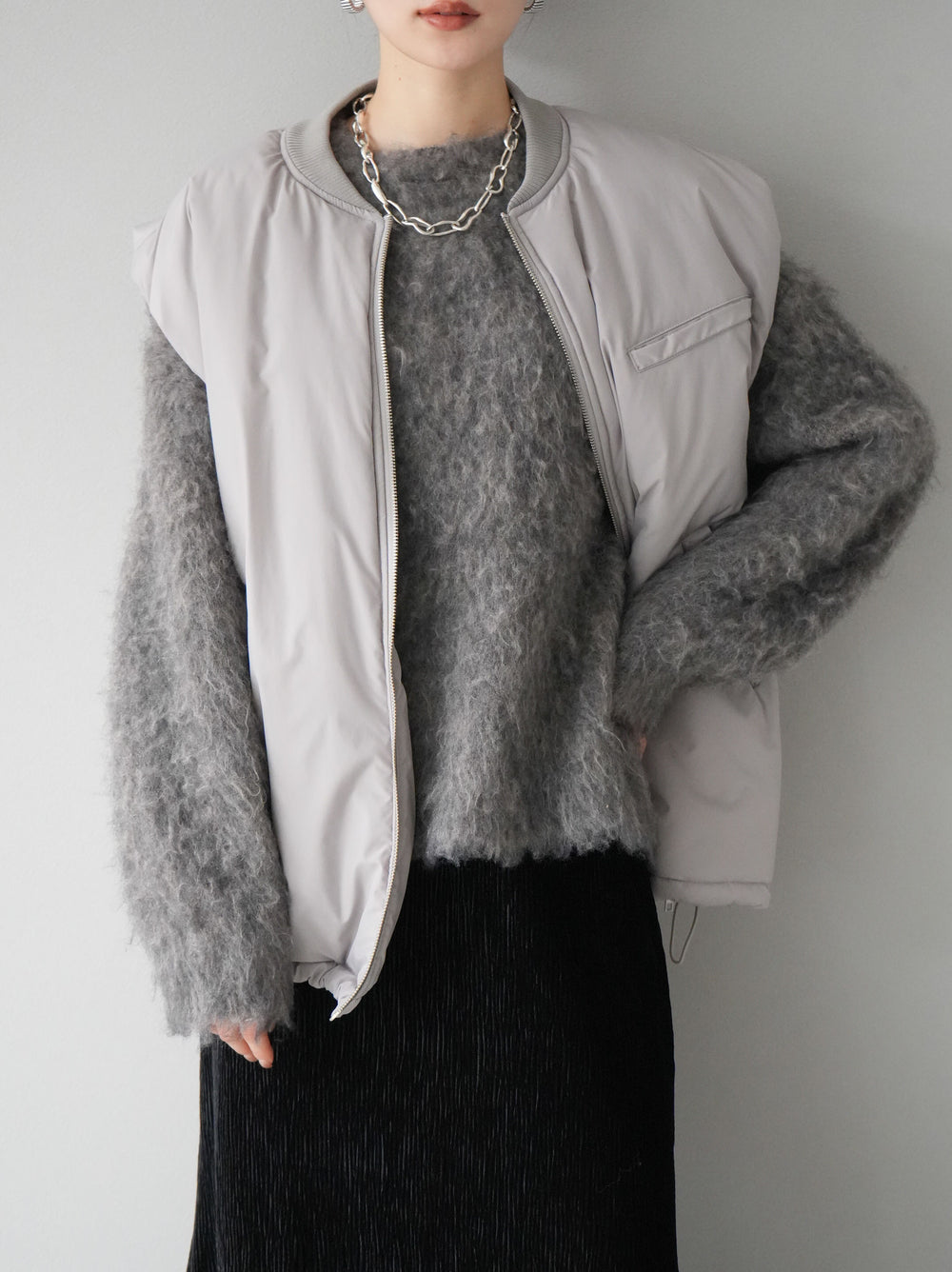 [予約]バイカラーダウンベスト/グレー