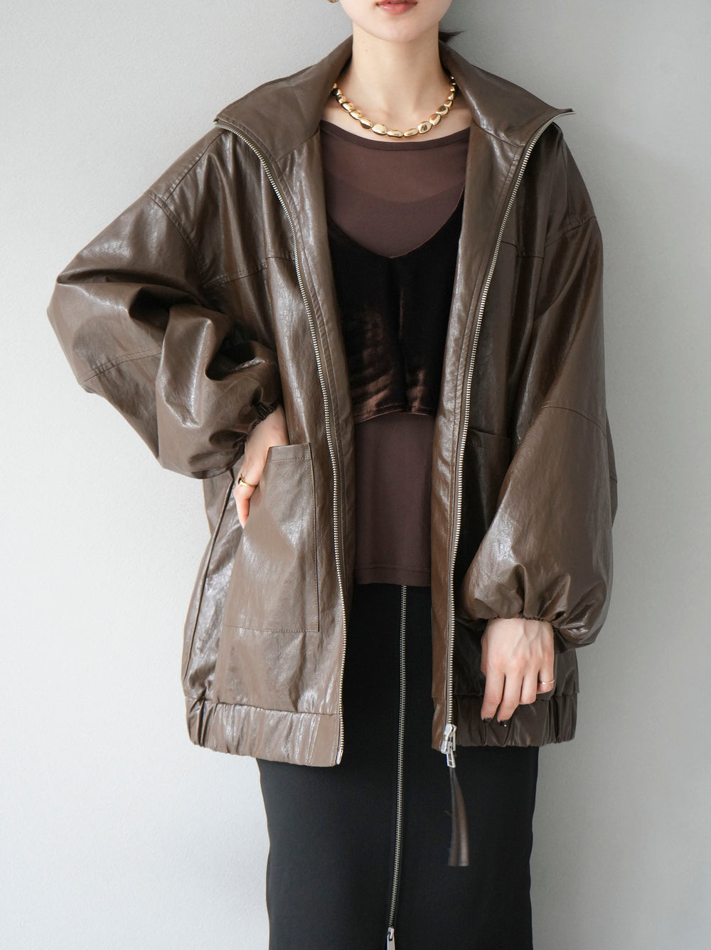 [予約]フェイクレザーオーバーブルゾン/ブラウン