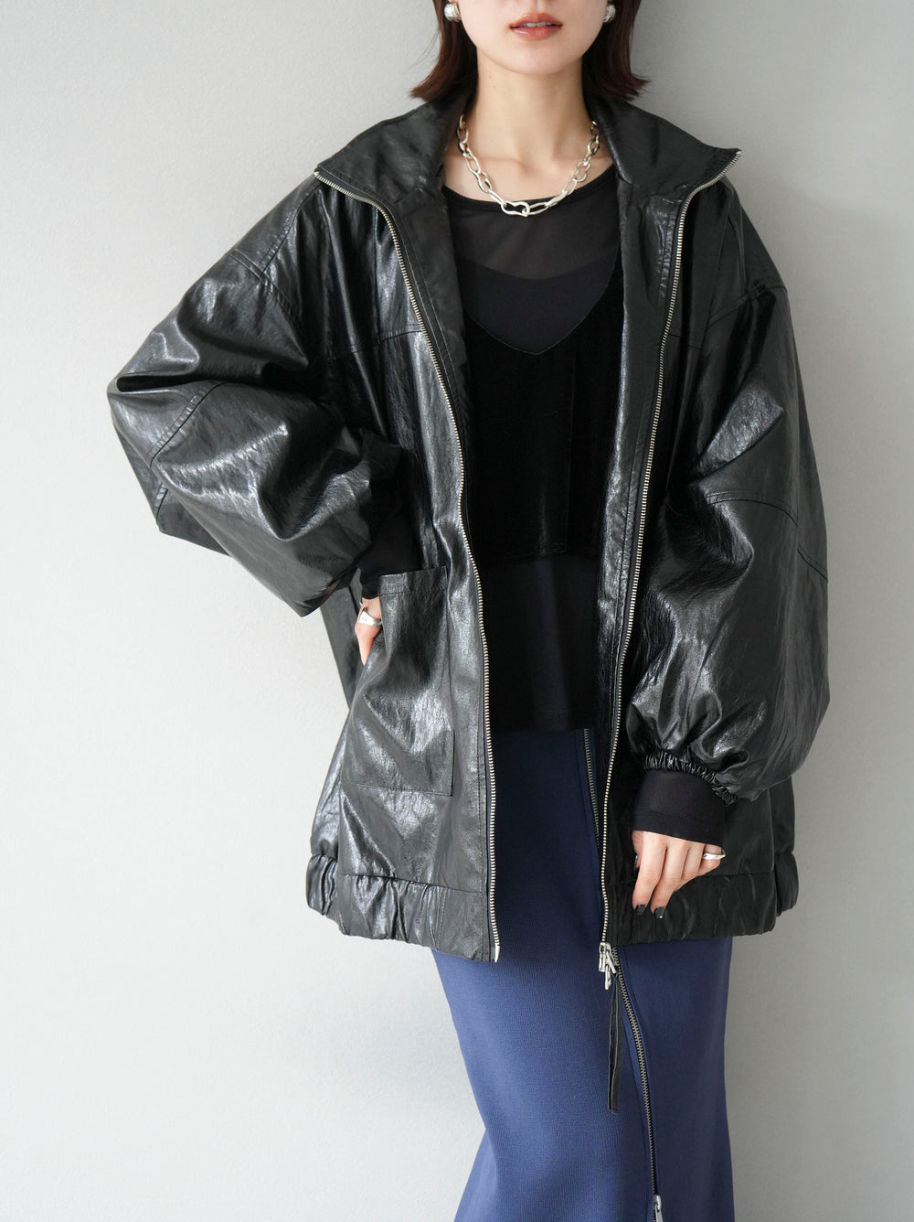 [予約]フェイクレザーオーバーブルゾン/ブラック