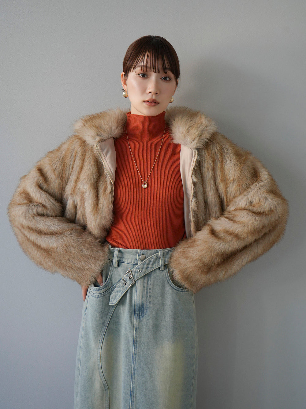 [予約]スタンドカラーエコファーショートコート/ブラウン