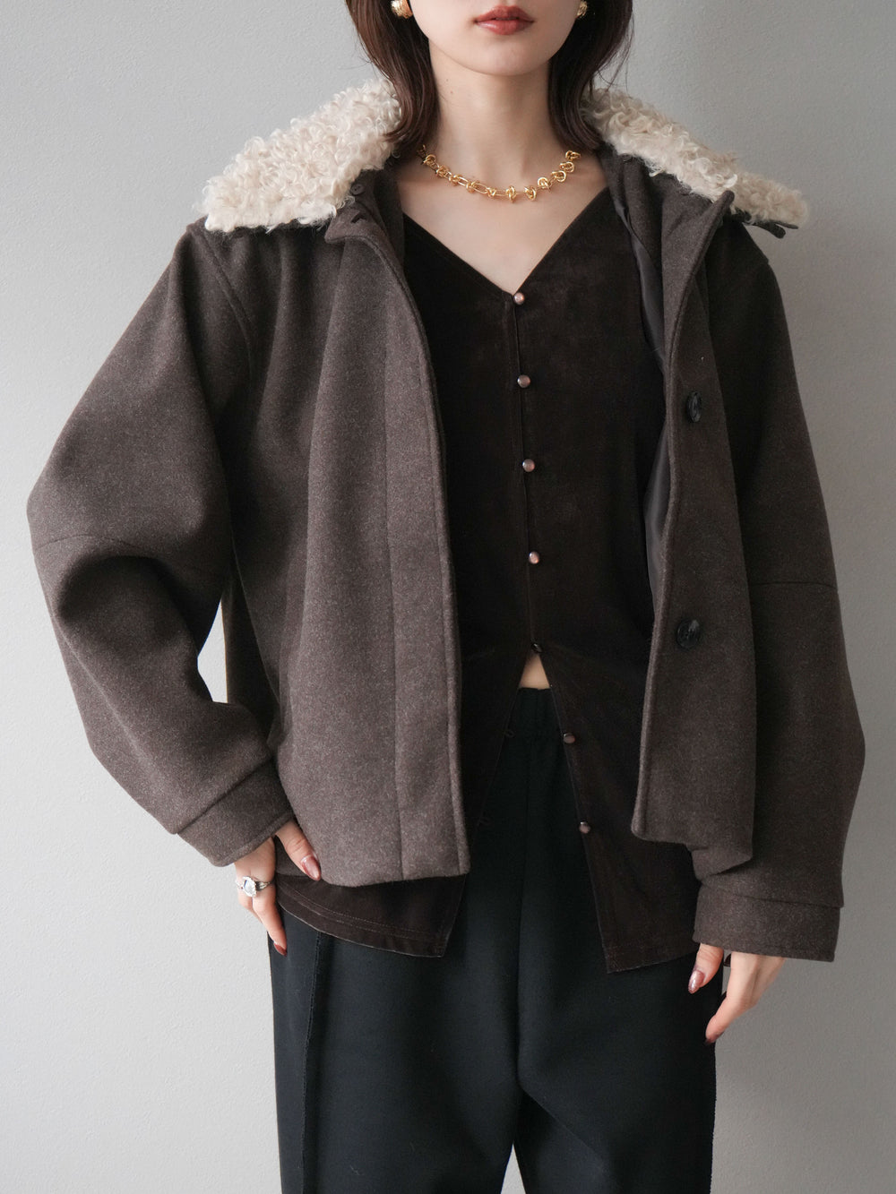 [予約]ロービングボアえりブルゾン/brown
