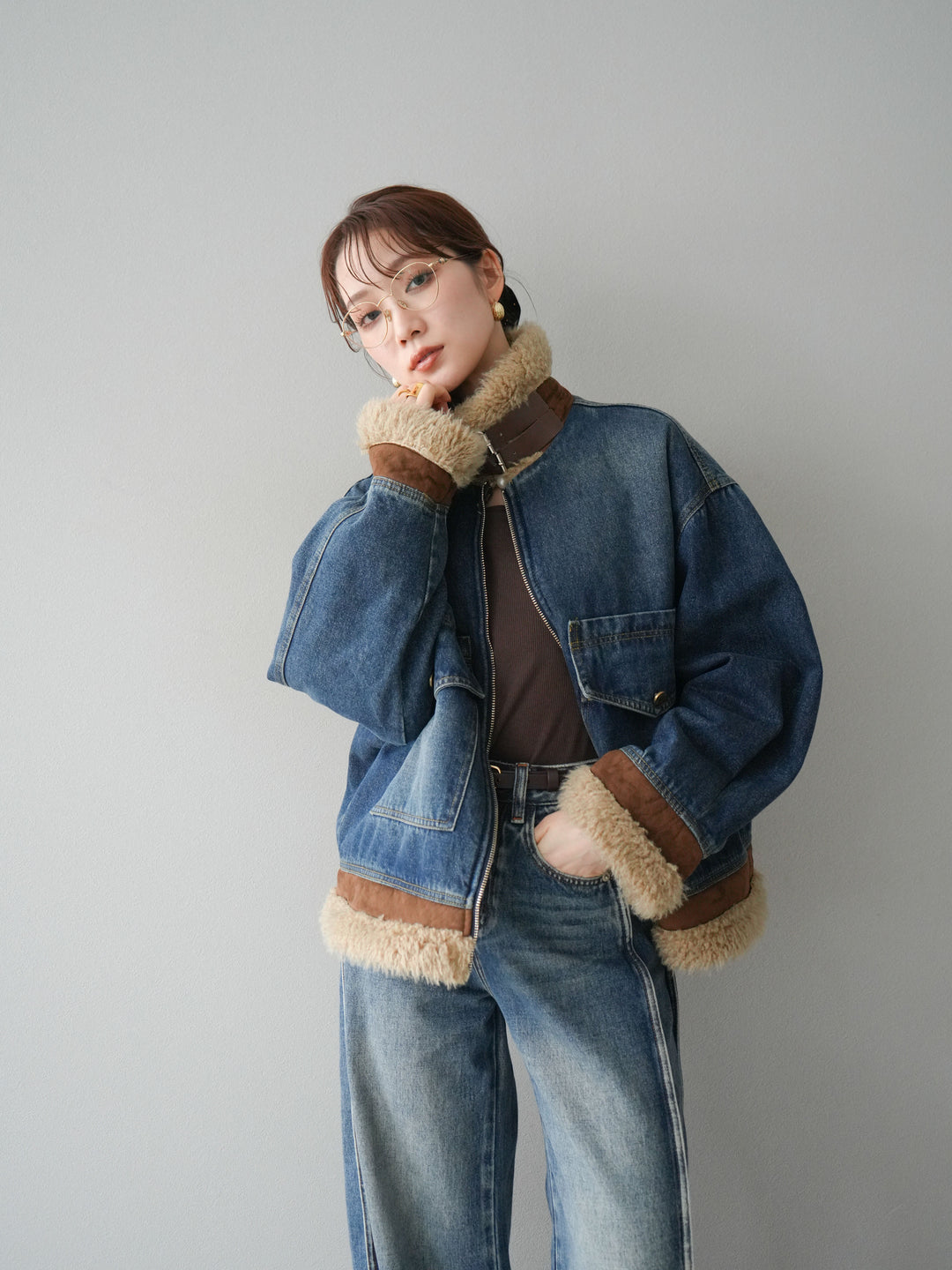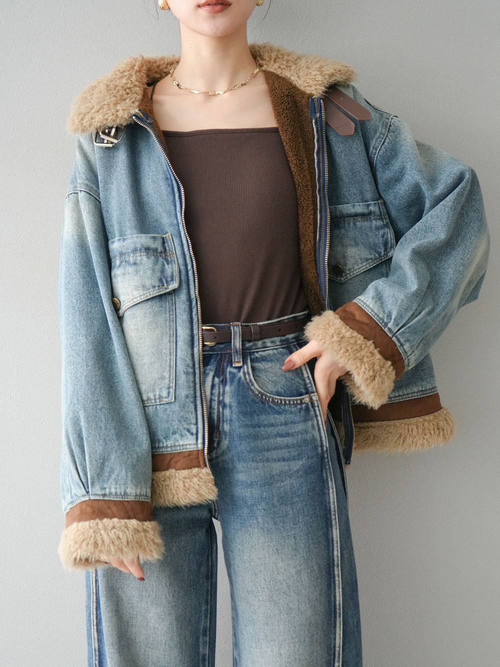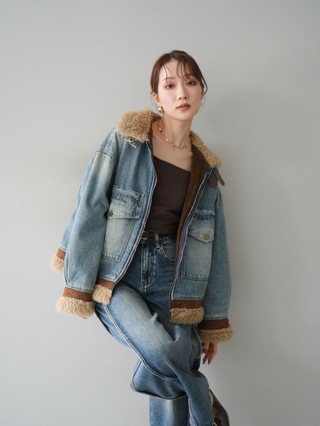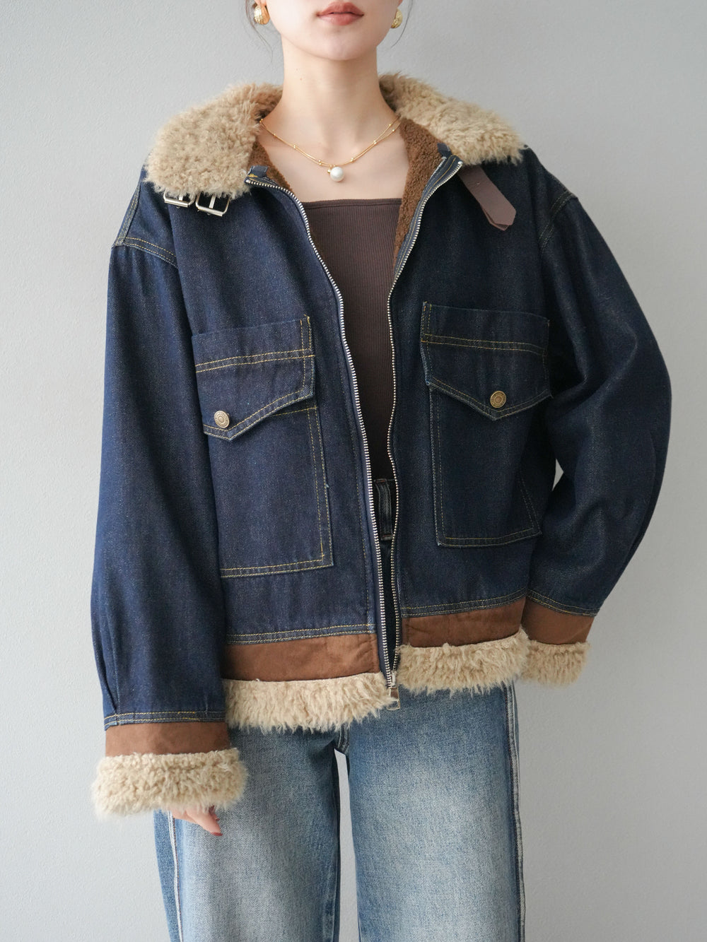 [予約]デニムxファーブルゾン/denimbrown