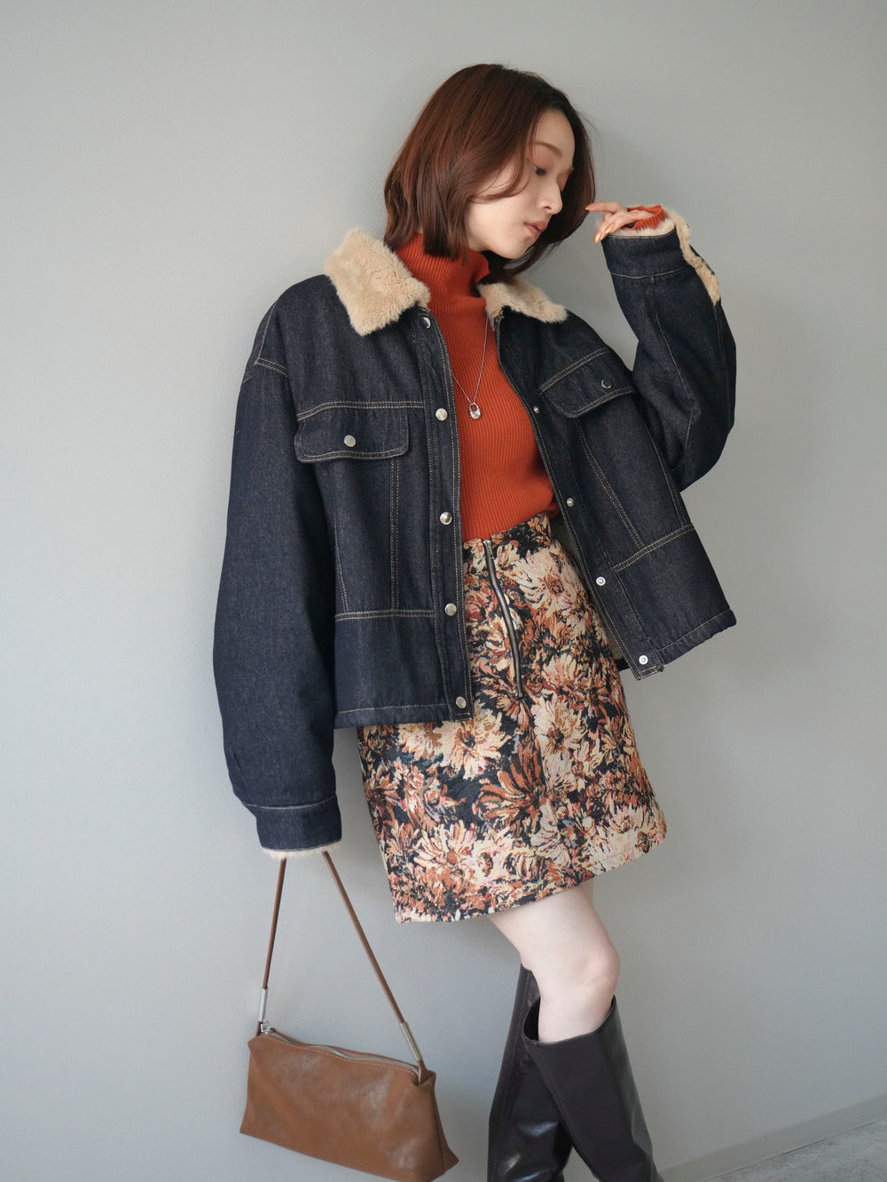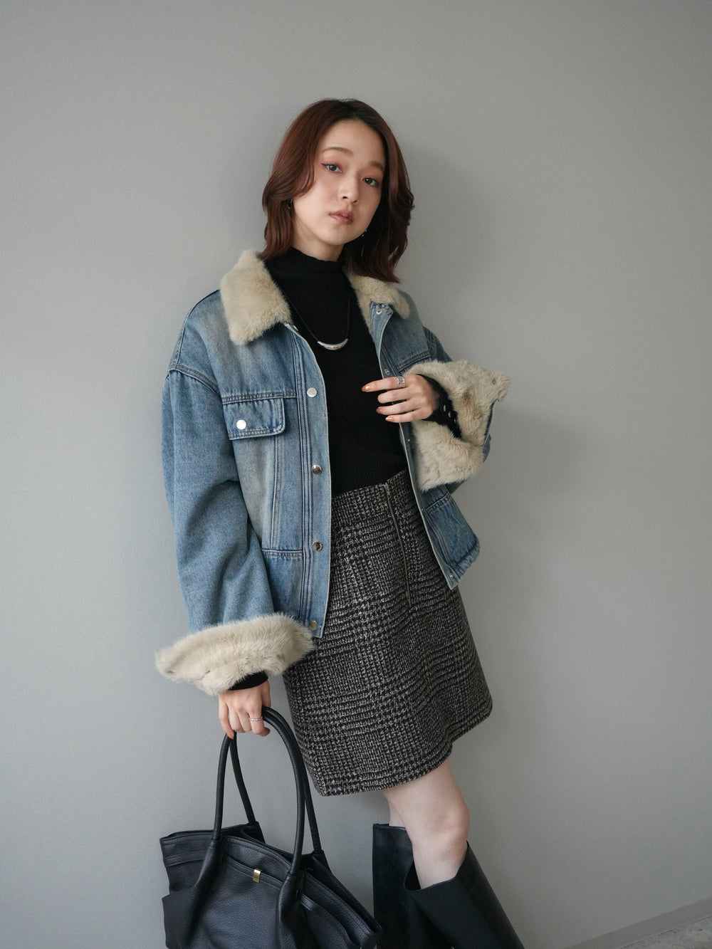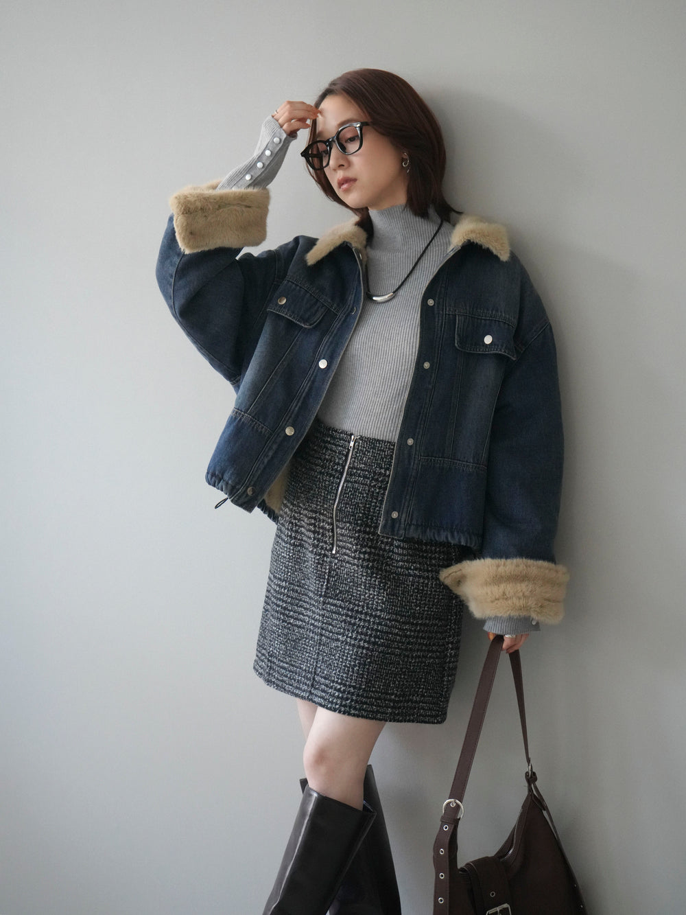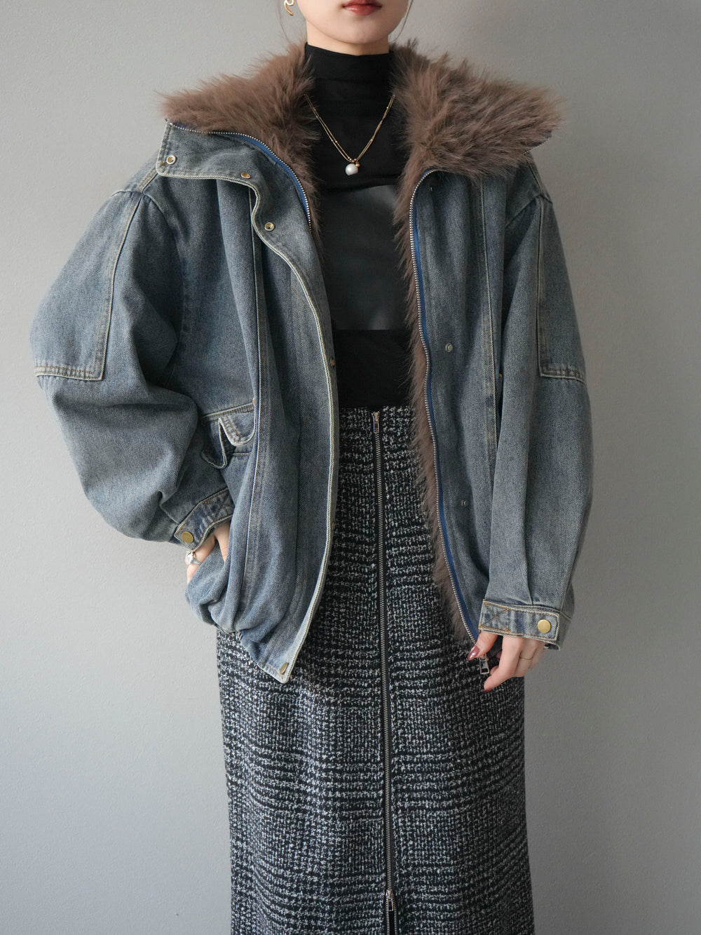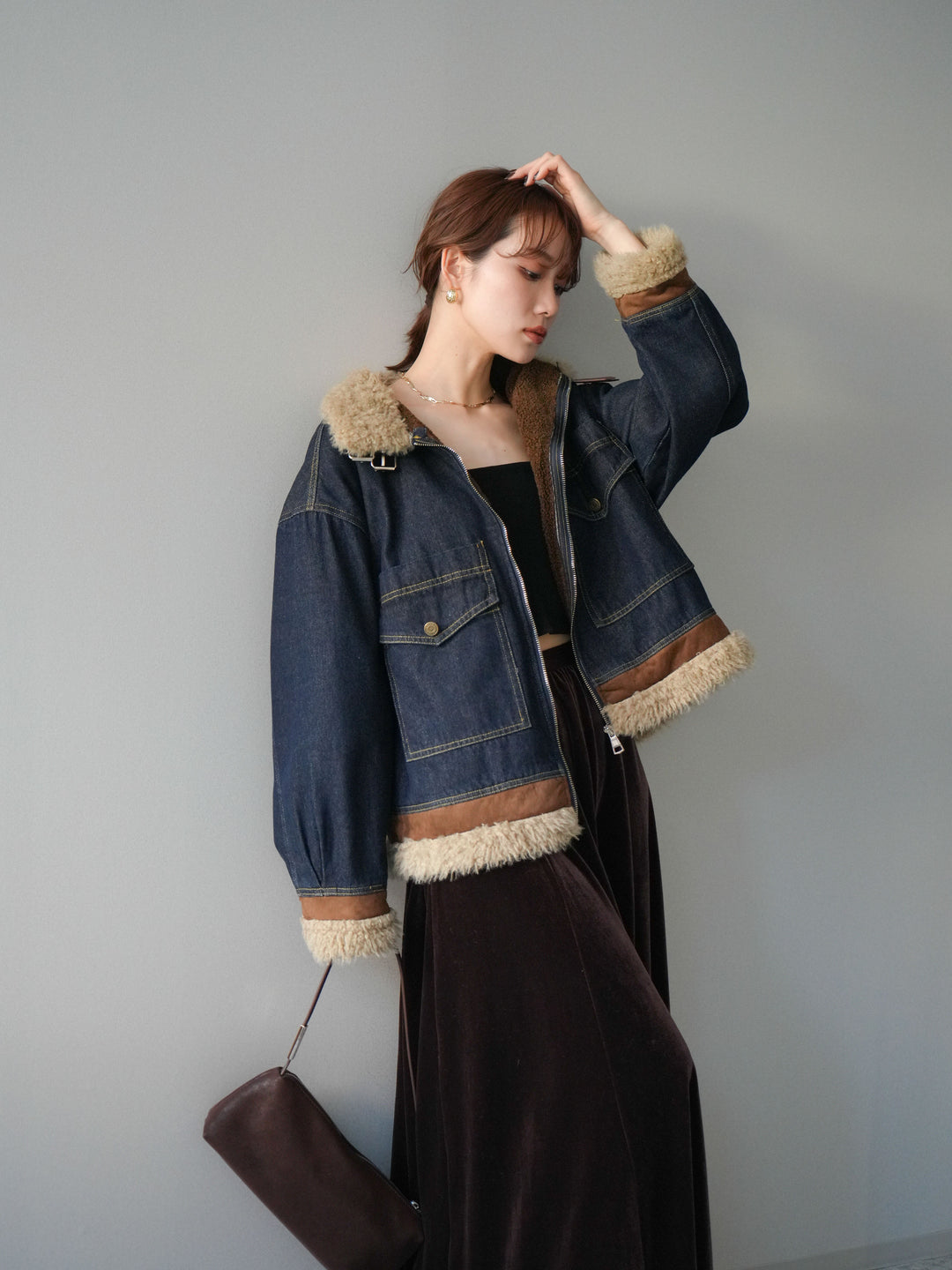 [予約]デニムxファーブルゾン/denimbrown
