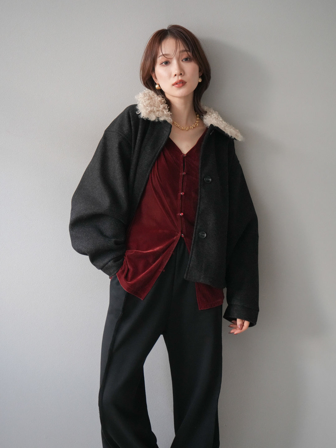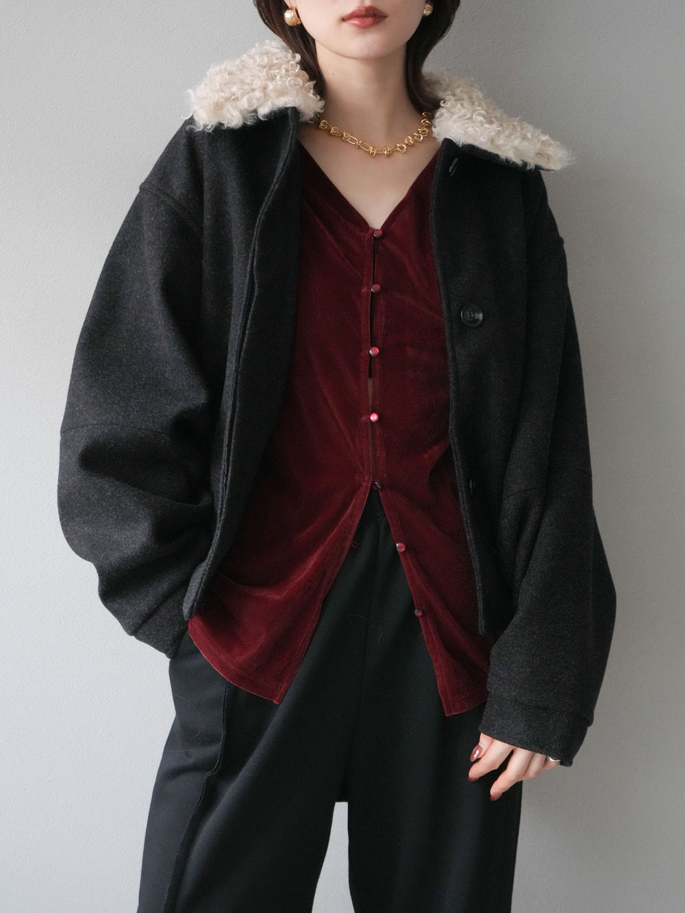 [予約]ロービングボアえりブルゾン/charcoal