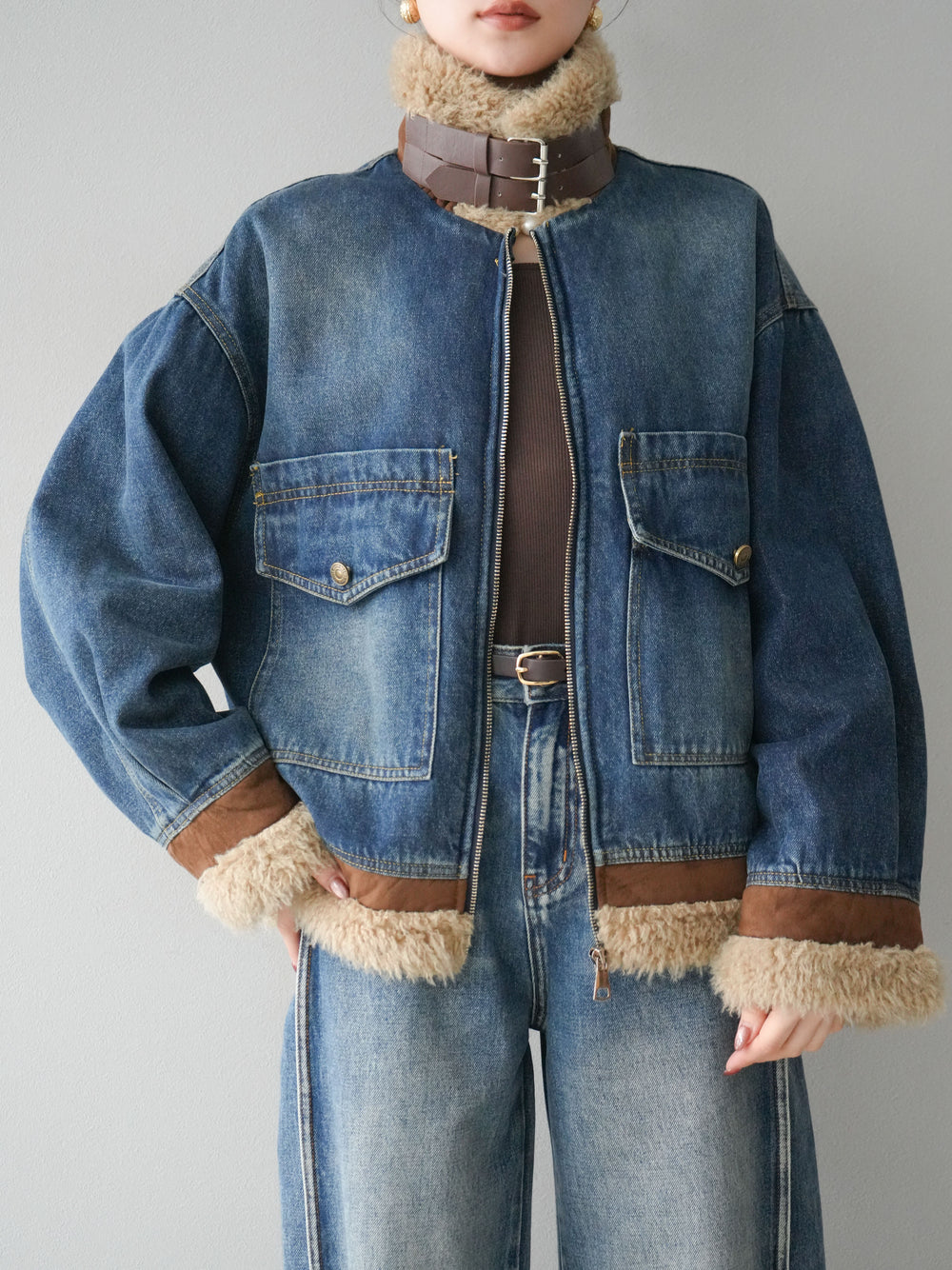 [予約]スタンドカラーファー×デニムジャケット/blue