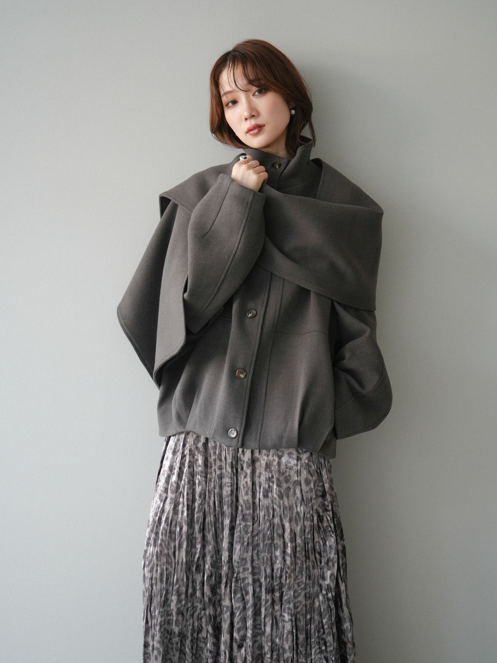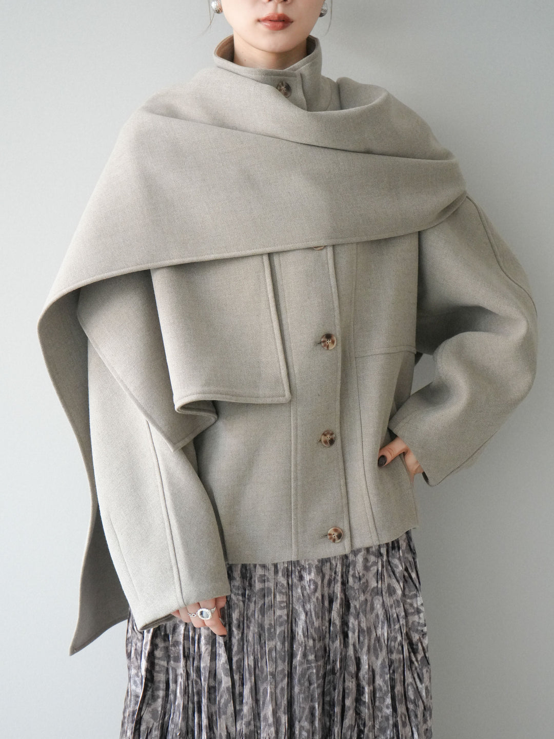 [予約]ストール付きミディアムコート/khaki