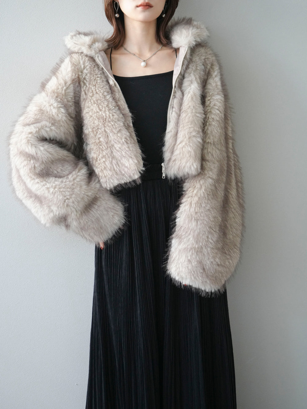 [予約]フェイクファーショートZIPジャケット/beigemix