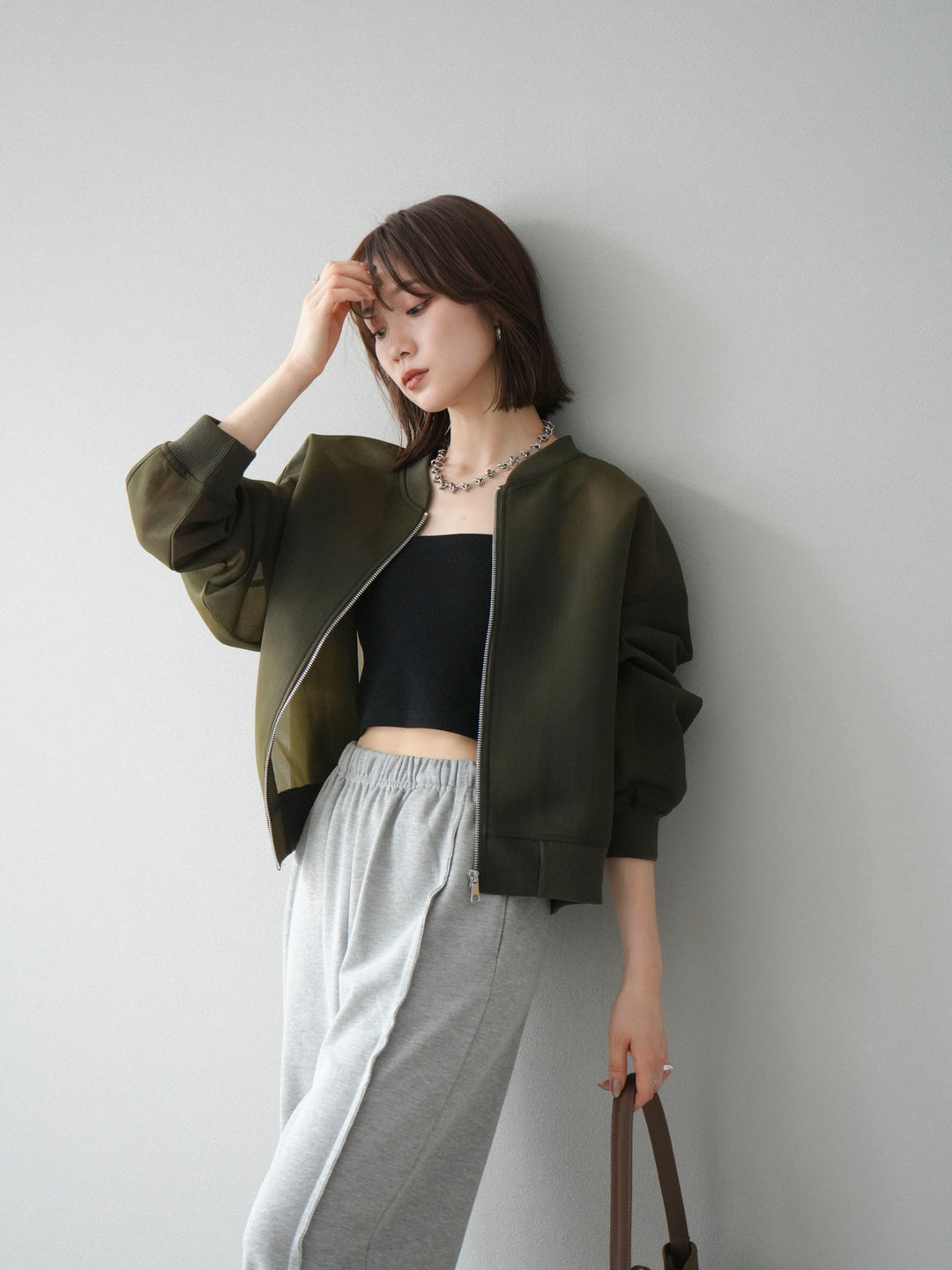 [予約]スリーブレスドロストZIPブルゾン/グレー