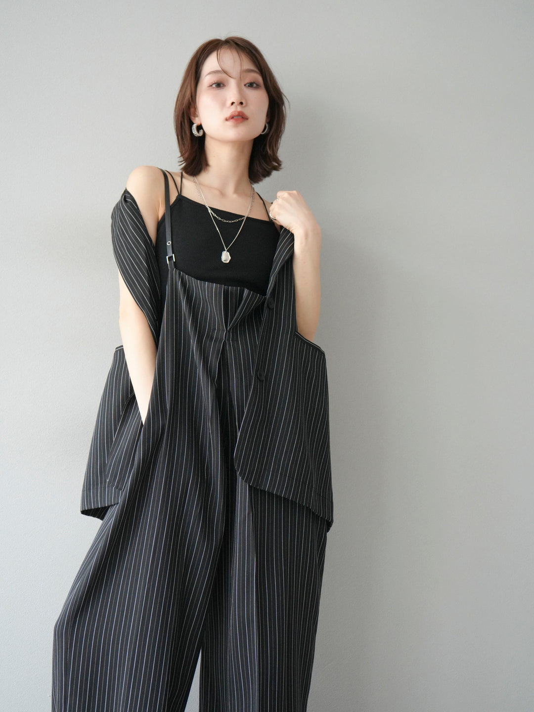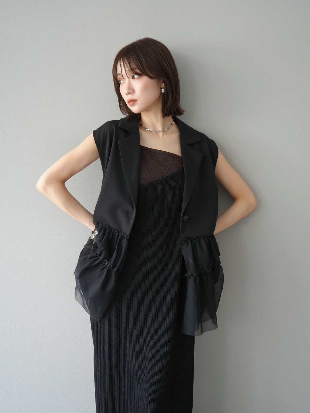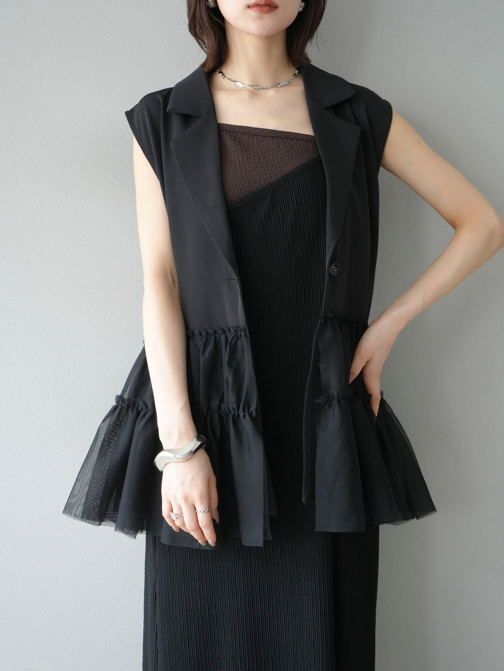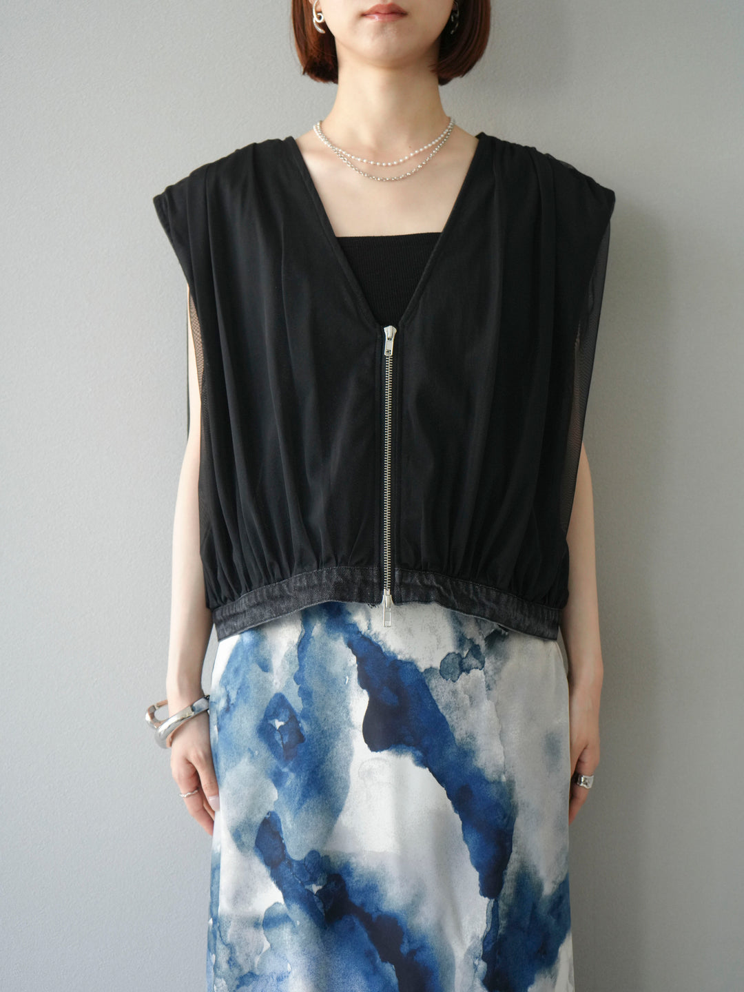 [予約]チュールドッキングデニムダブルZIPベスト/ブラック