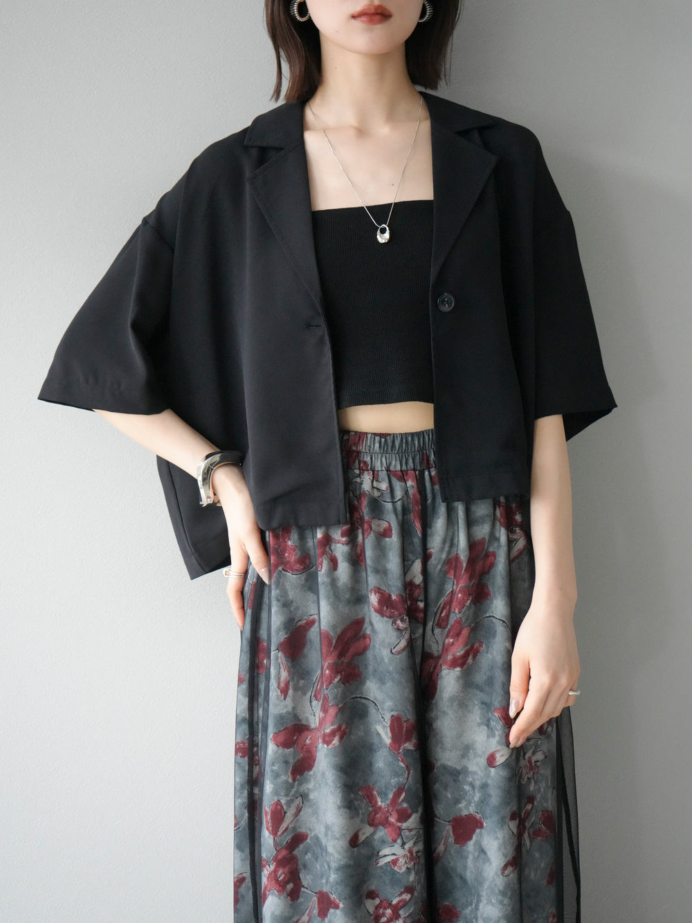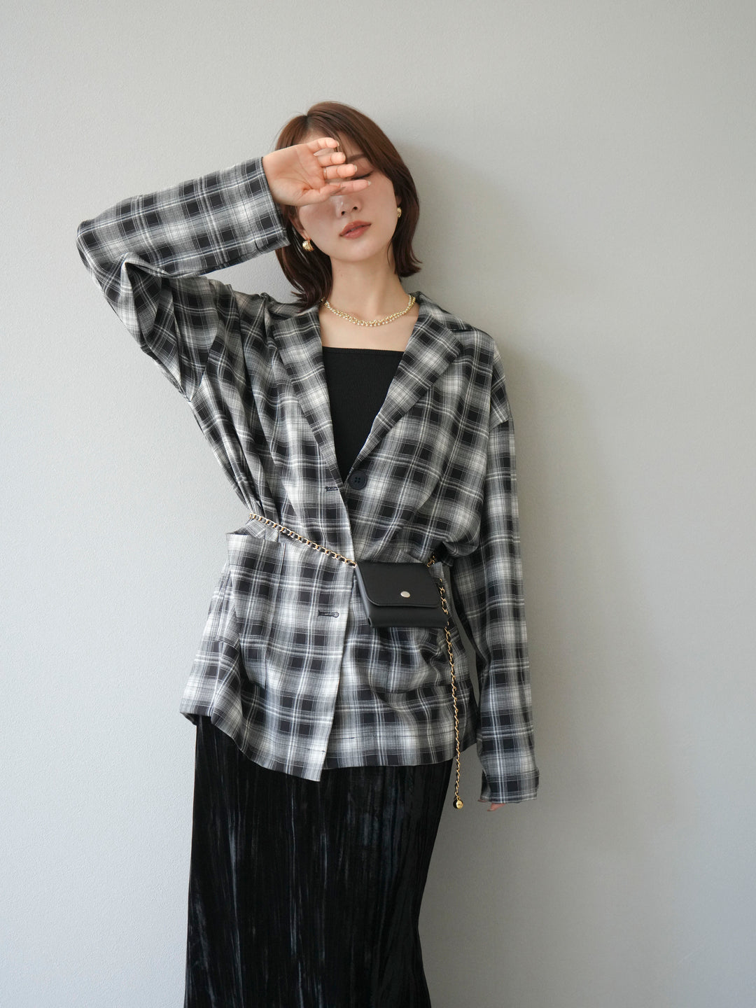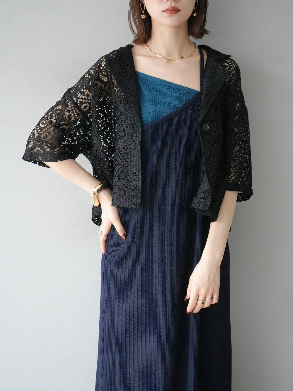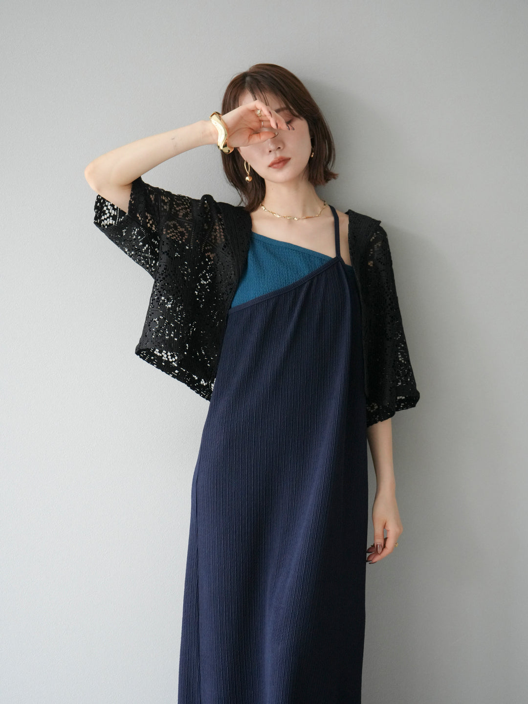 [予約]チュールドッキングデニムダブルZIPベスト/ブラック