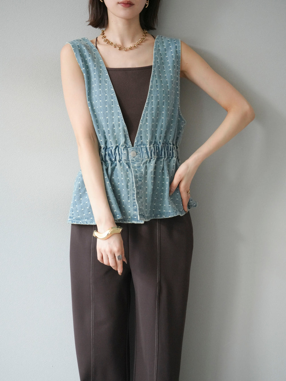 [予約]ジャガードデニム2WAYビスチェ/ライトブルー