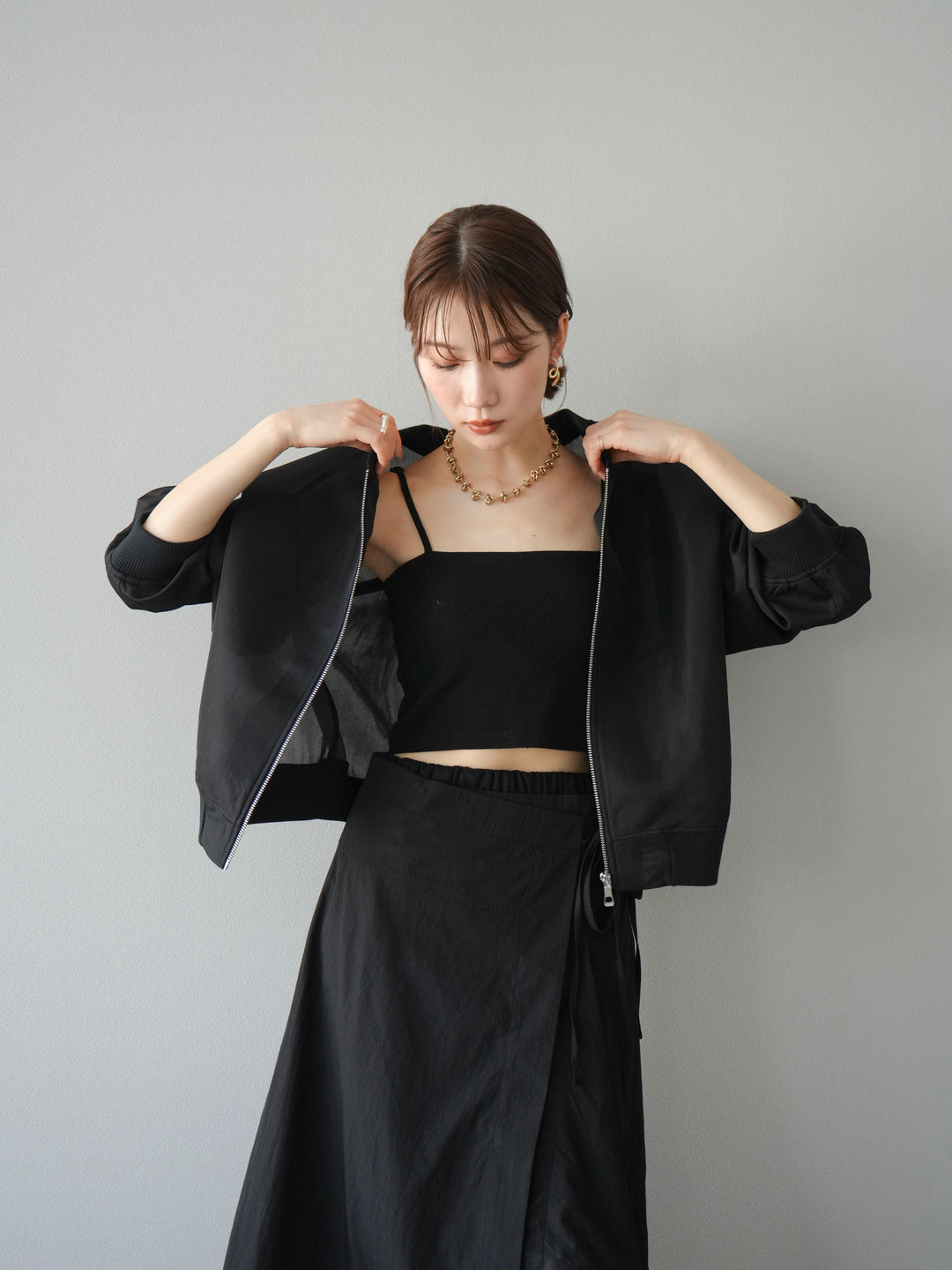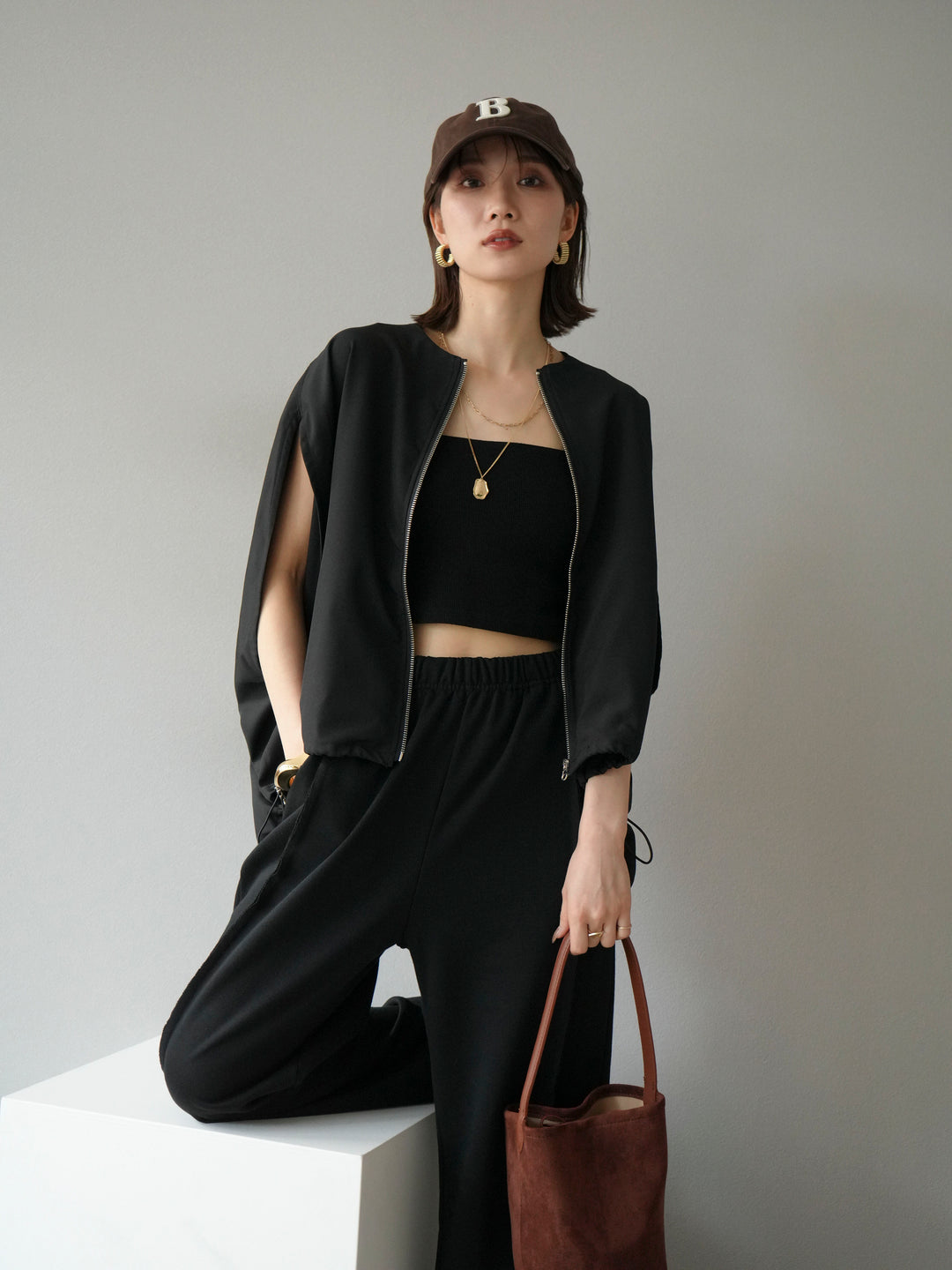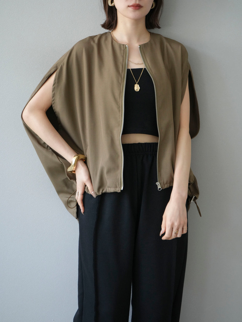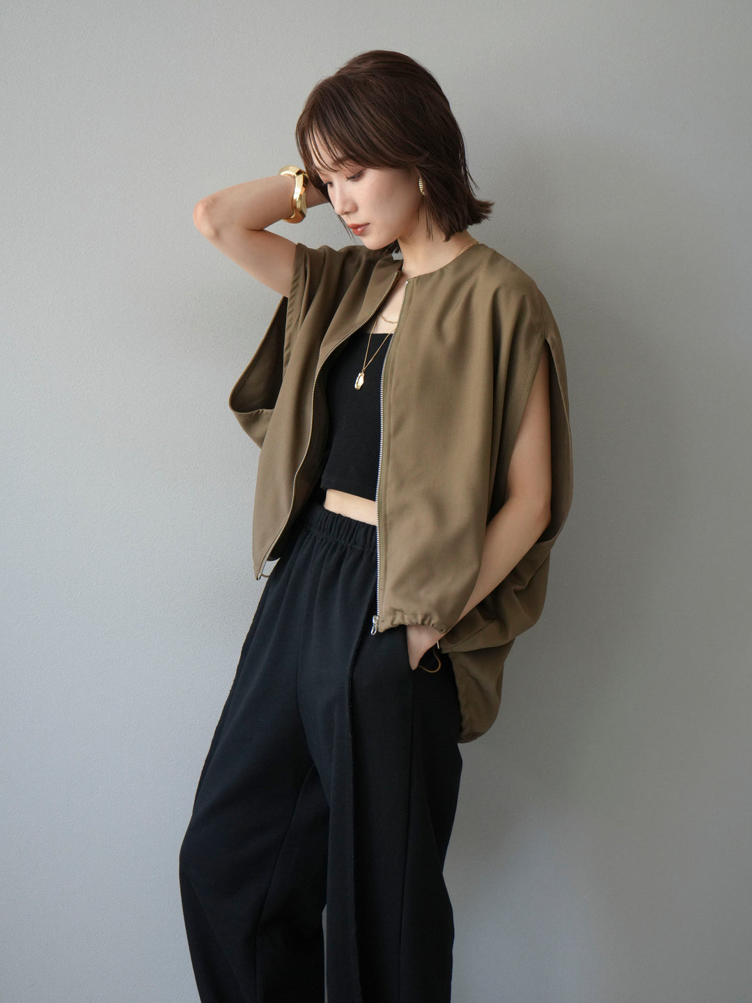 [予約]スリーブレスドロストZIPブルゾン/ブラック