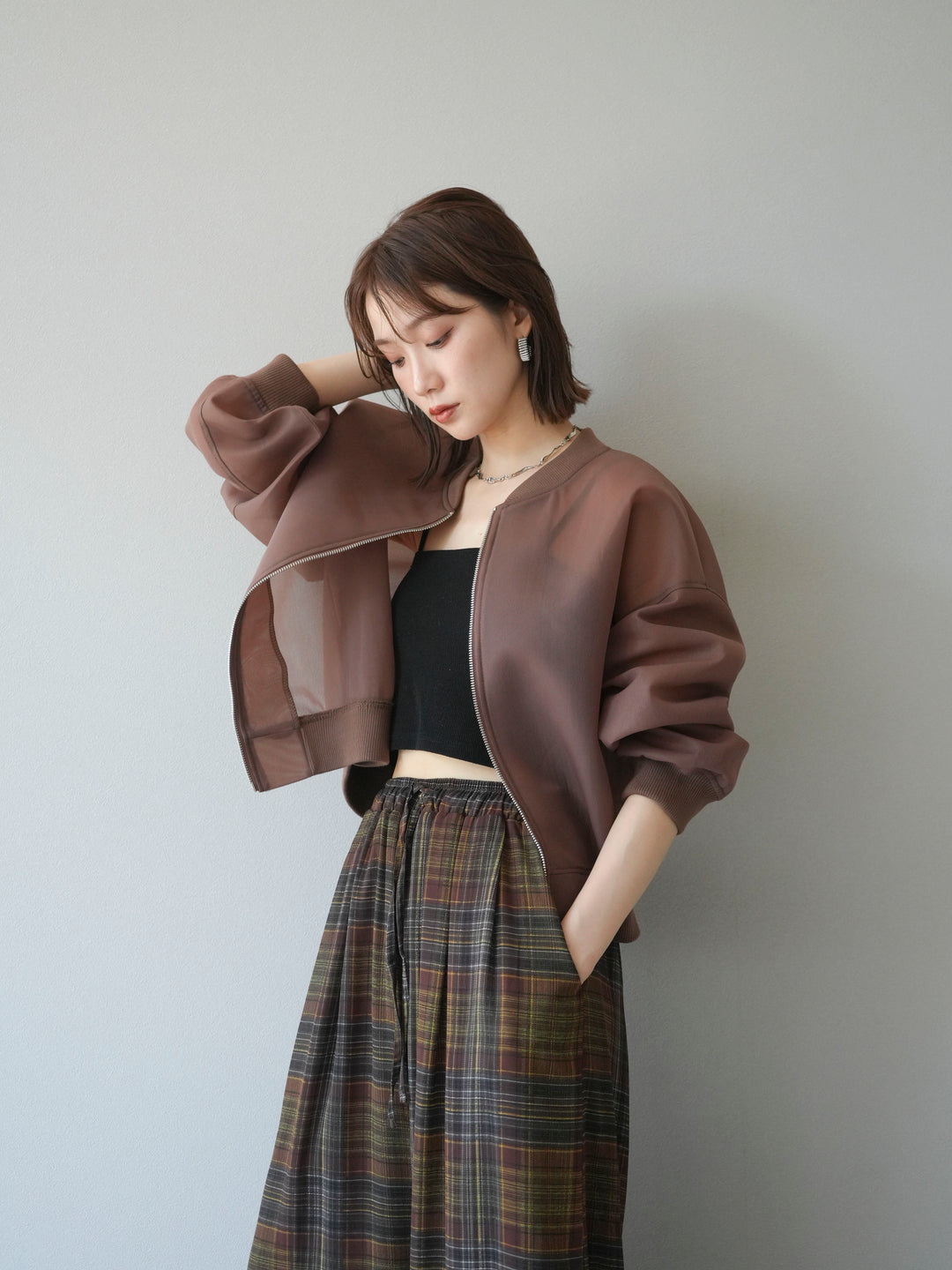 [予約]スリーブレスドロストZIPブルゾン/ブラウン