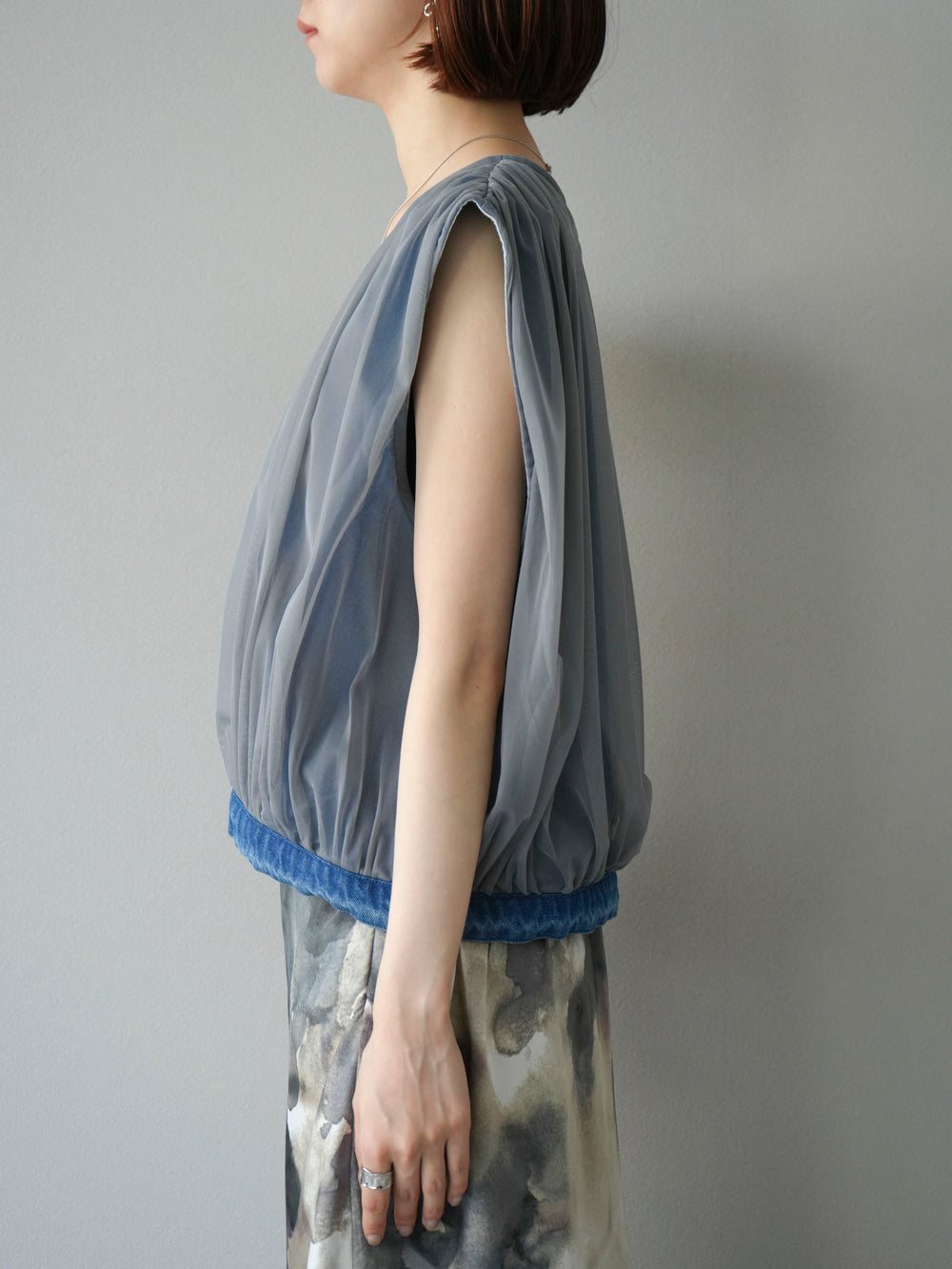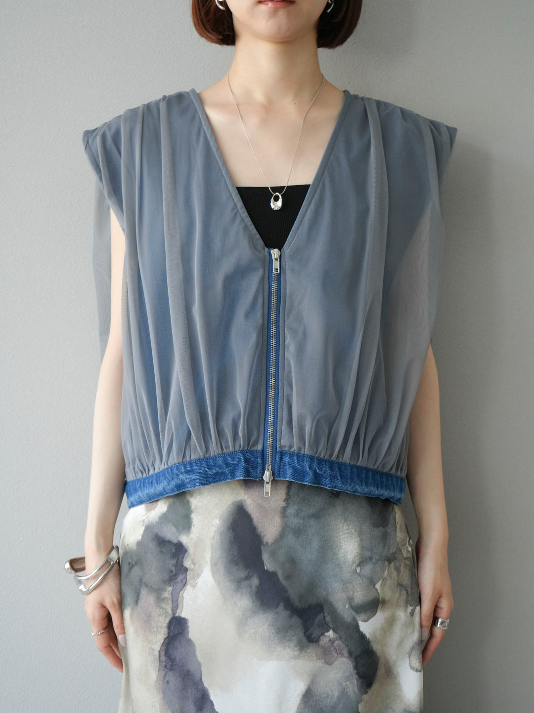 [予約]チュールドッキングデニムダブルZIPベスト/ブルー