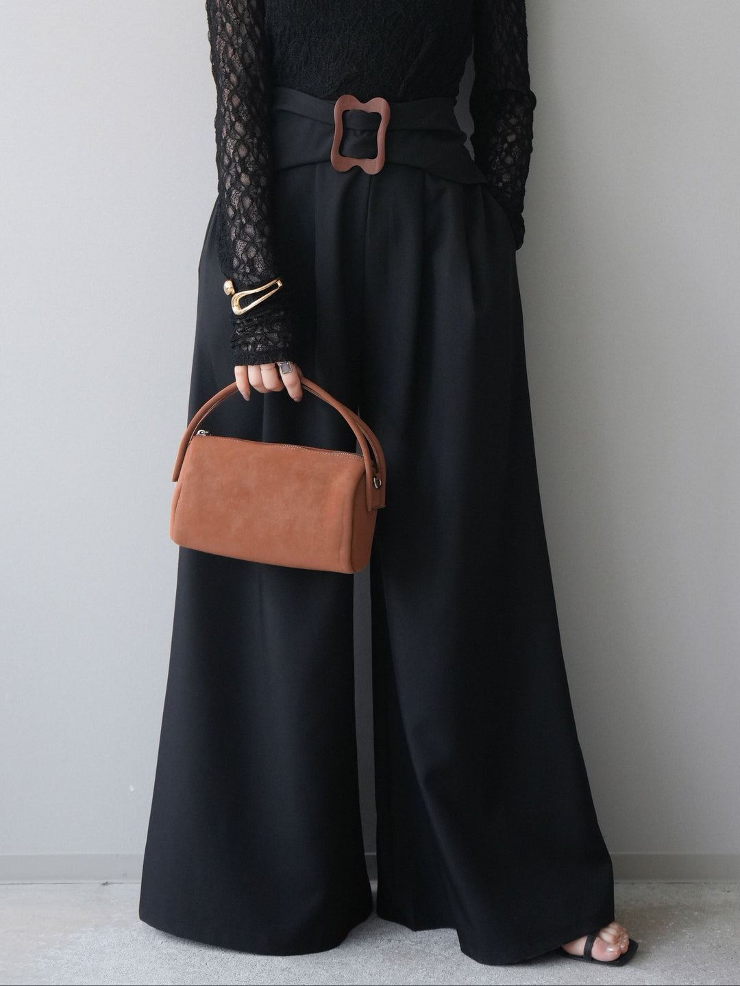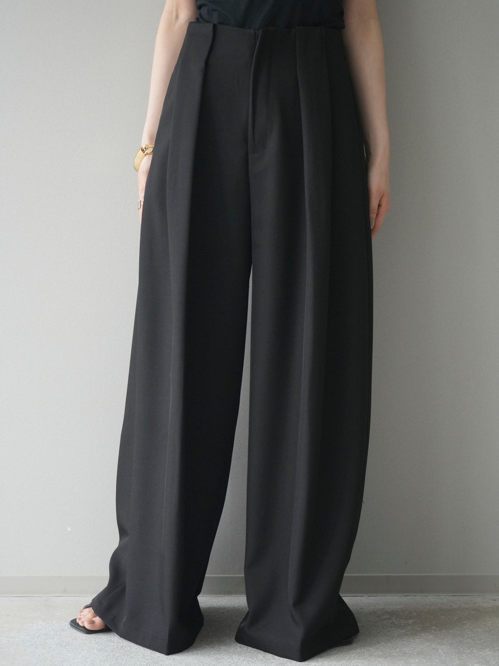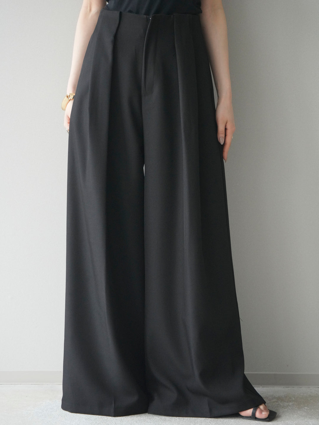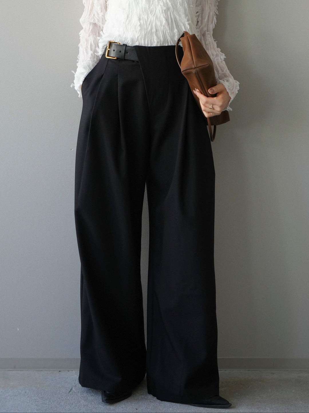 [予約]アシンメトリーベルトタックワイドパンツ/black