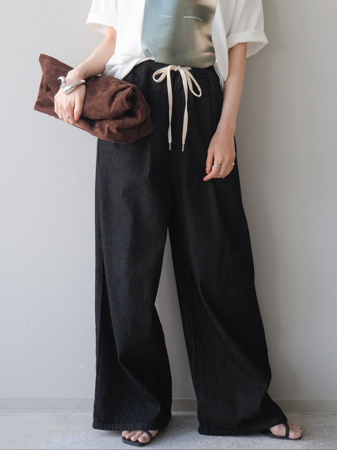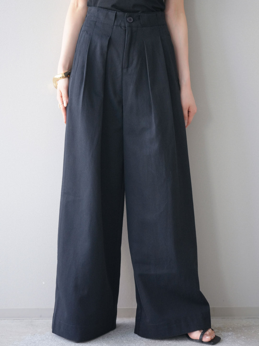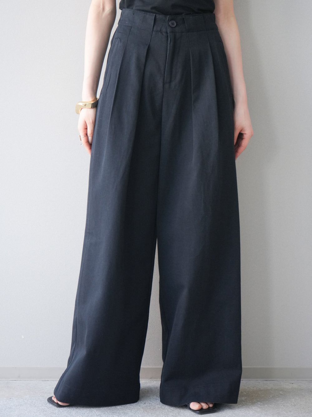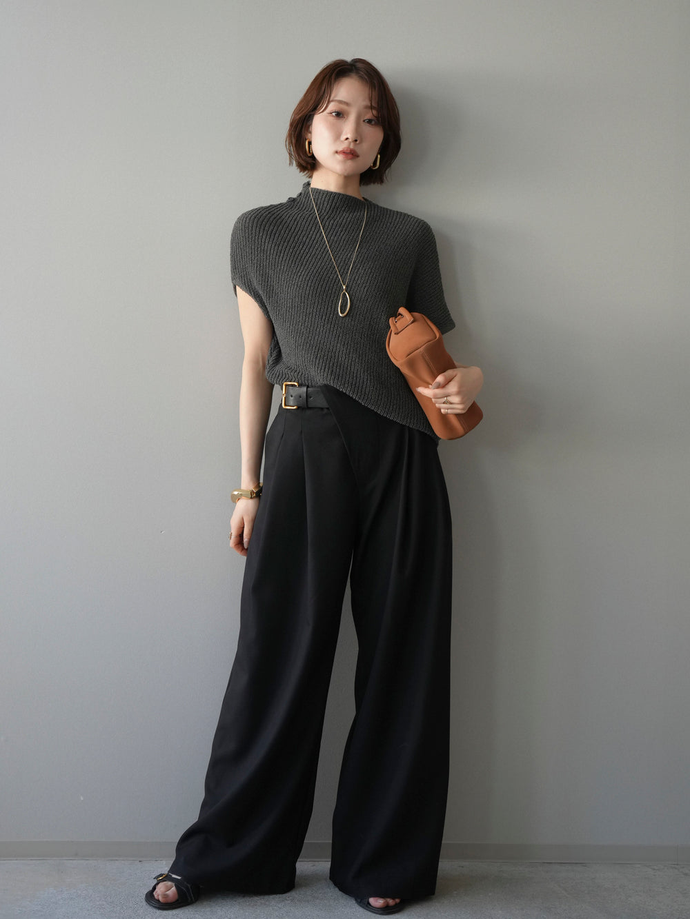 [予約]アシンメトリーベルトタックワイドパンツ/black