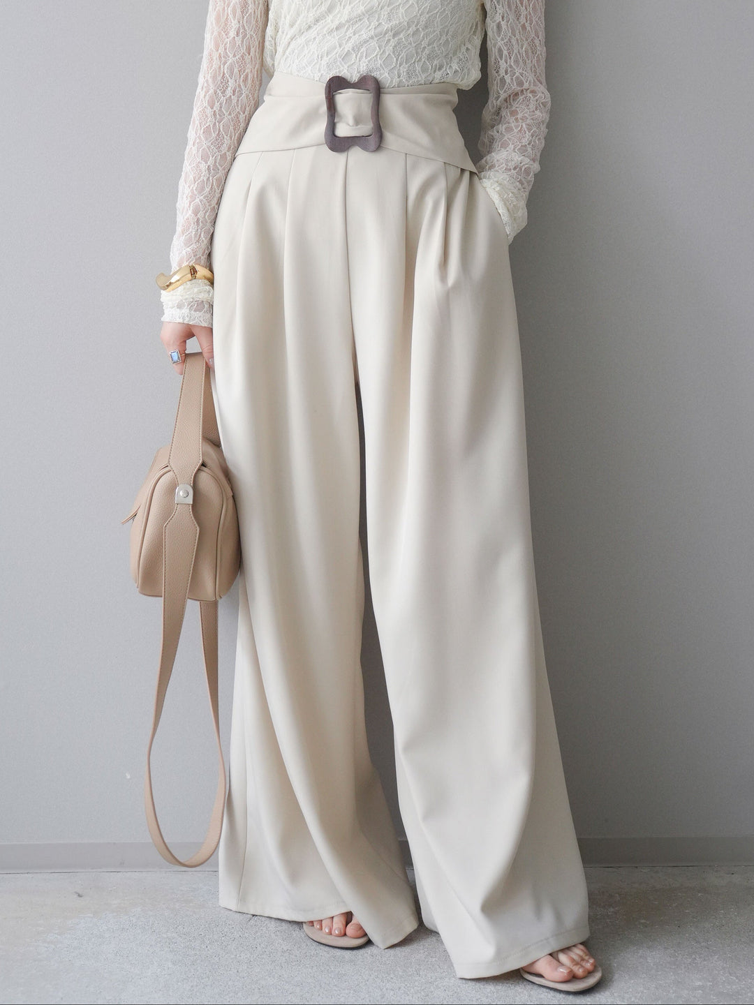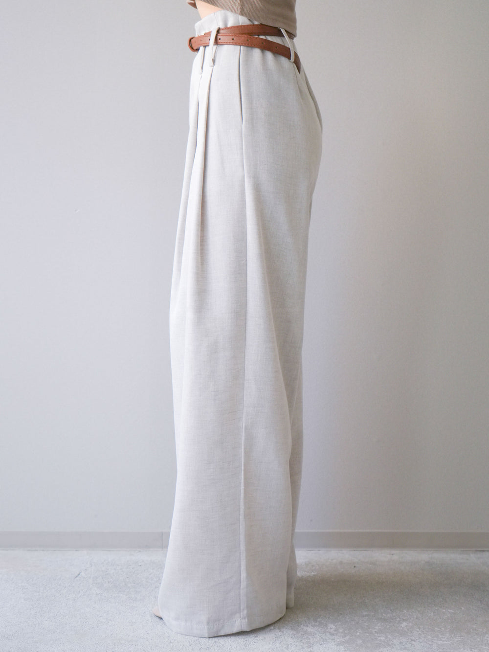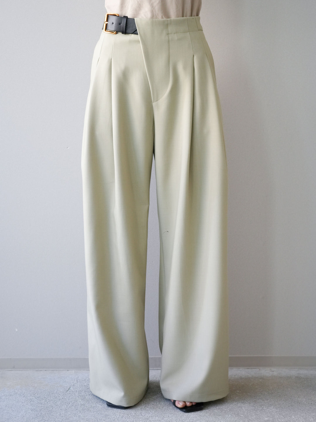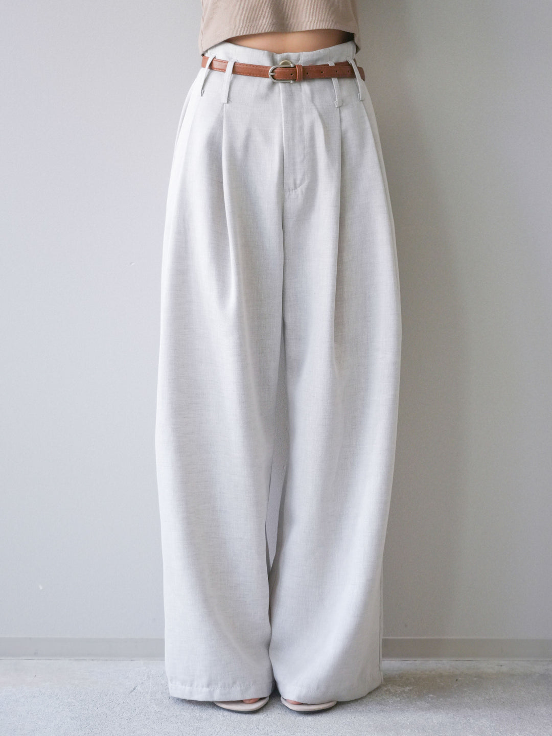 [予約]アシンメトリーベルトタックワイドパンツ/beige