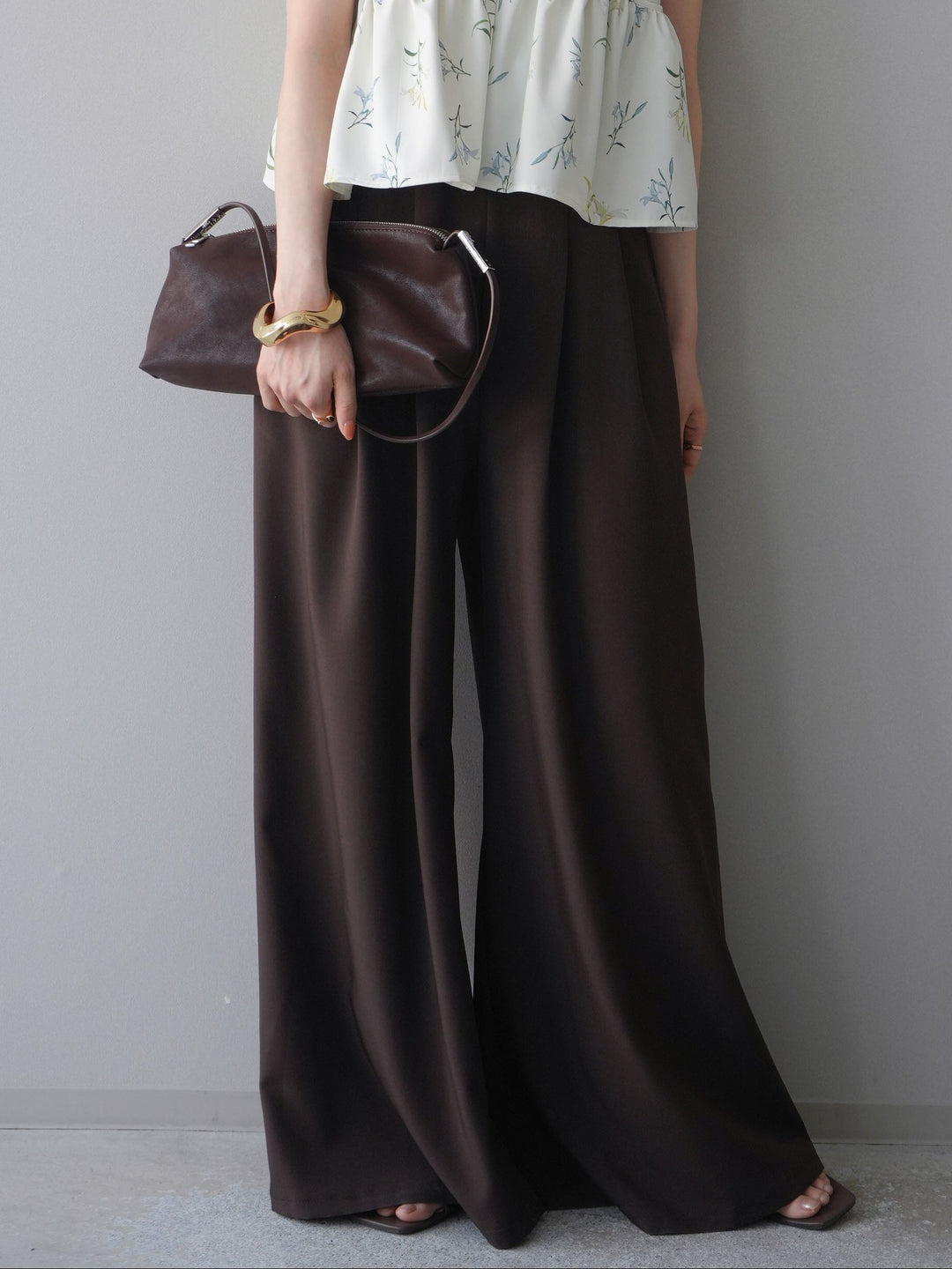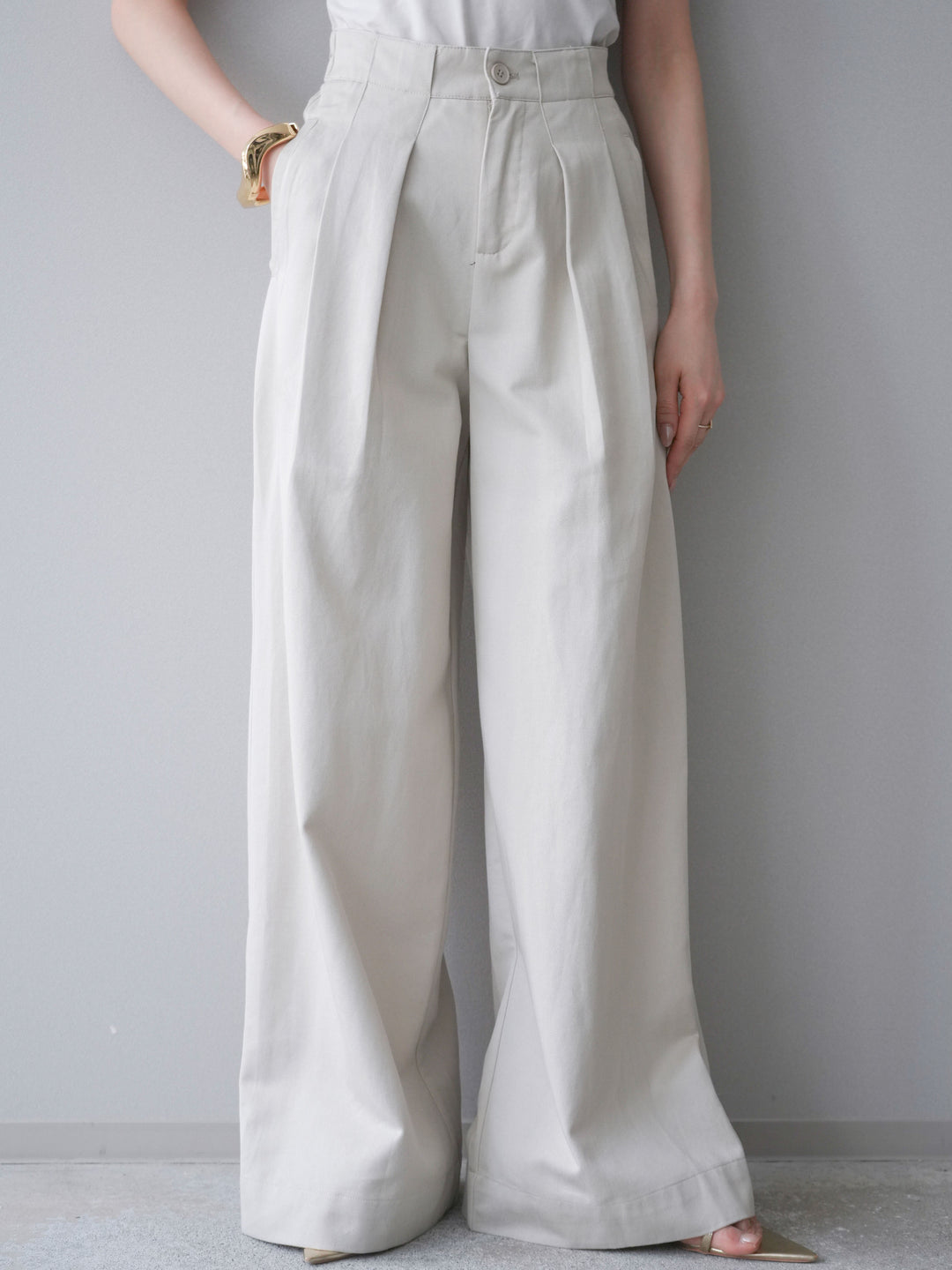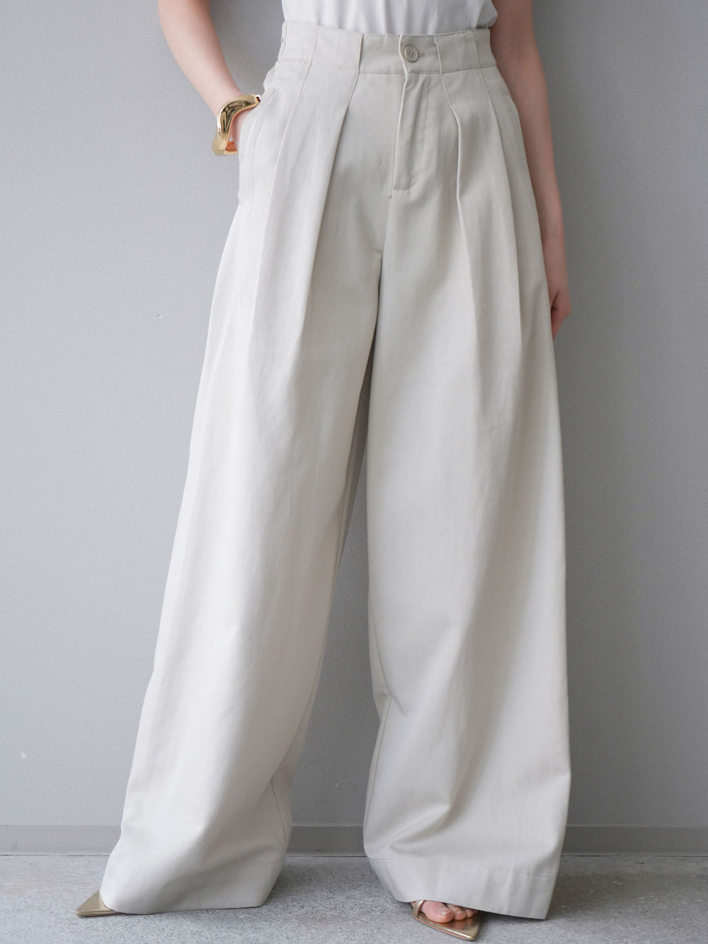 [予約]アシンメトリーベルトタックワイドパンツ/beige