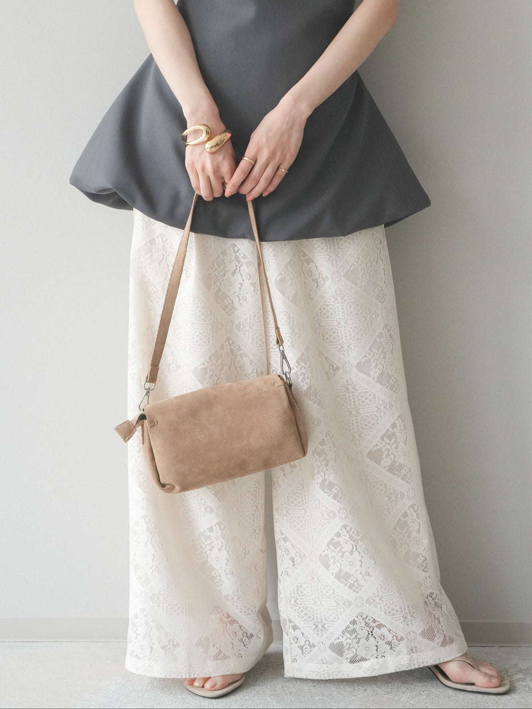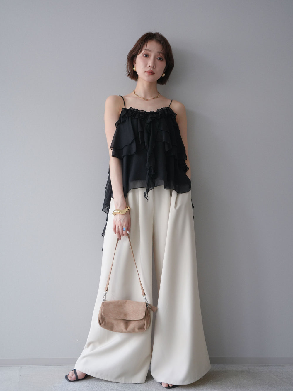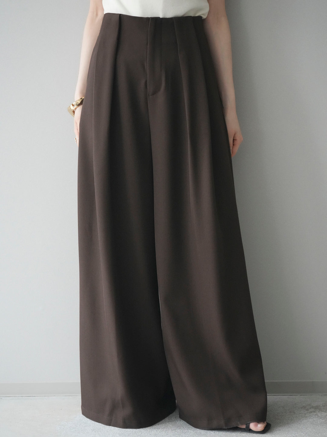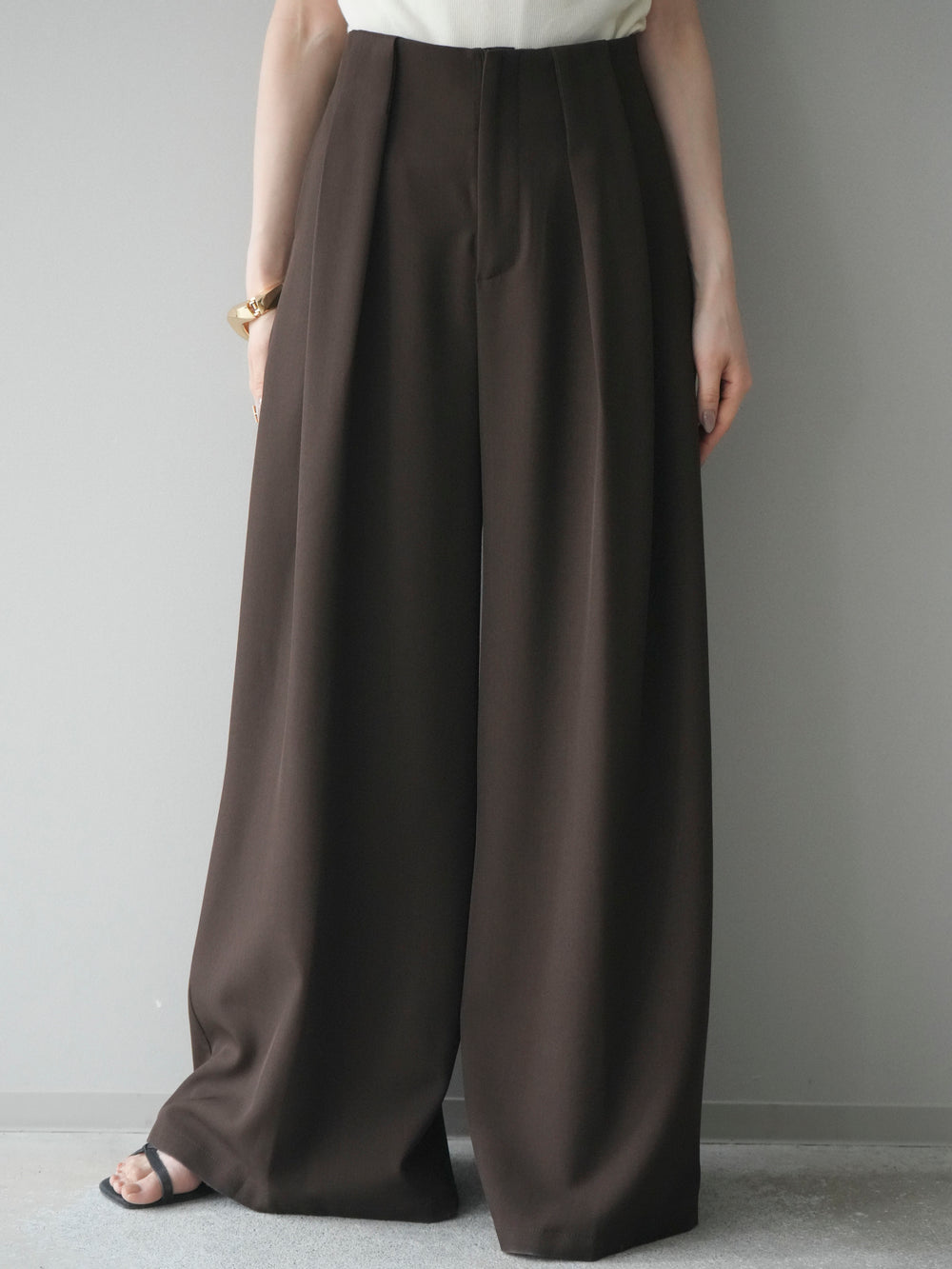 [予約]アシンメトリーベルトタックワイドパンツ/beige