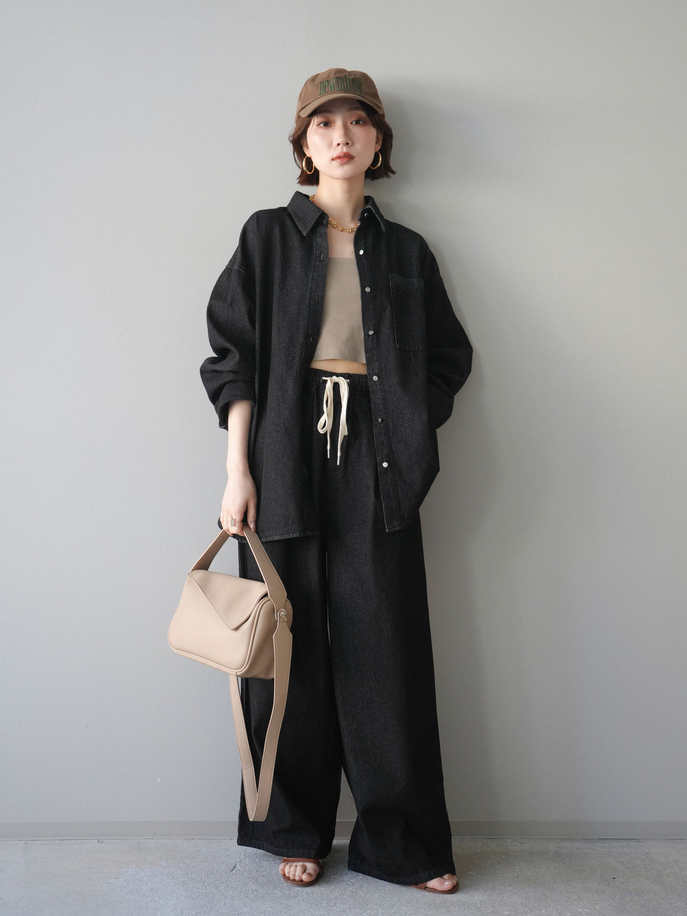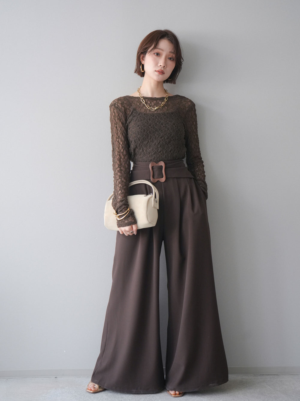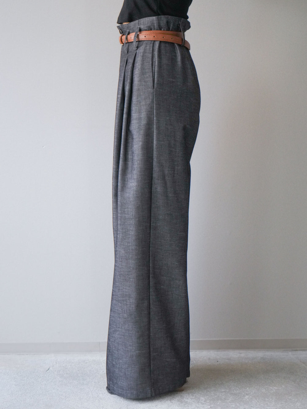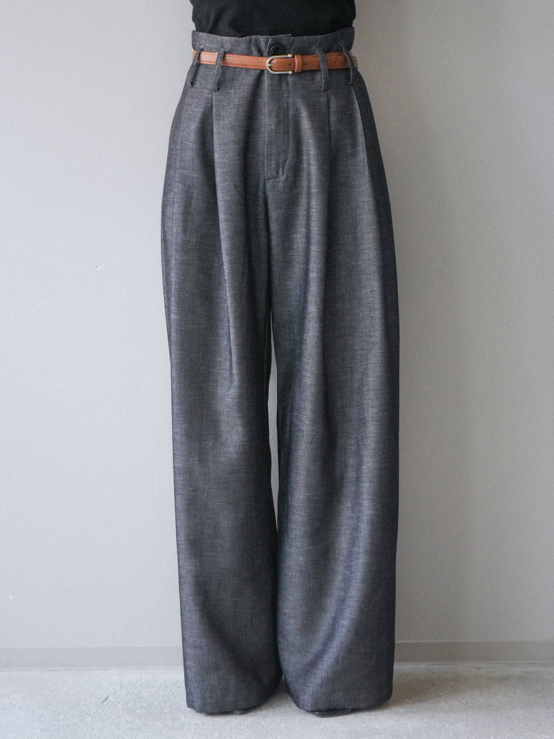 [予約]ベルト付ハイウエストワイドパンツ/charcoal