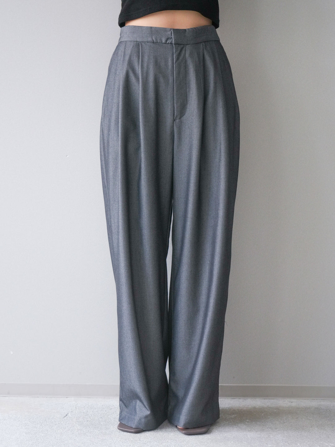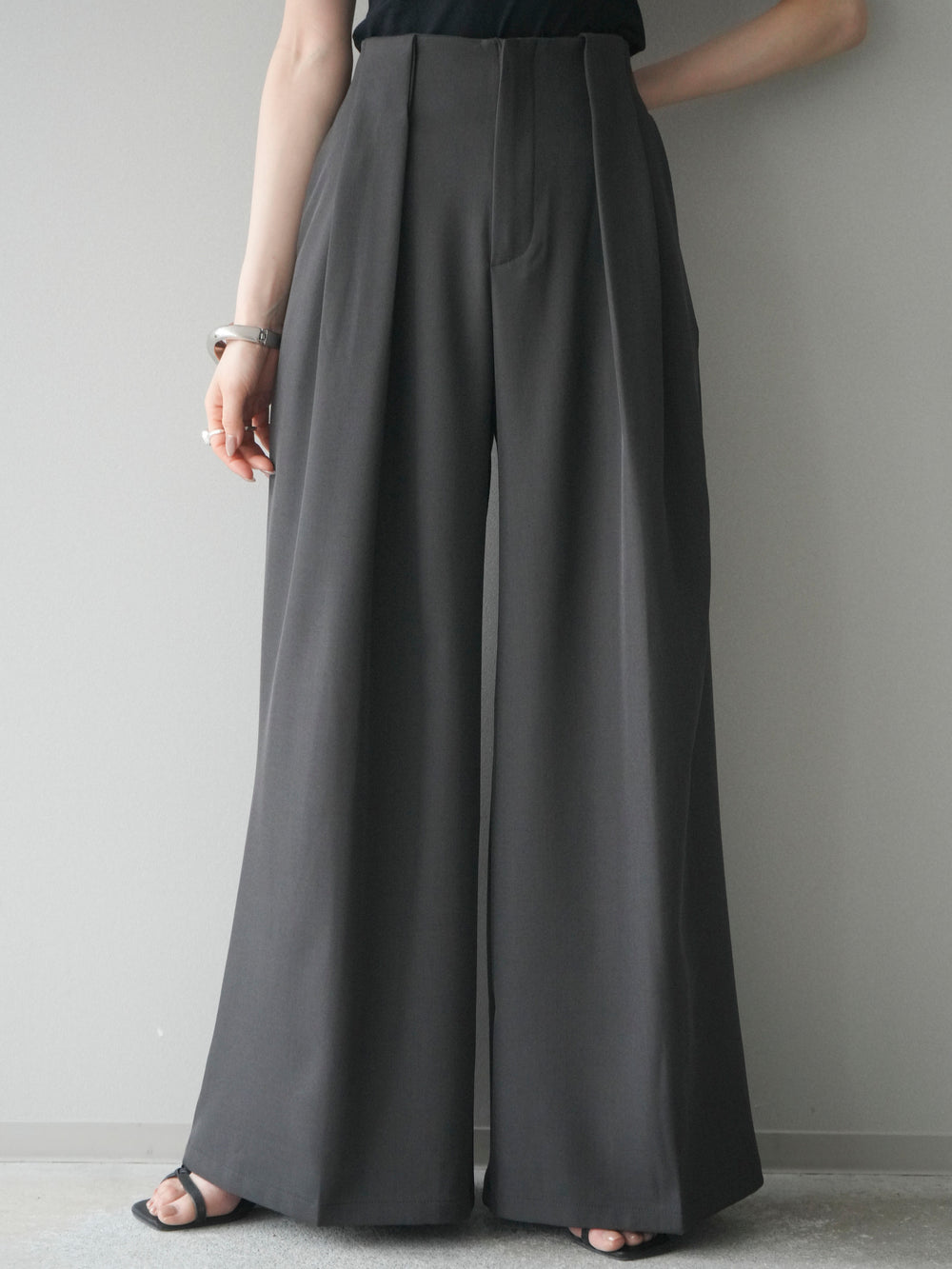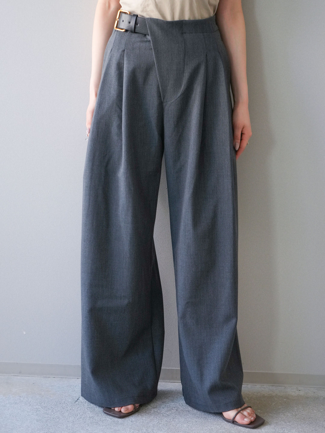 [予約]アシンメトリーベルトタックワイドパンツ/gray