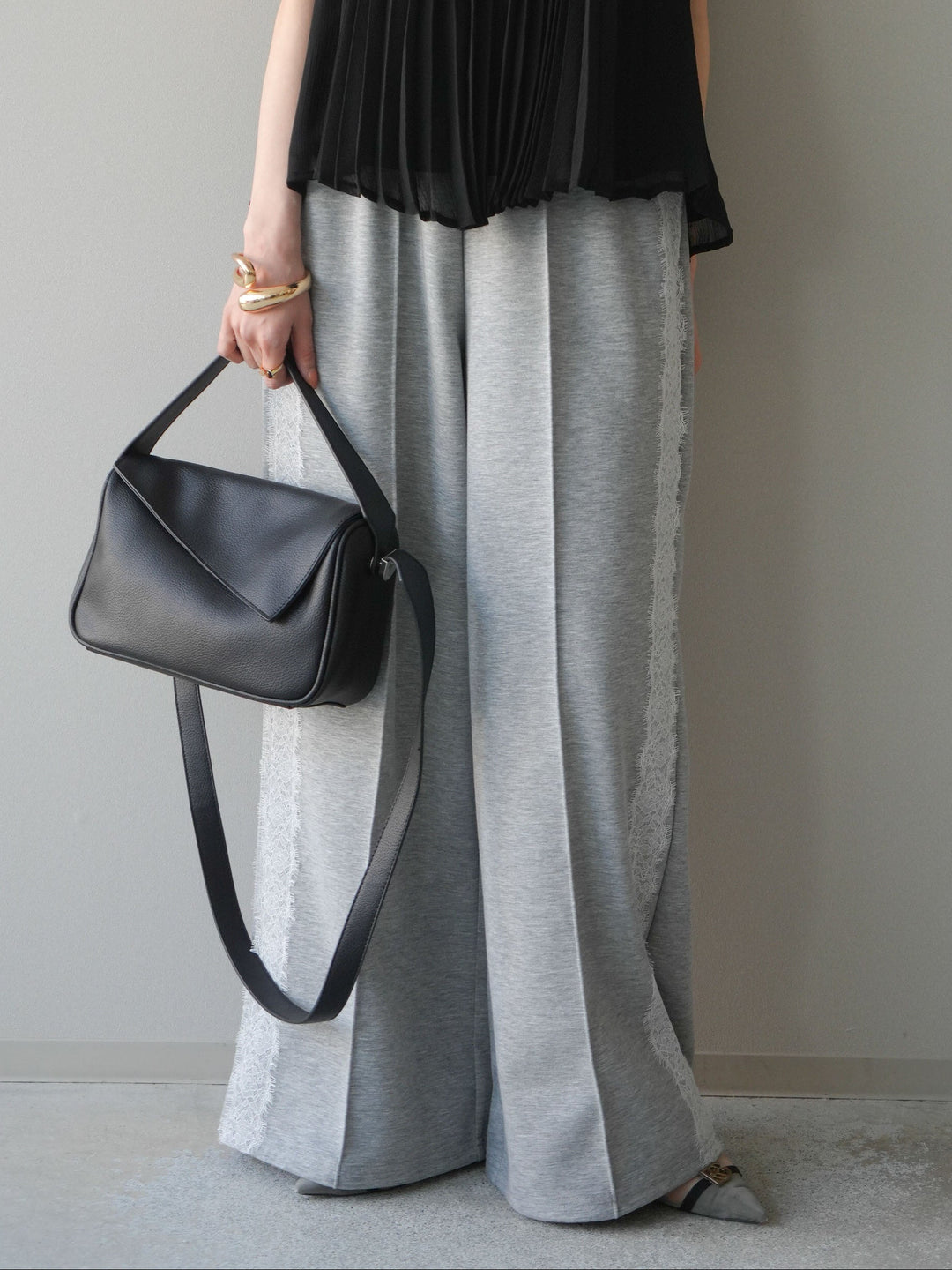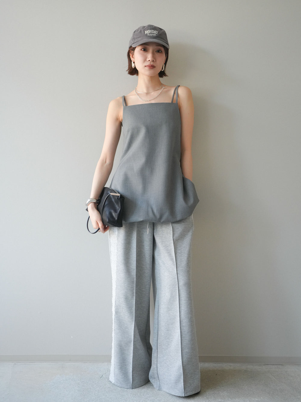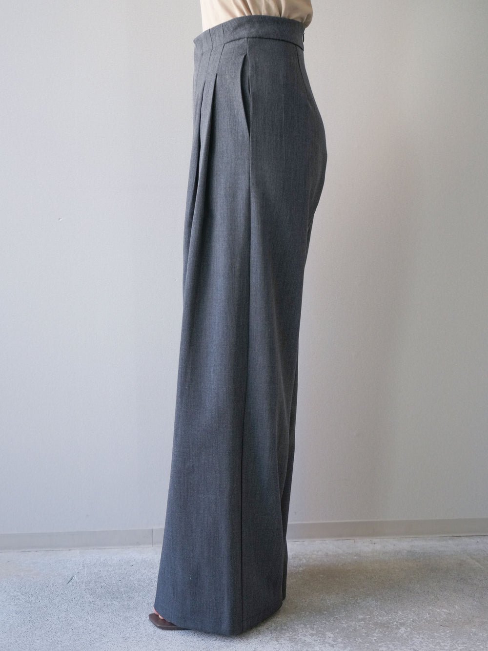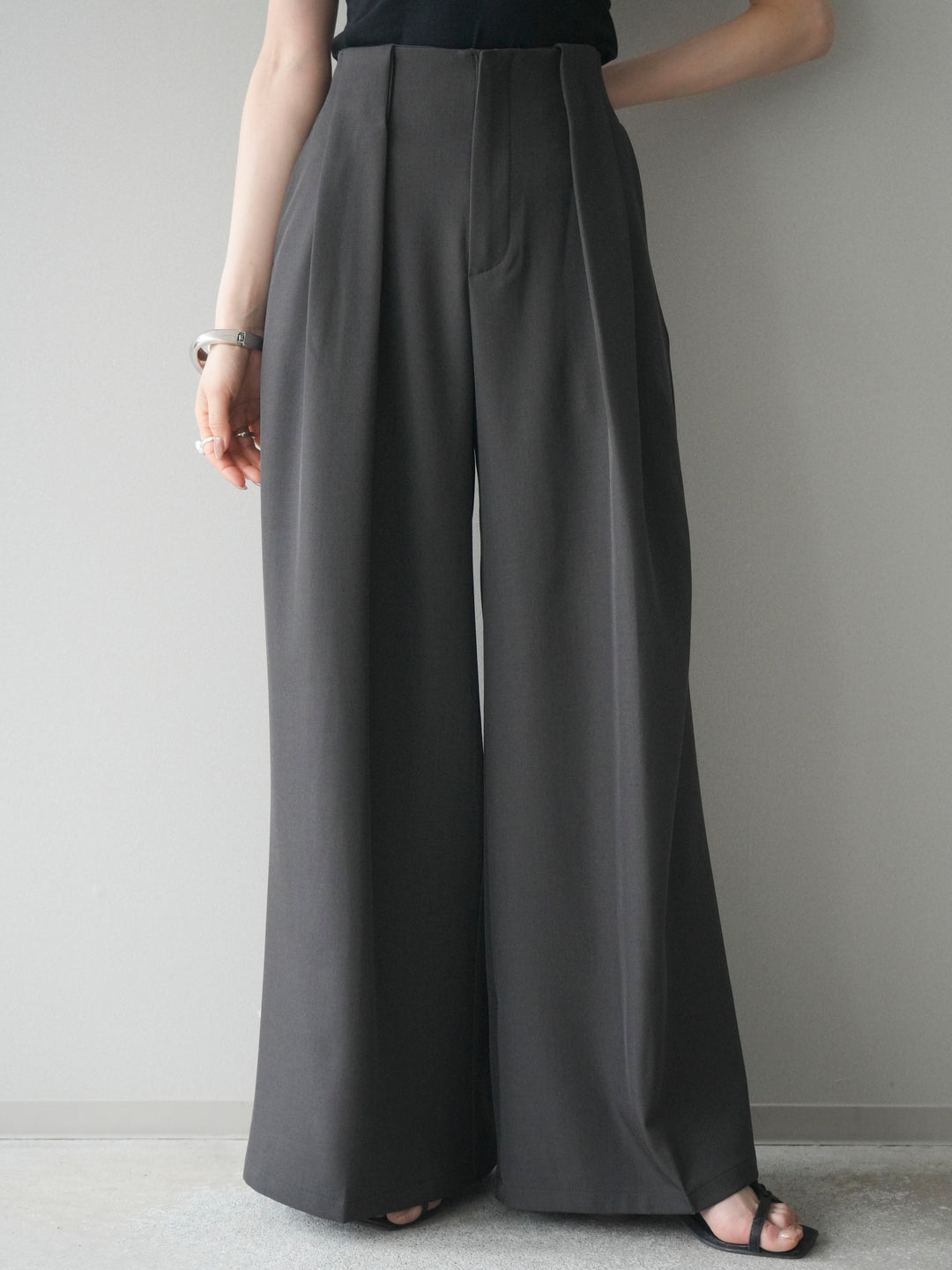 [予約]アシンメトリーベルトタックワイドパンツ/gray
