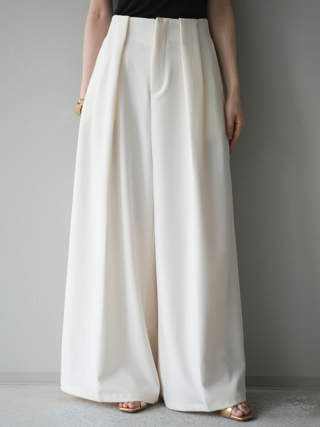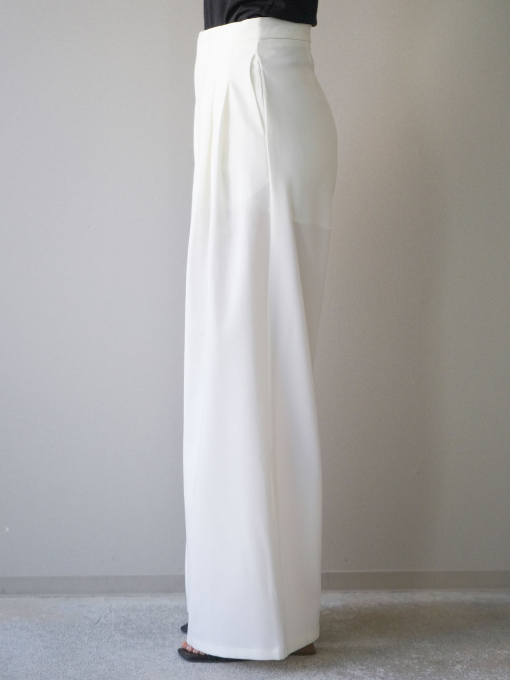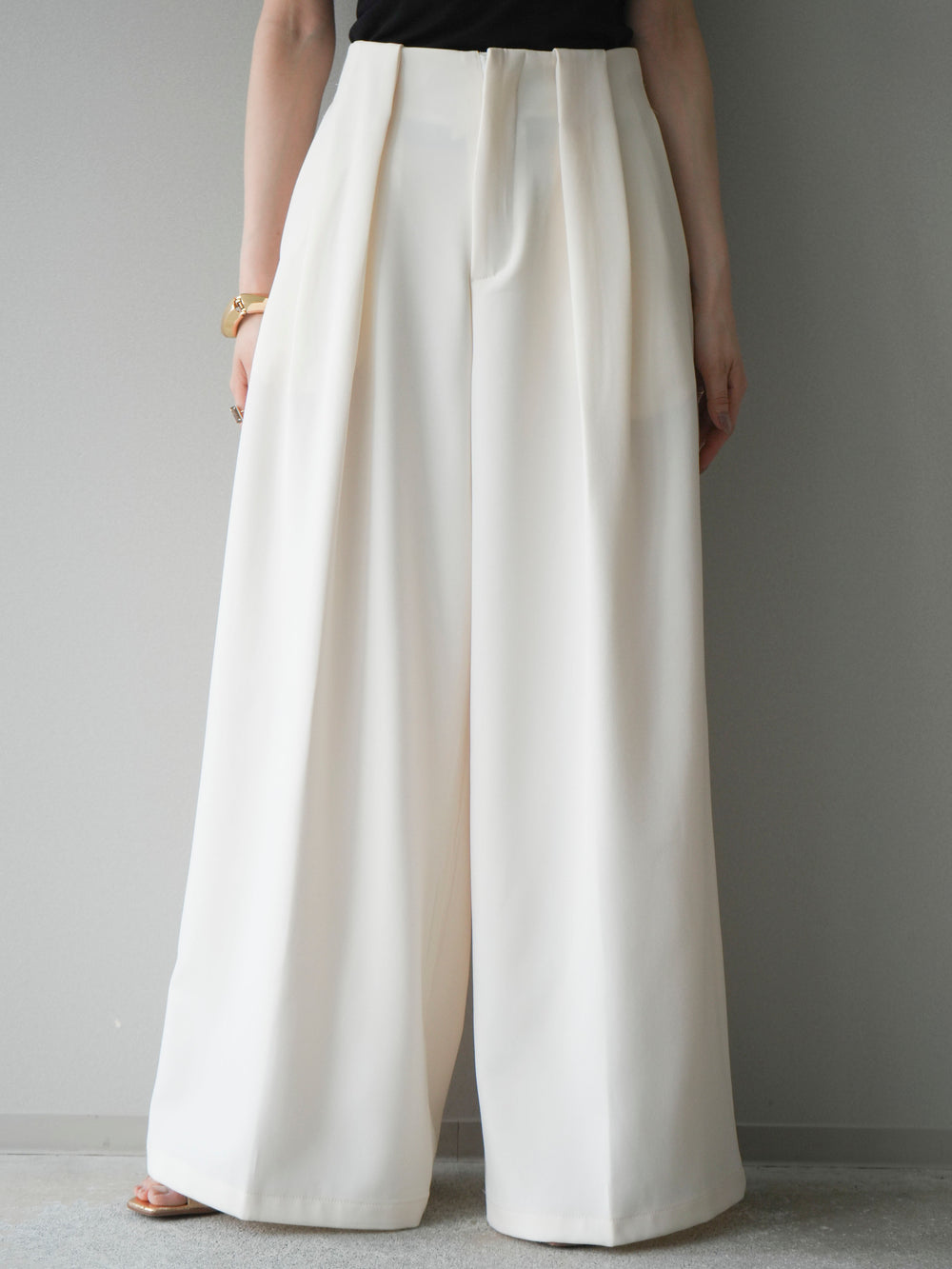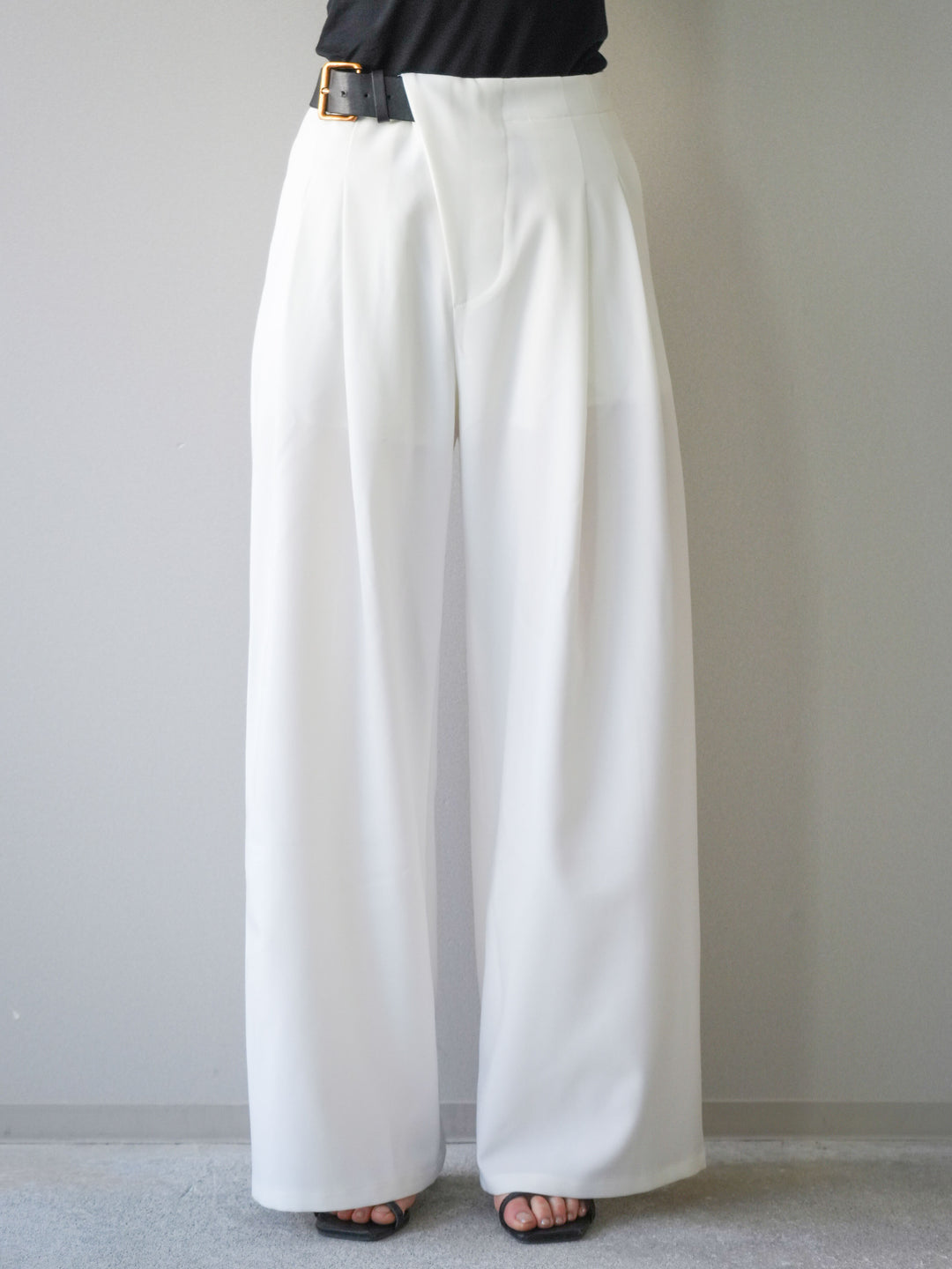 [予約]アシンメトリーベルトタックワイドパンツ/white