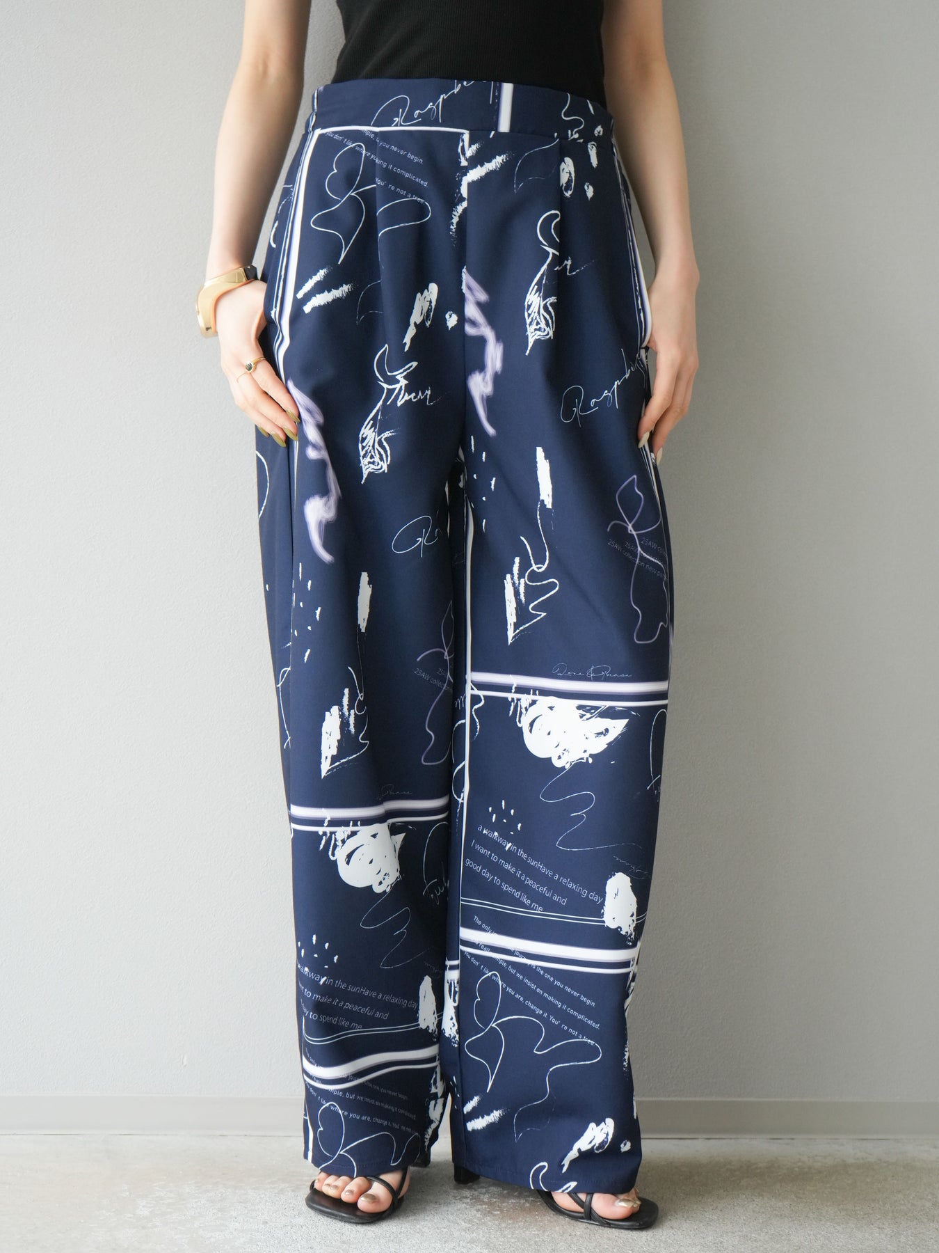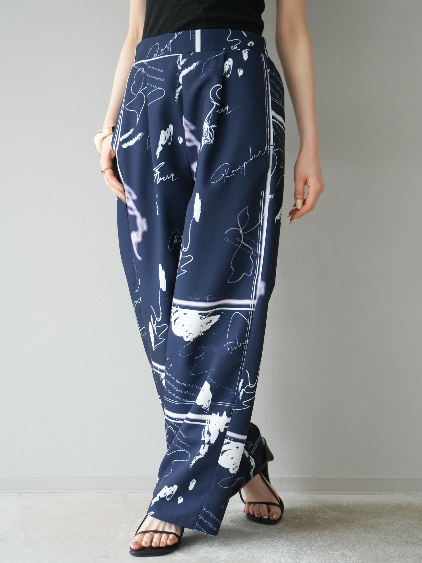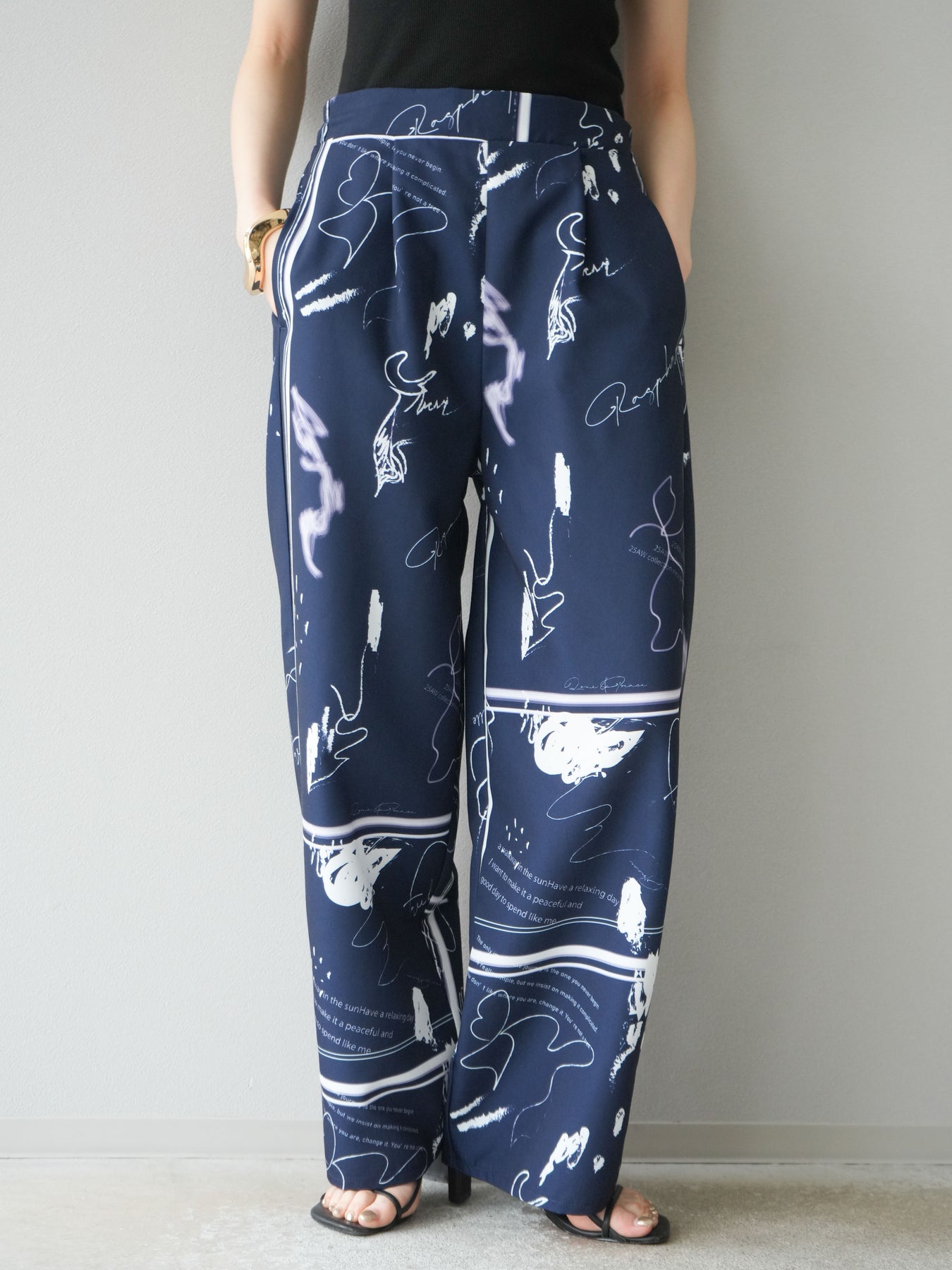 [予約]ペイント柄タックパンツ/ネイビー