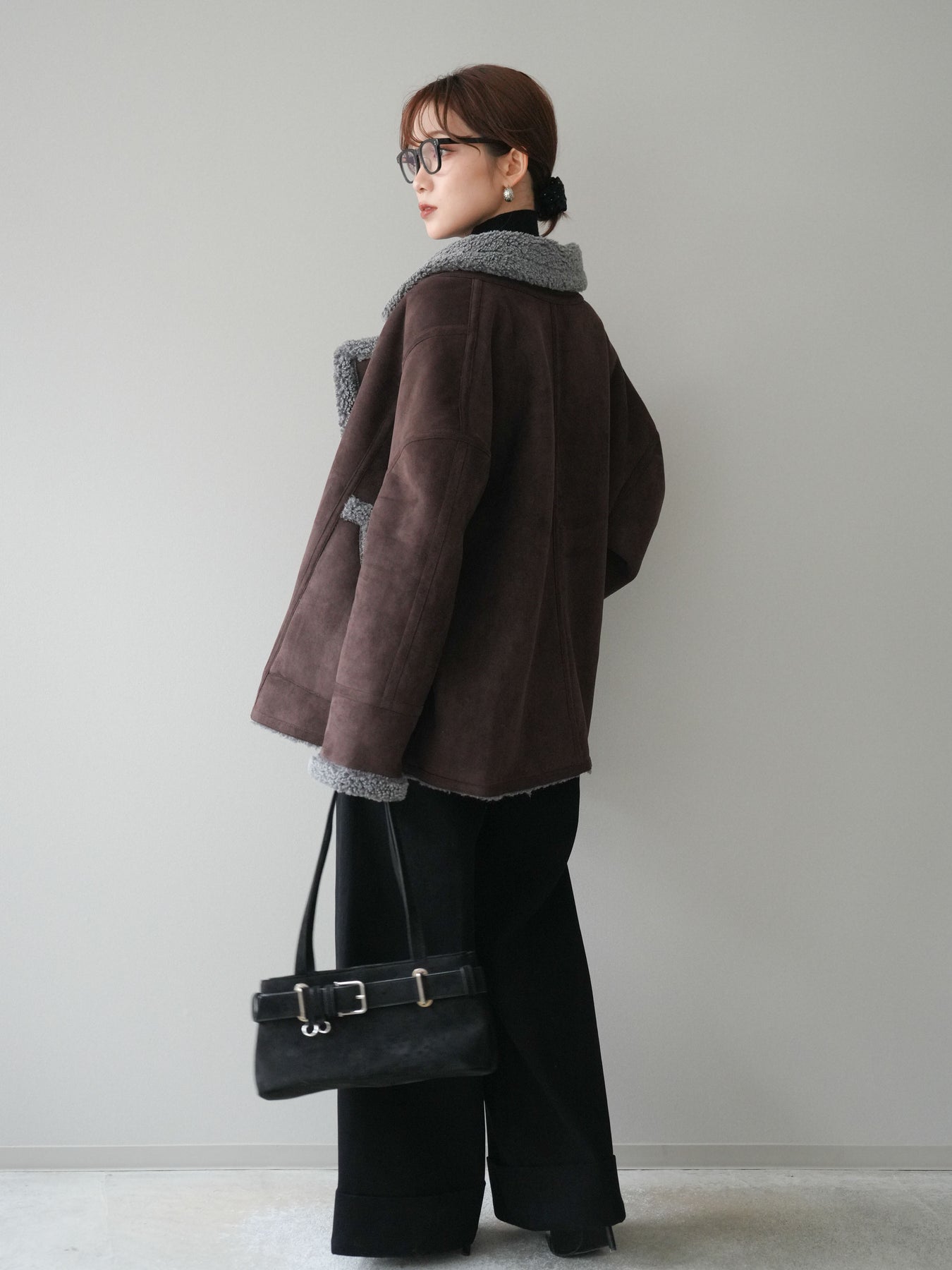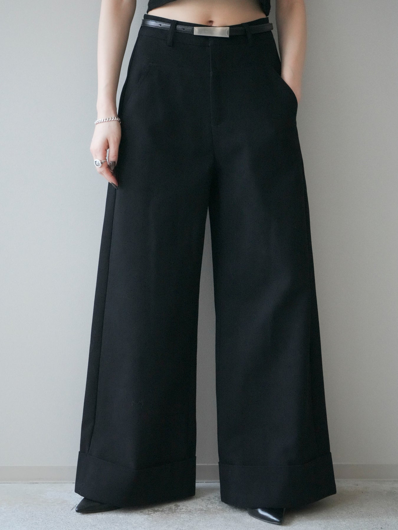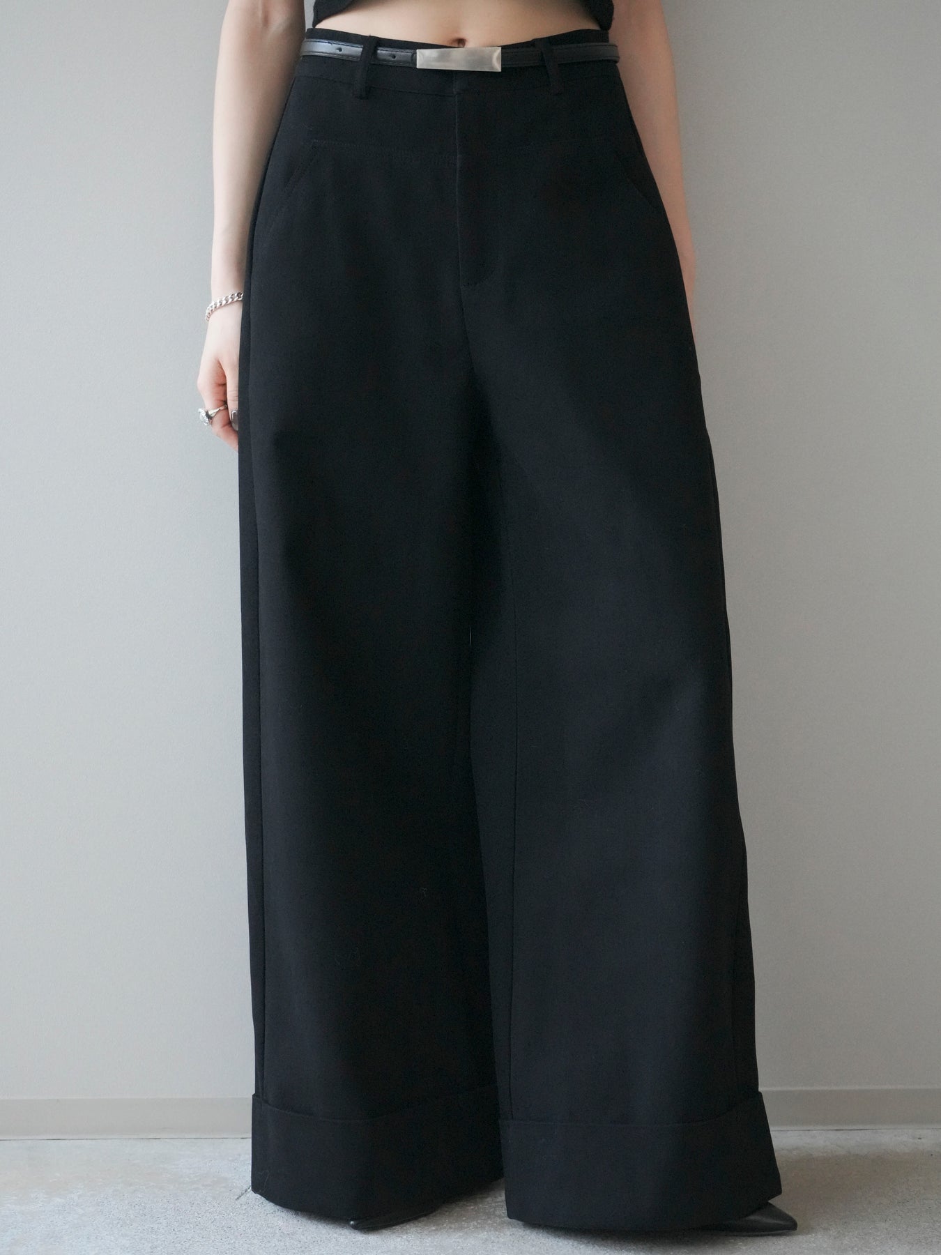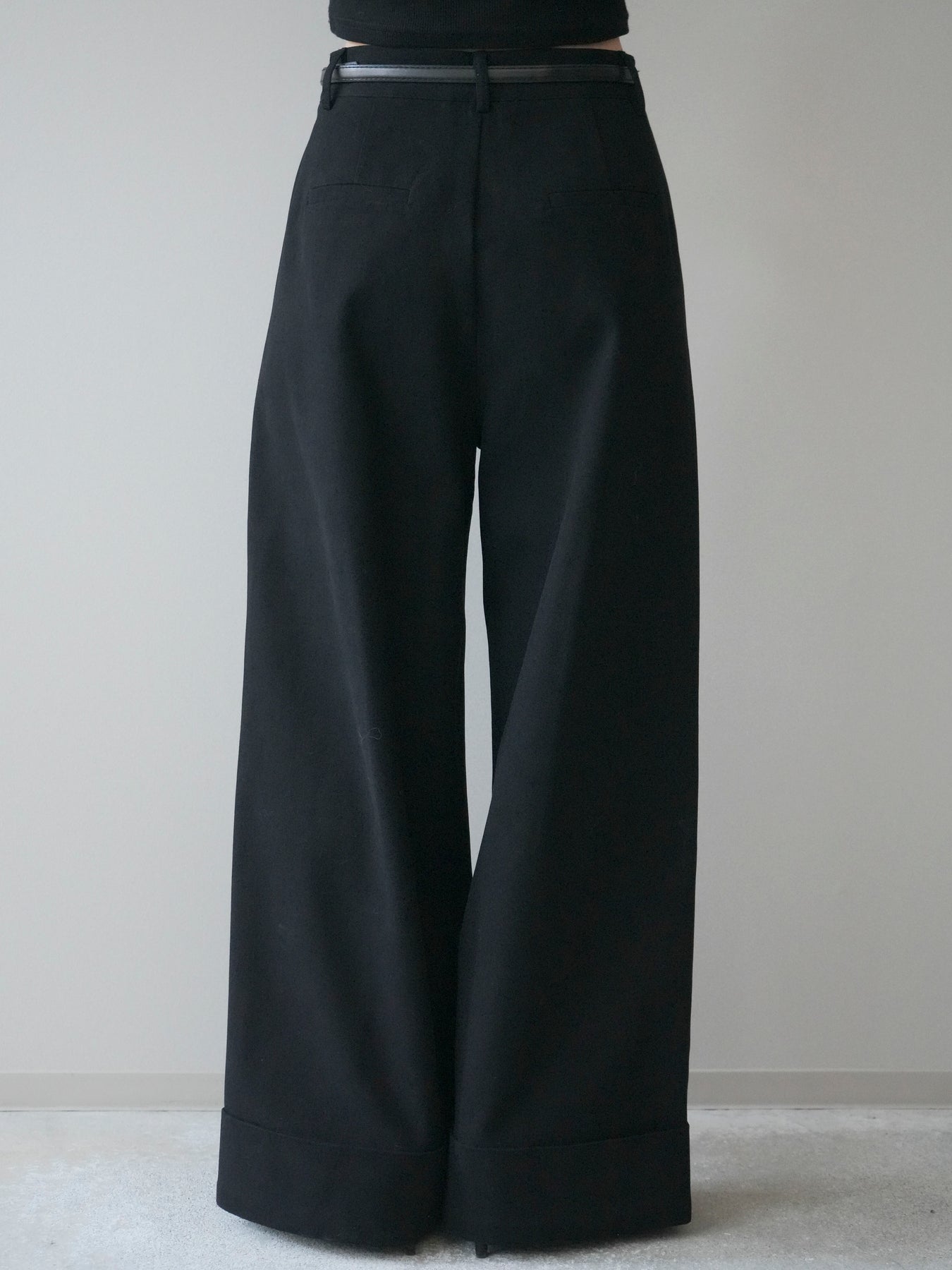[予約]ベルト付き折り返しコットンツイルワイドパンツ/black