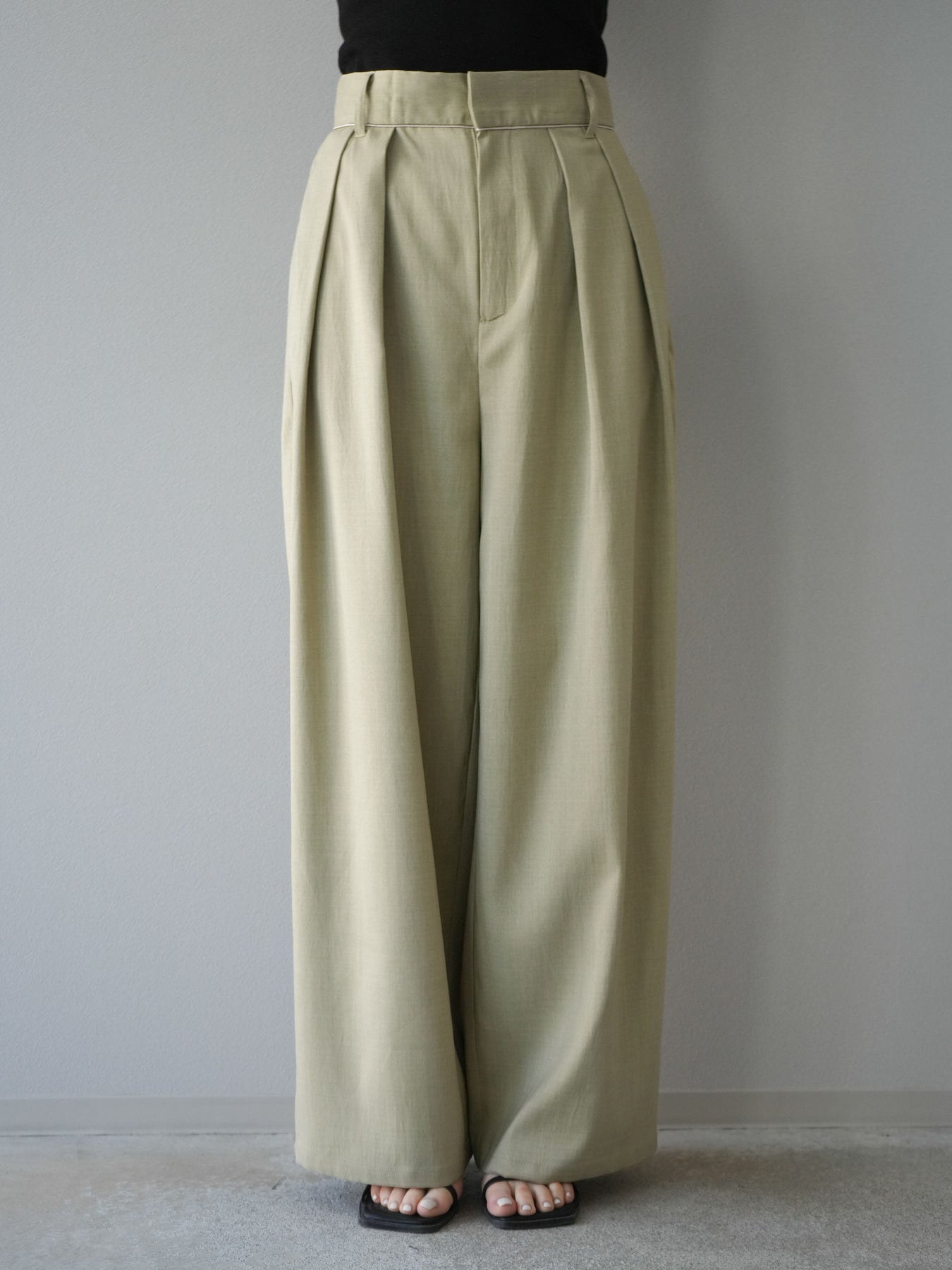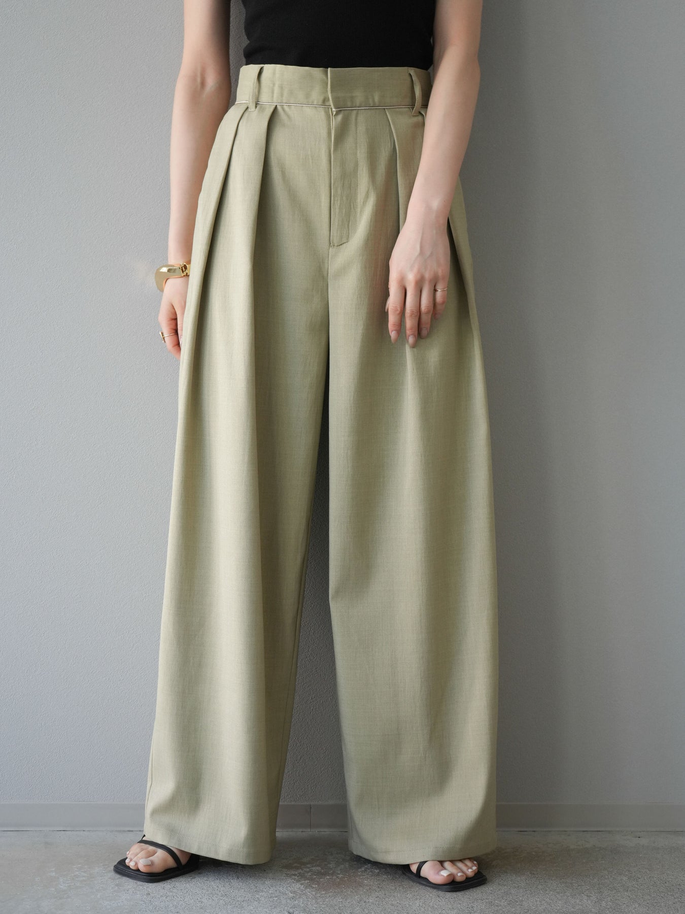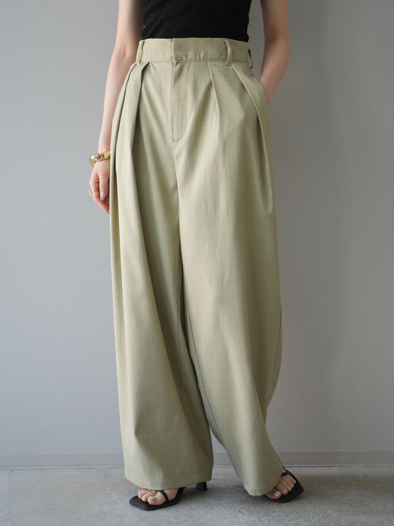 [予約]ヘザーエステルタックワイドパンツ/ベージュ