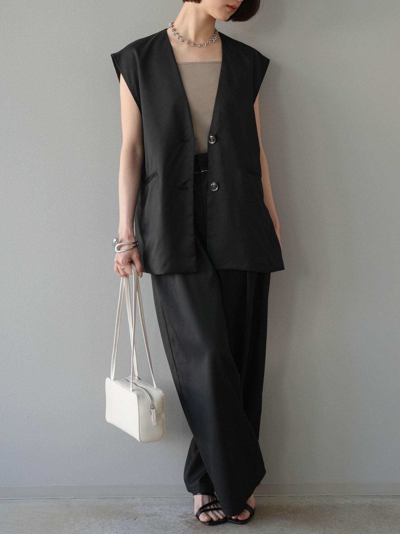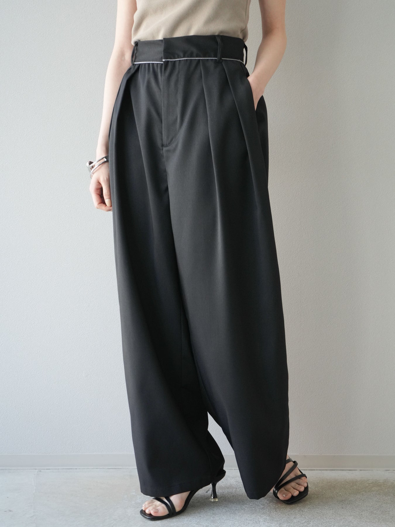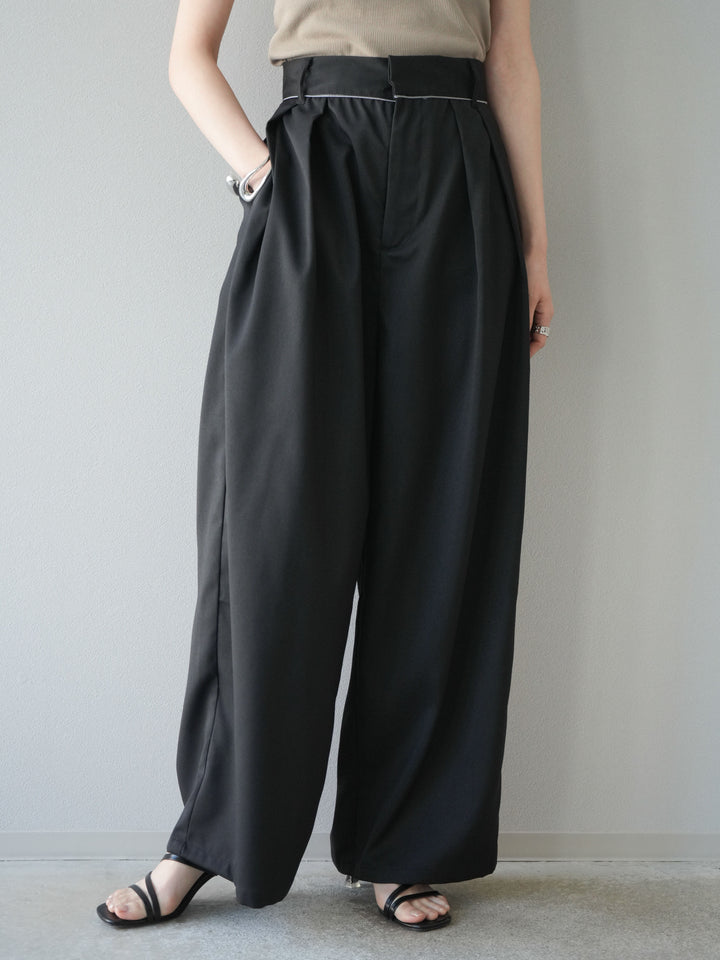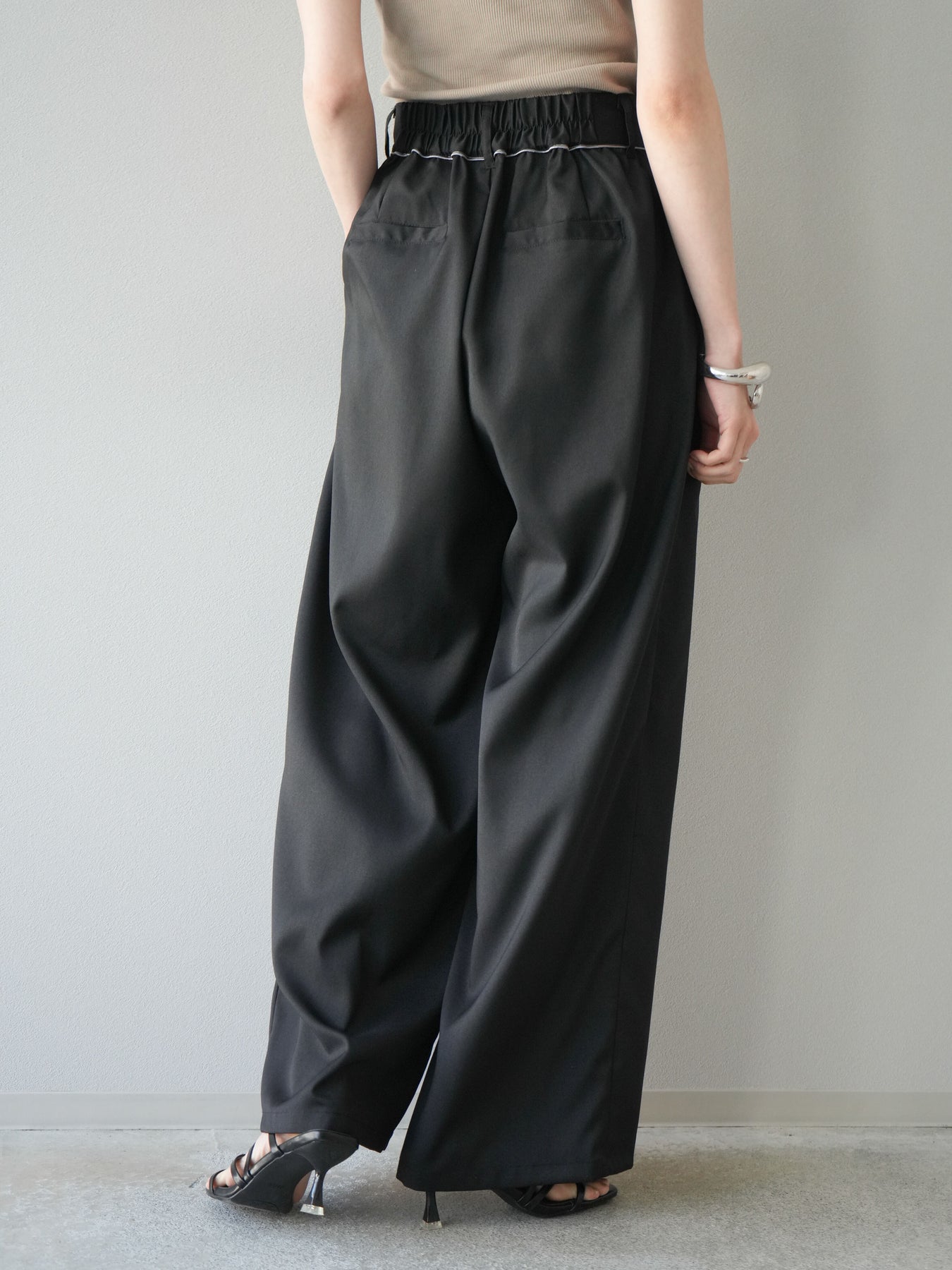 [予約]ヘザーエステルタックワイドパンツ/ブラック