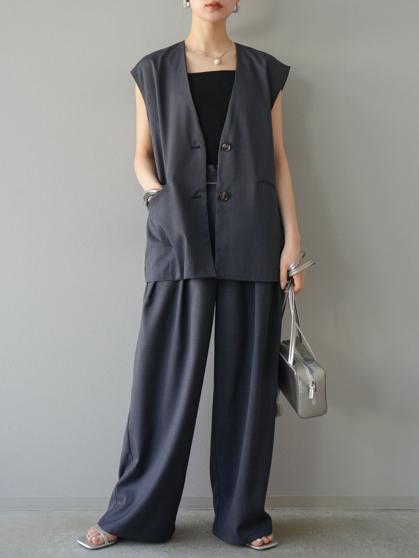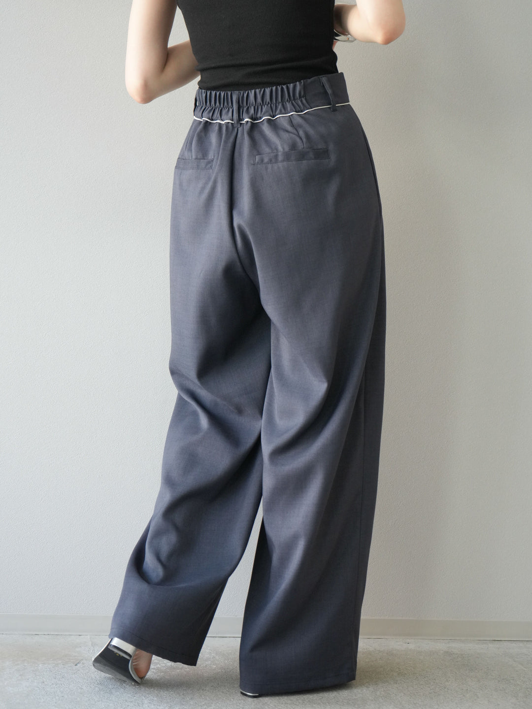 [予約]ヘザーエステルタックワイドパンツ/チャコール
