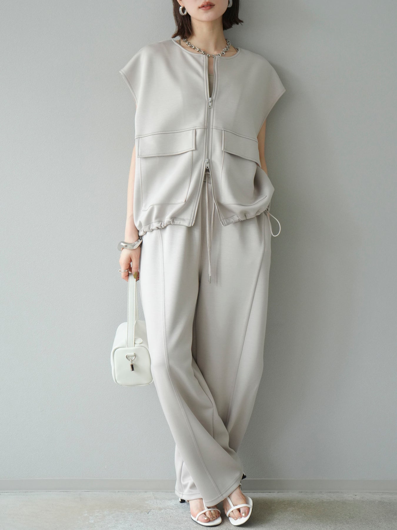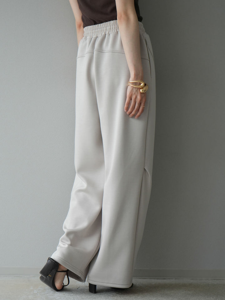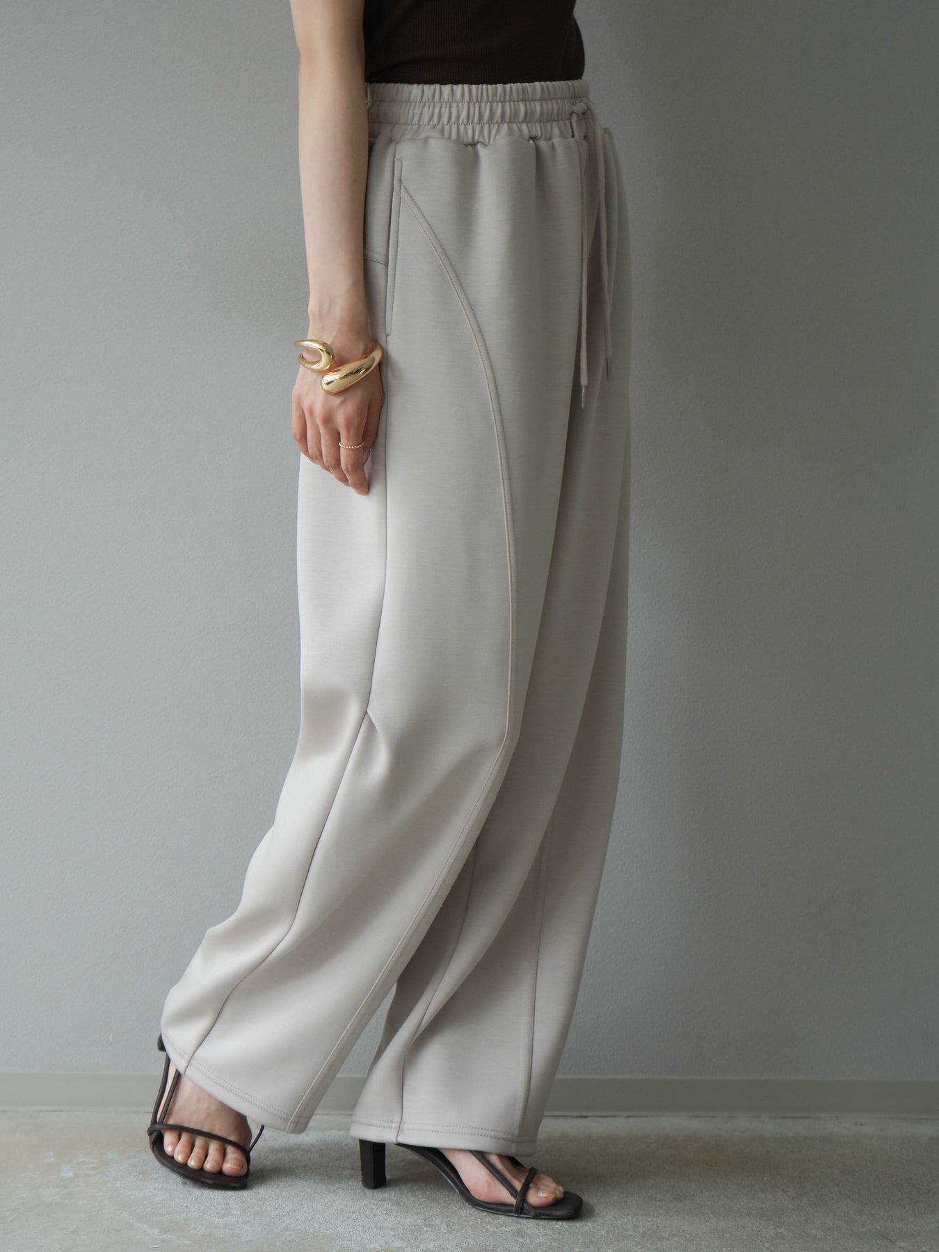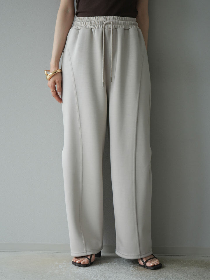 程よい肉感とストレッチ性のあるライトポンチ素材を使用したカーブパンツ。サイドラインに立体感のあるカーブシルエットを取り入れ、シンプルながら動きのある印象に。ウエストはオールゴム仕様で快適な履き心地を実現。カジュアルなトップス合わせはもちろん、シャツやジレなどと合わせたきれいめスタイルにもマッチする一本です。